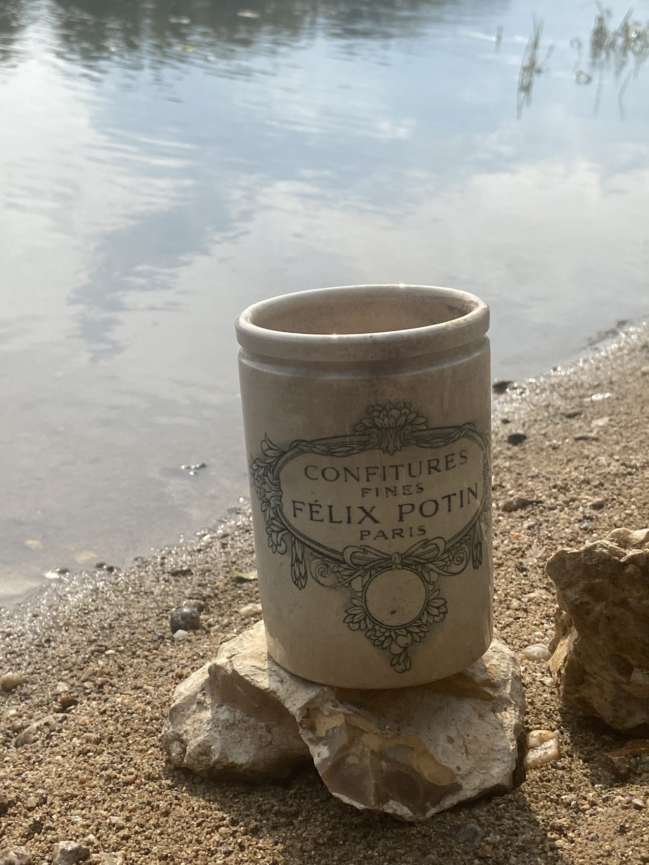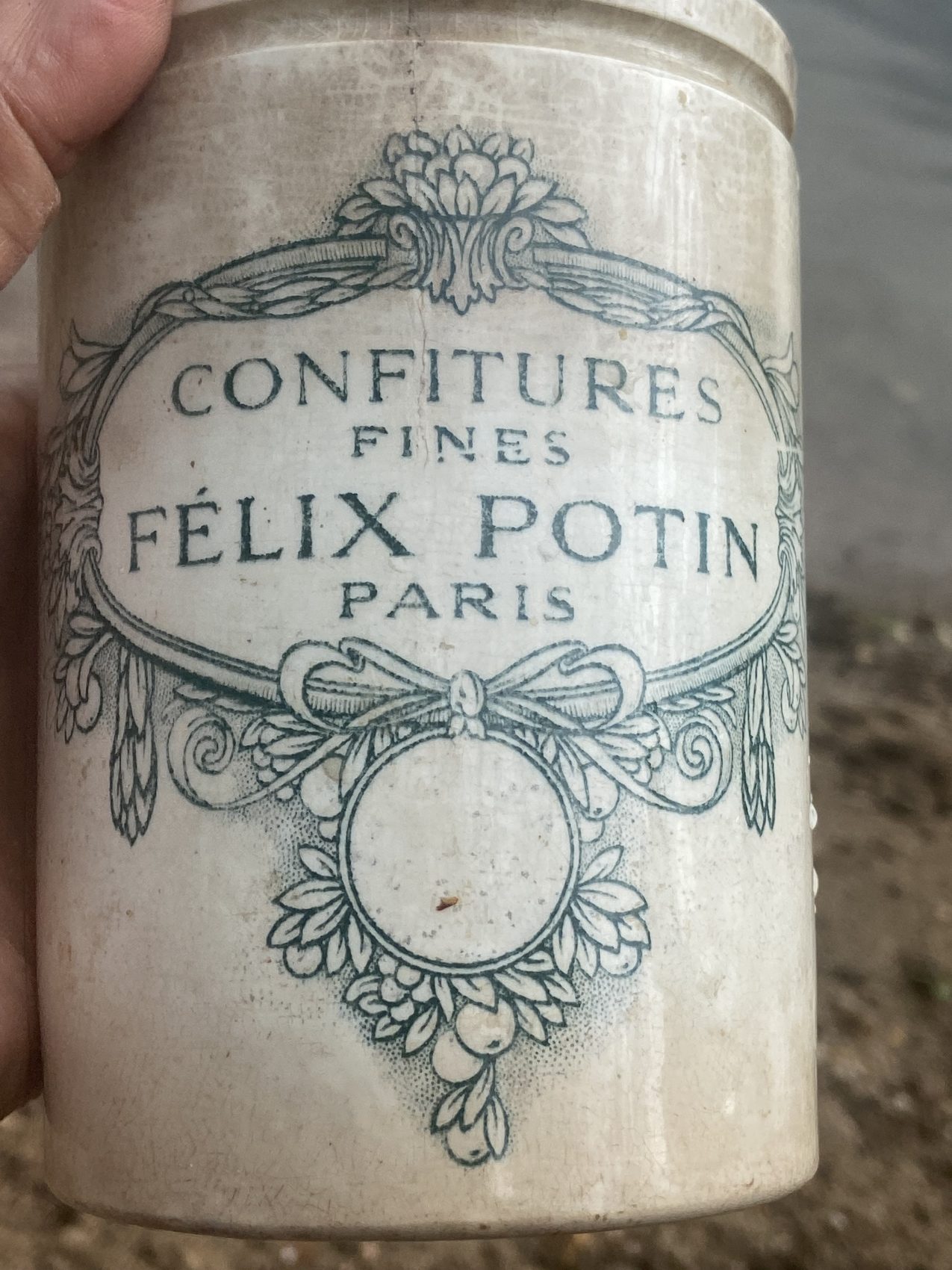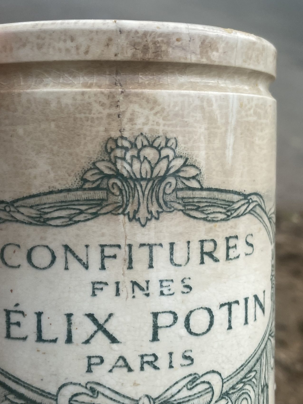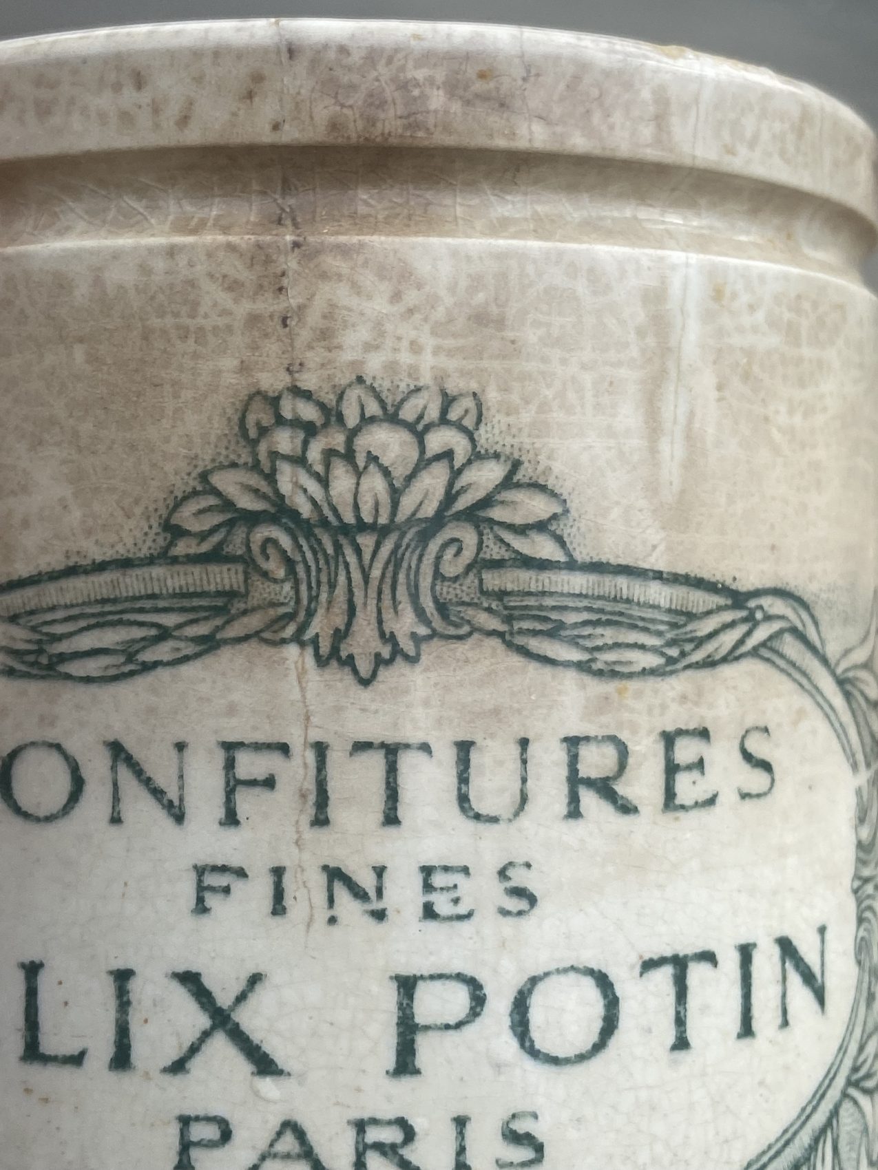Ce pot, je l’adore. Il raconte à lui seul la grande histoire de l’épicerie française. Félix Potin, c’est le pionnier du supermarché avant l’heure, et ses pots en grès sont devenus cultes.