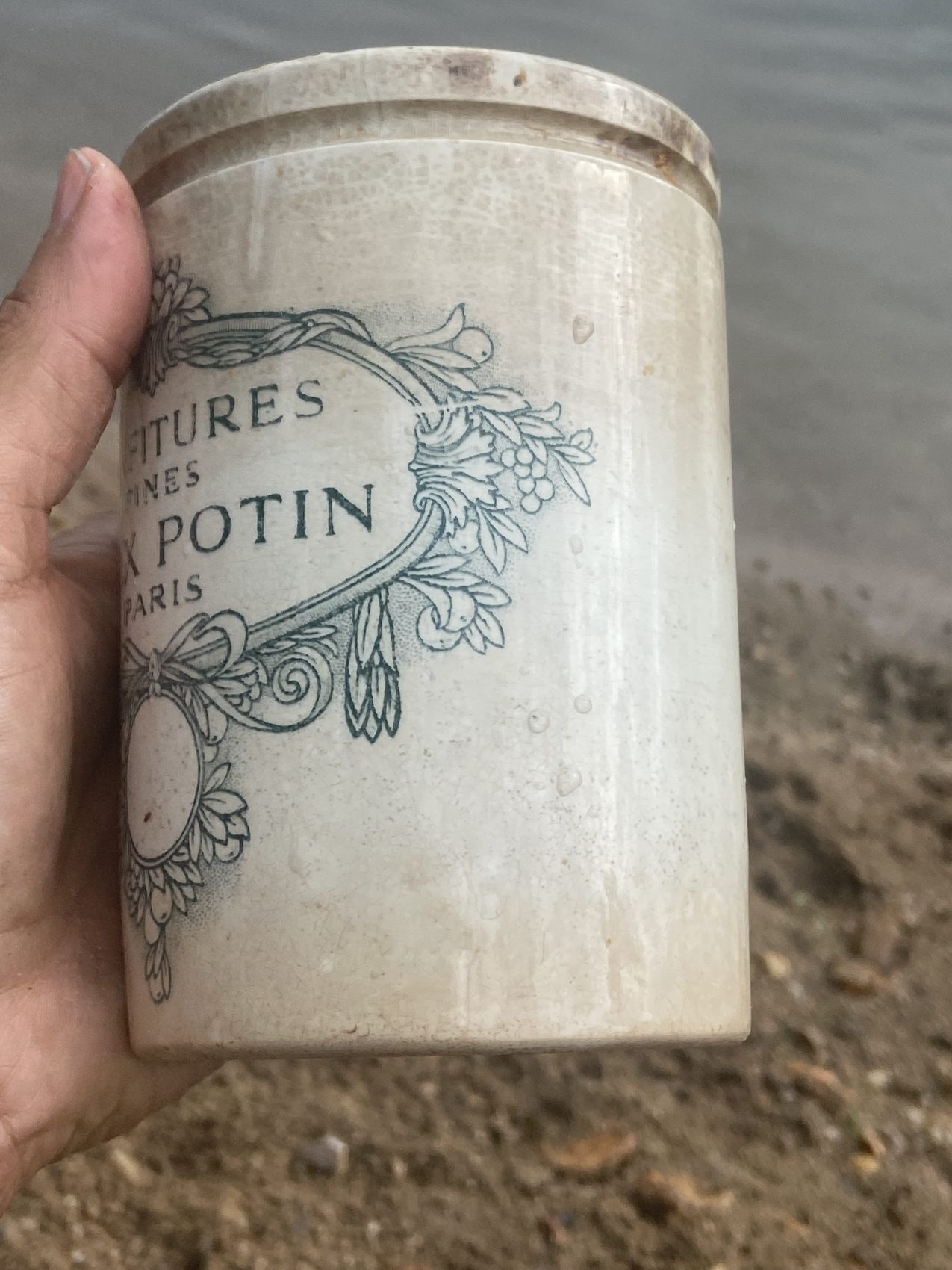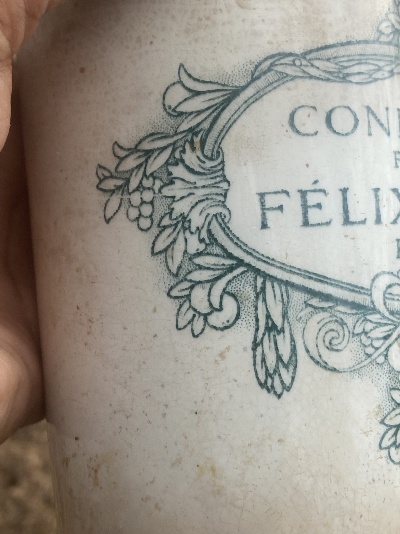 Ce pot publicitaire Félix Potin en grès vernissé, fabriqué à Lunéville, a traversé plus d’un siècle avec panache.