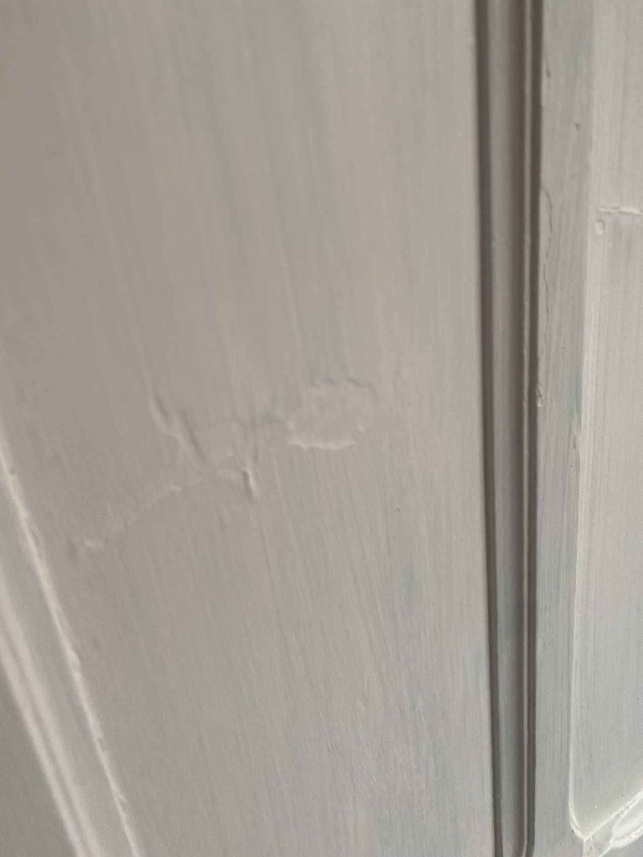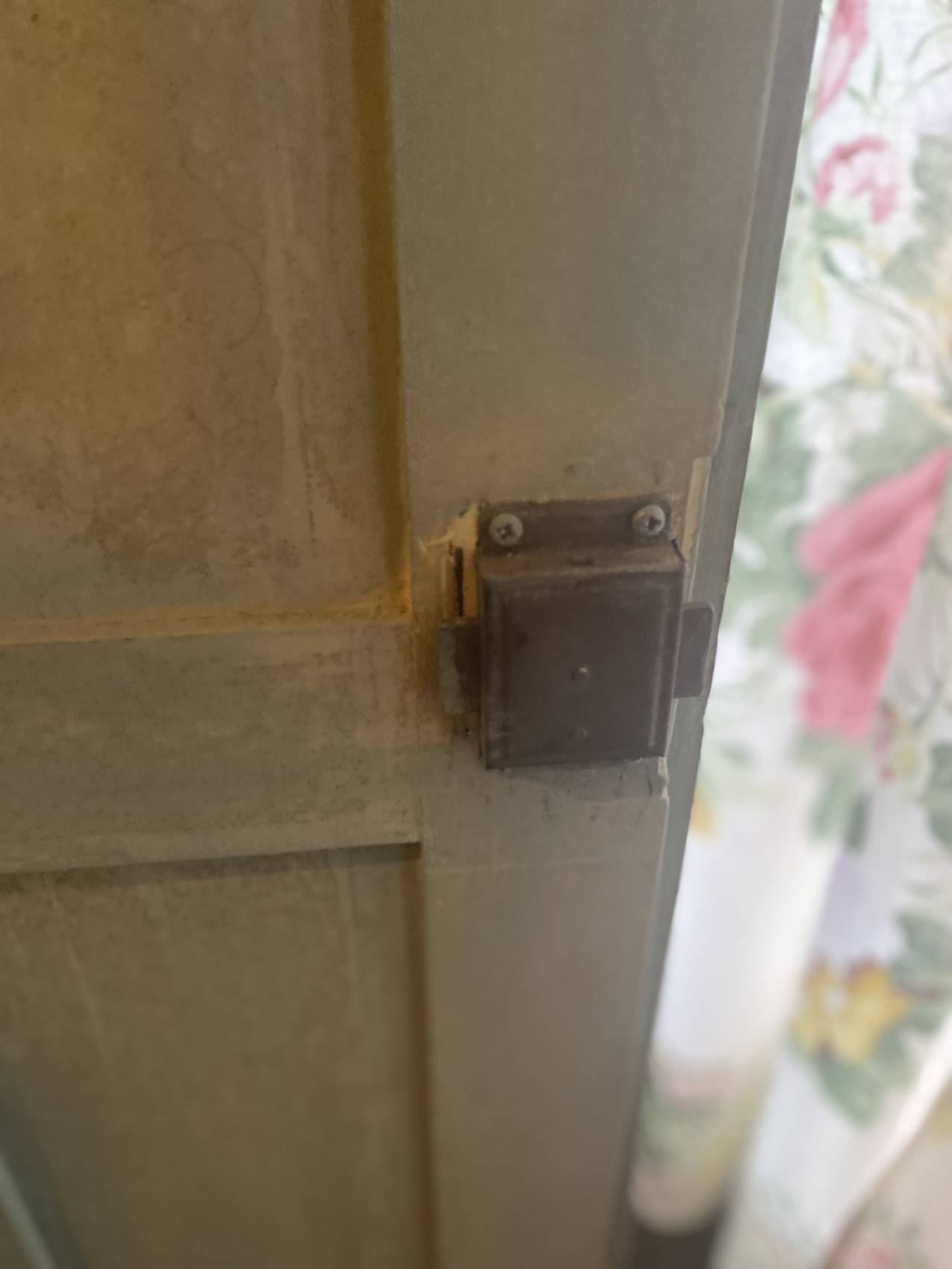 Particularité : la porte ferme par placage, serrure et clef non fonctionnelle