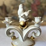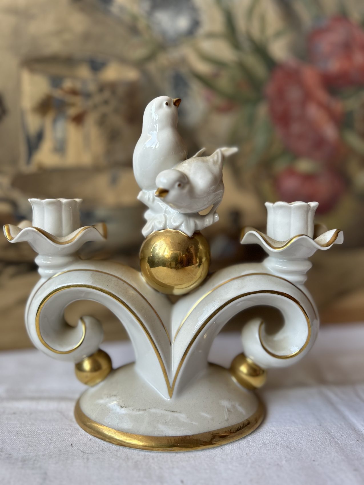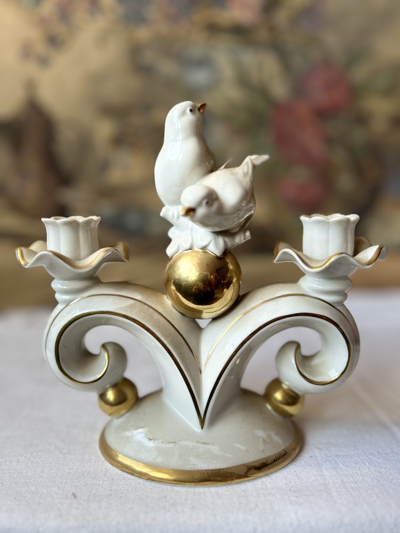 Bougeoir ancien en porcelaine allemande aux oiseaux – Vers 1900–1920