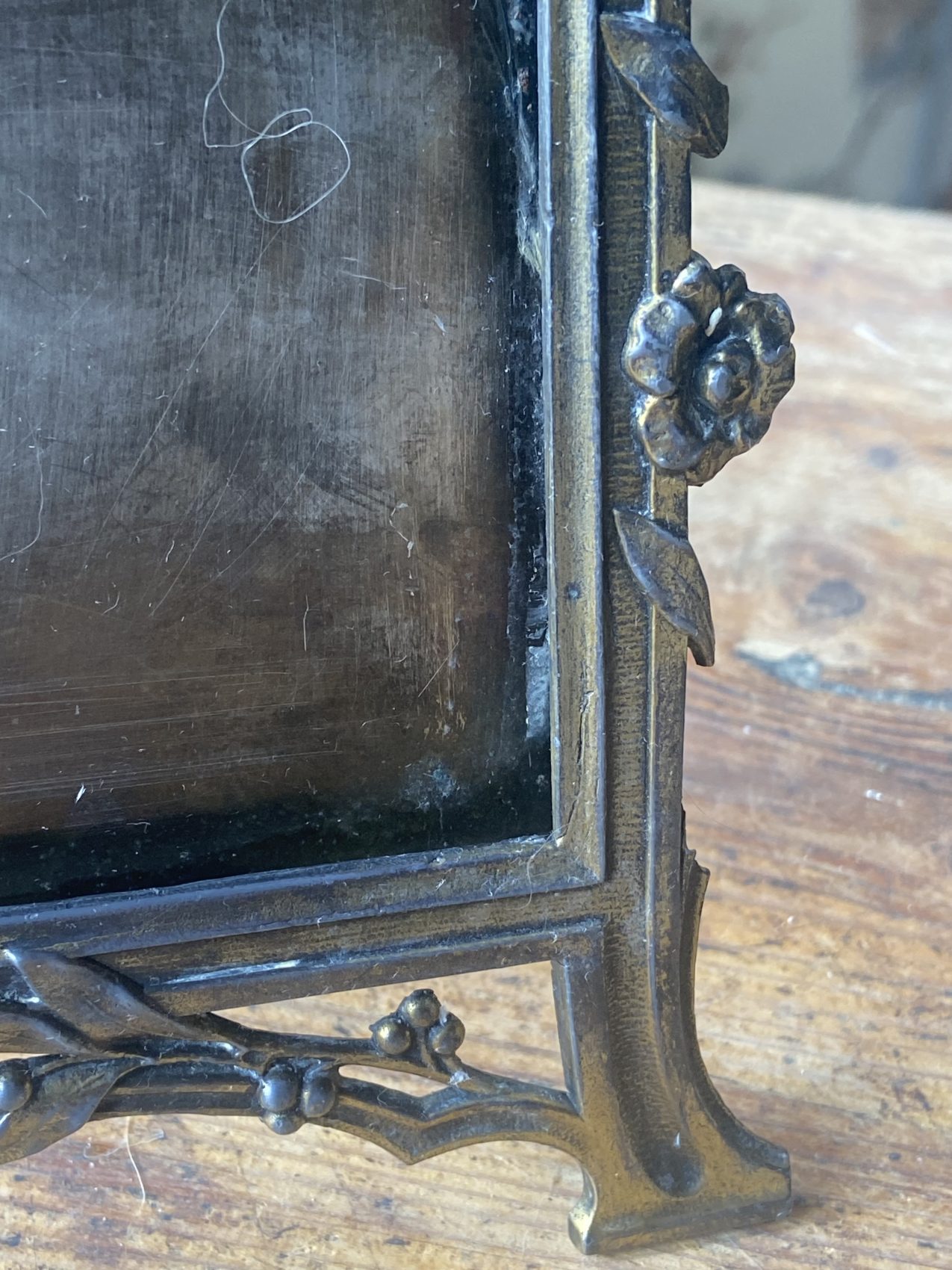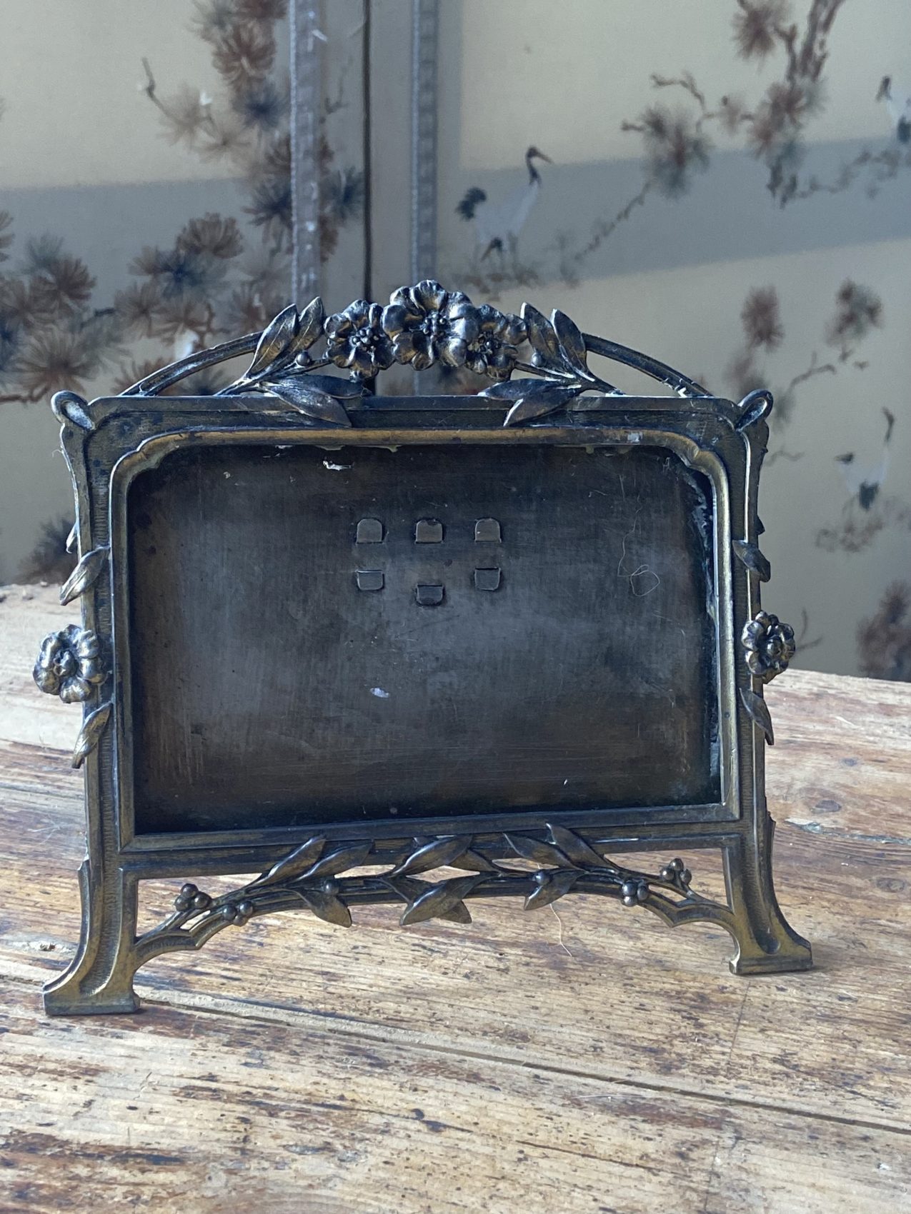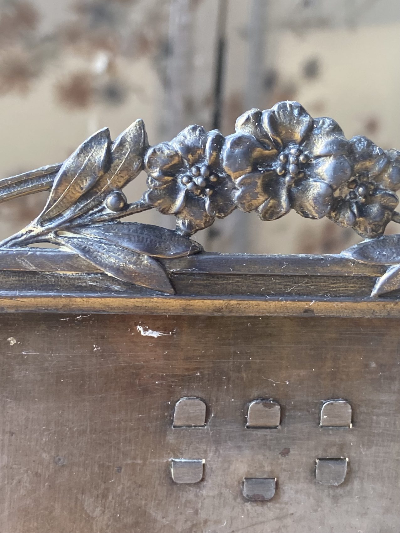 - Cadre en métal travaillé, ornement floral en relief