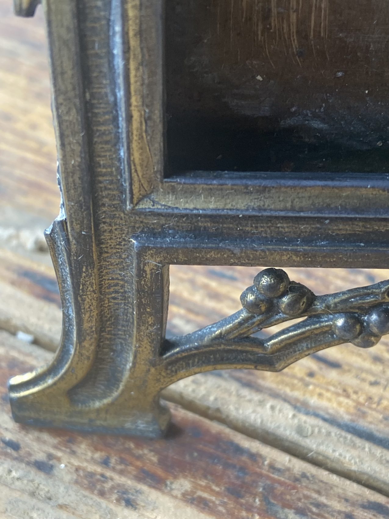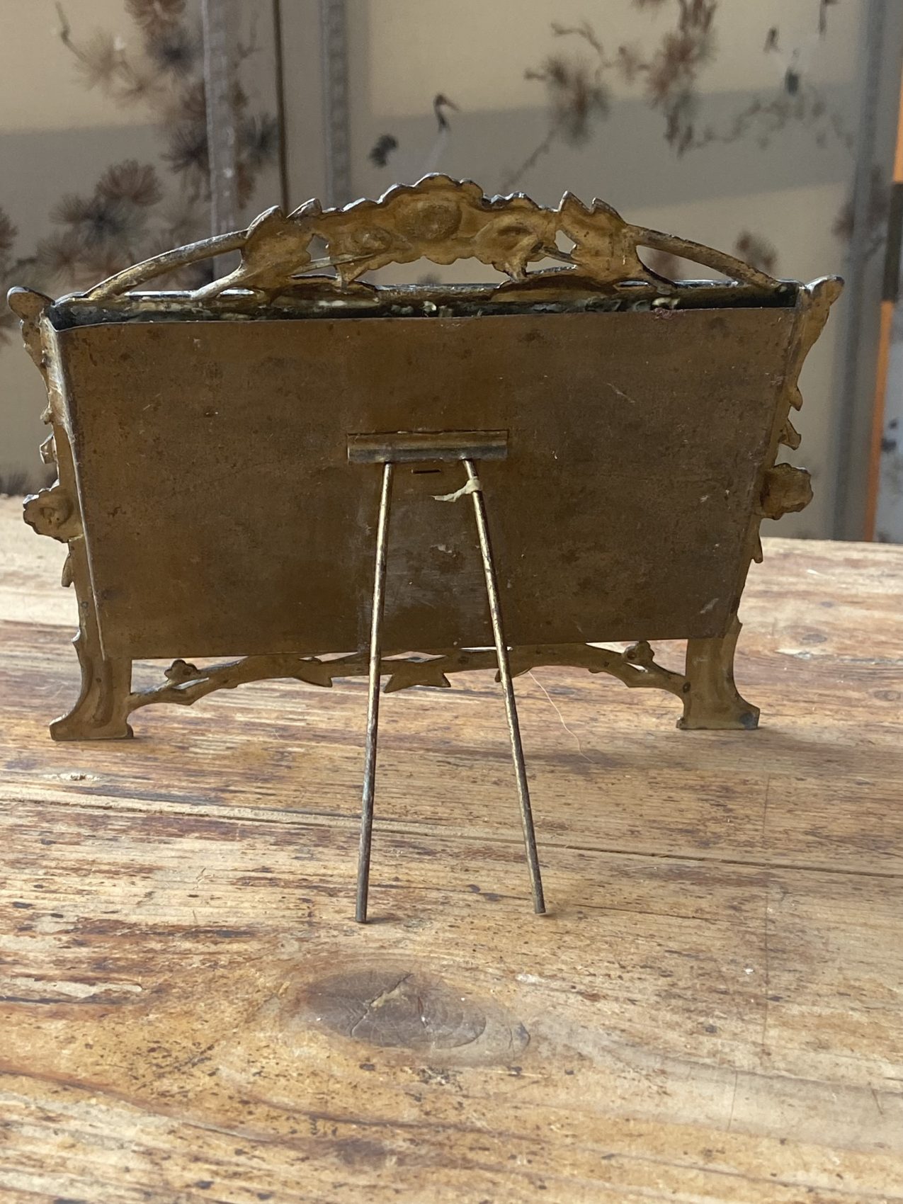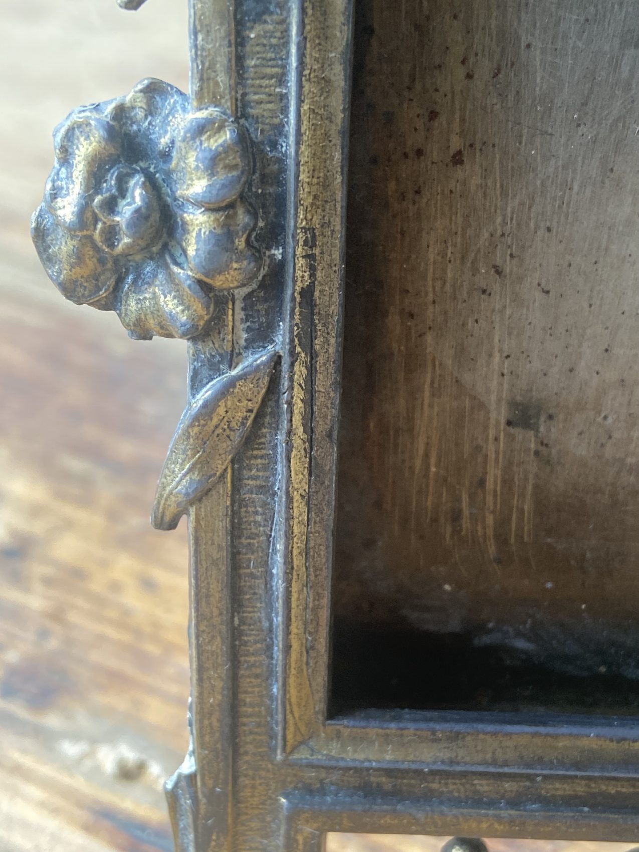 - Cadre en métal travaillé, ornement floral en relief
