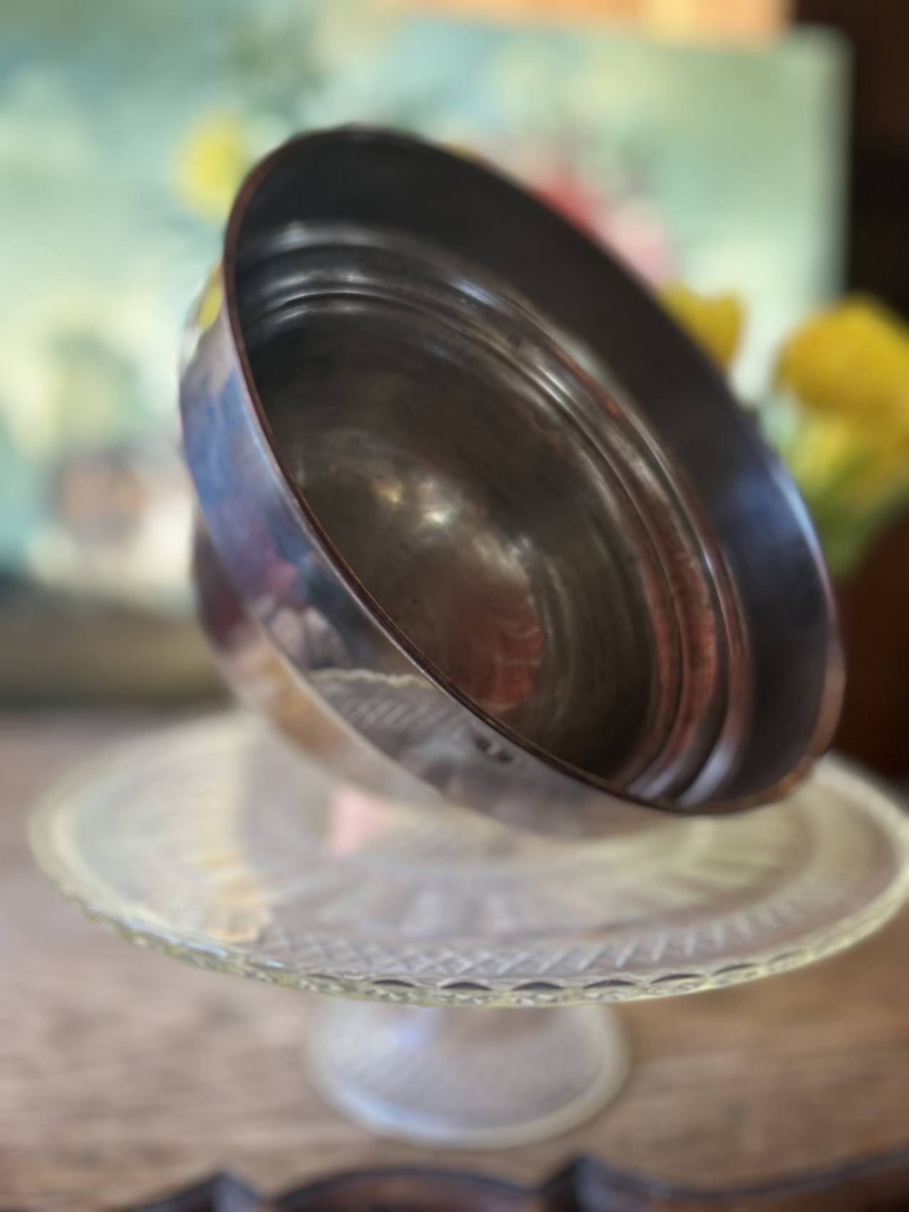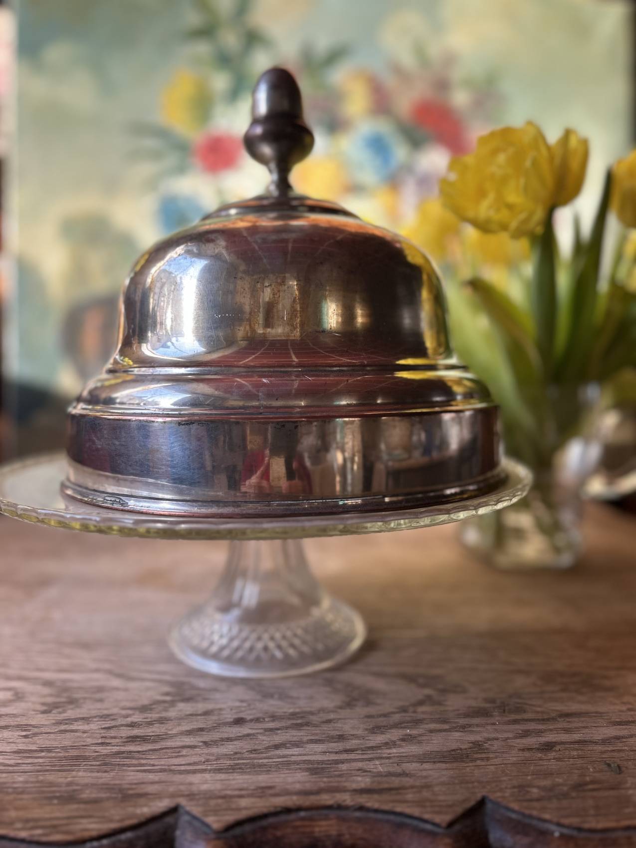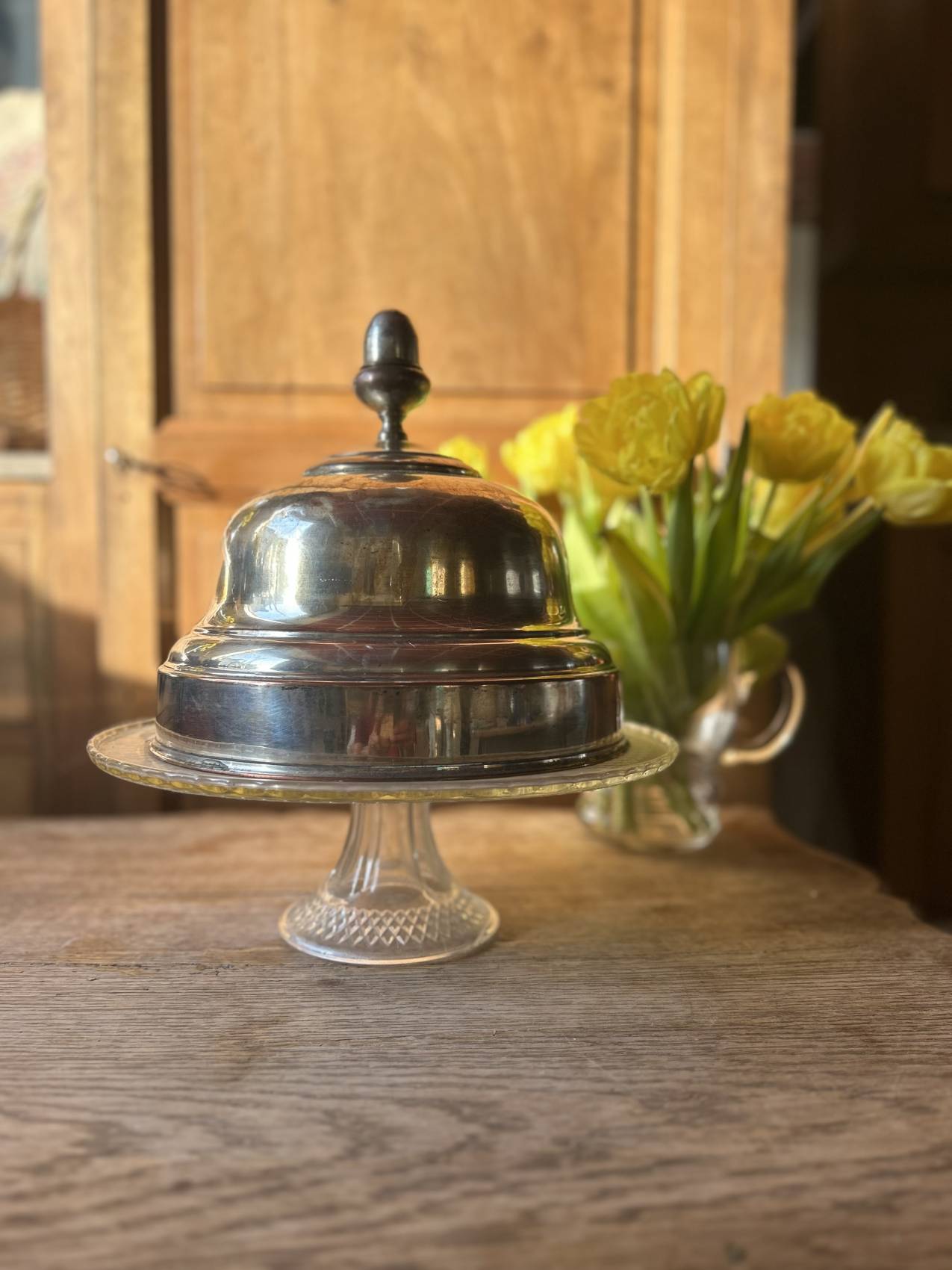 Grande cloche à pâtisserie ancienne en métal argenté – Le chic à l’ancienne