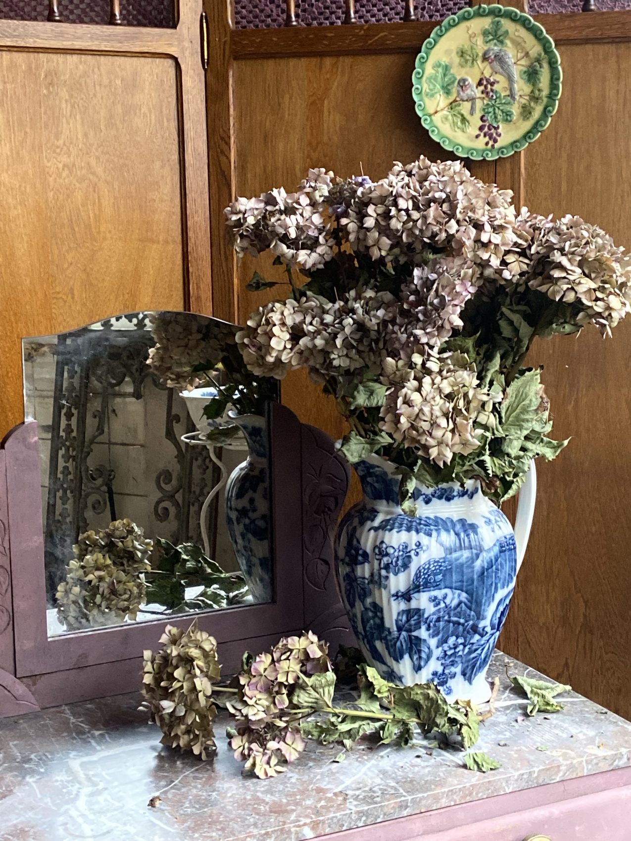 Matériaux : chêne massif, marbre, miroir d’origine