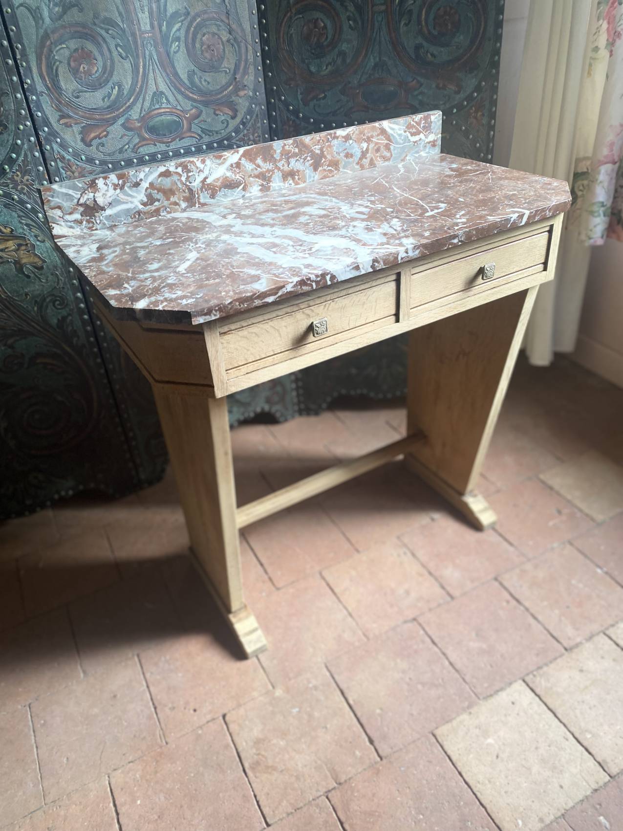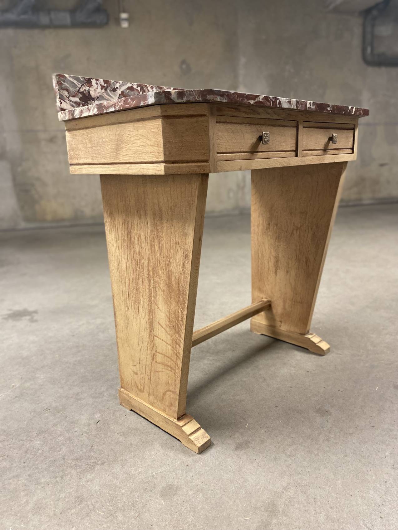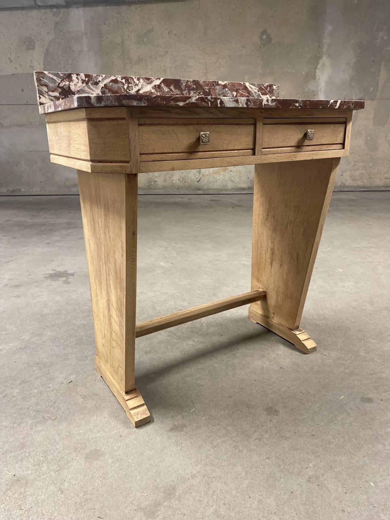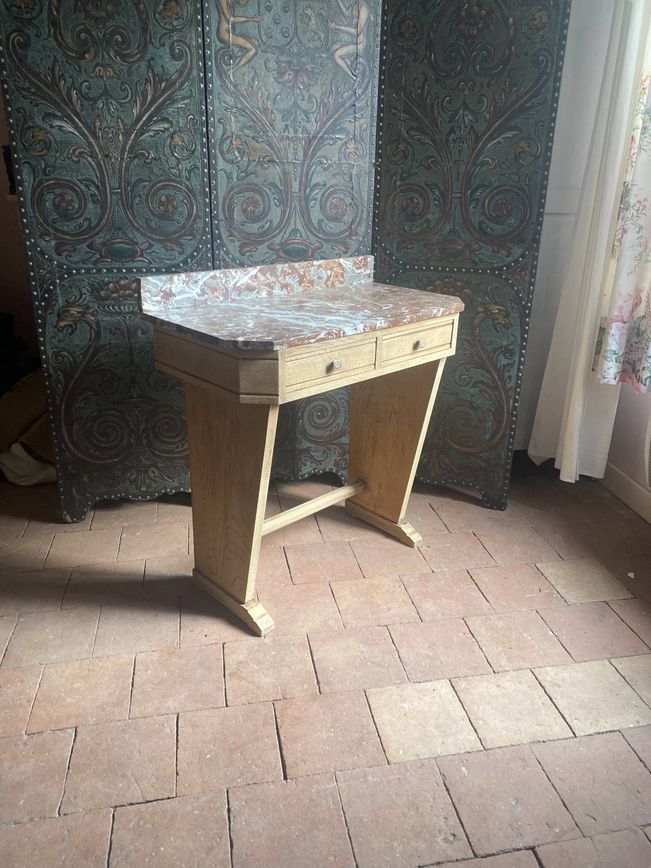 Cette console Art Déco en chêne massif avec son plateau en marbre est bien plus qu’un meuble : c’est un héritage à transmettre.