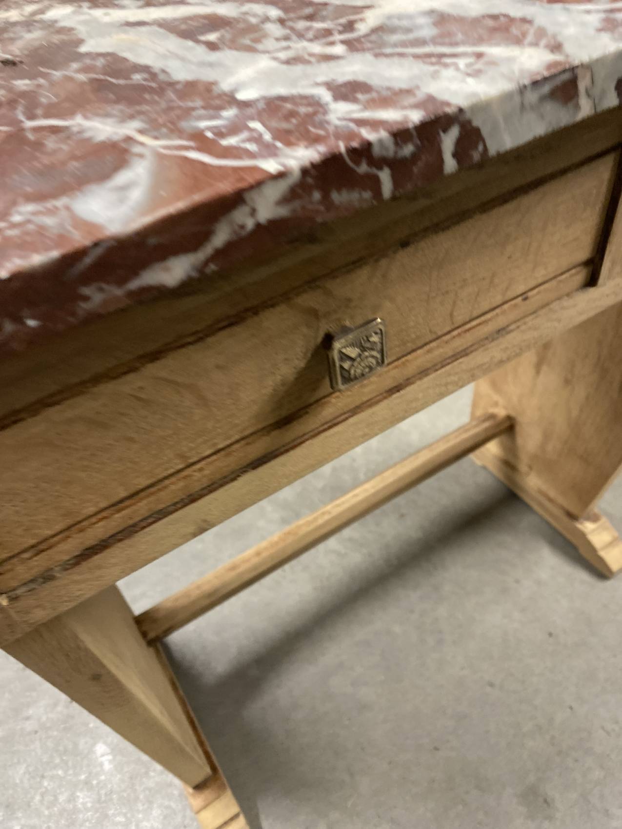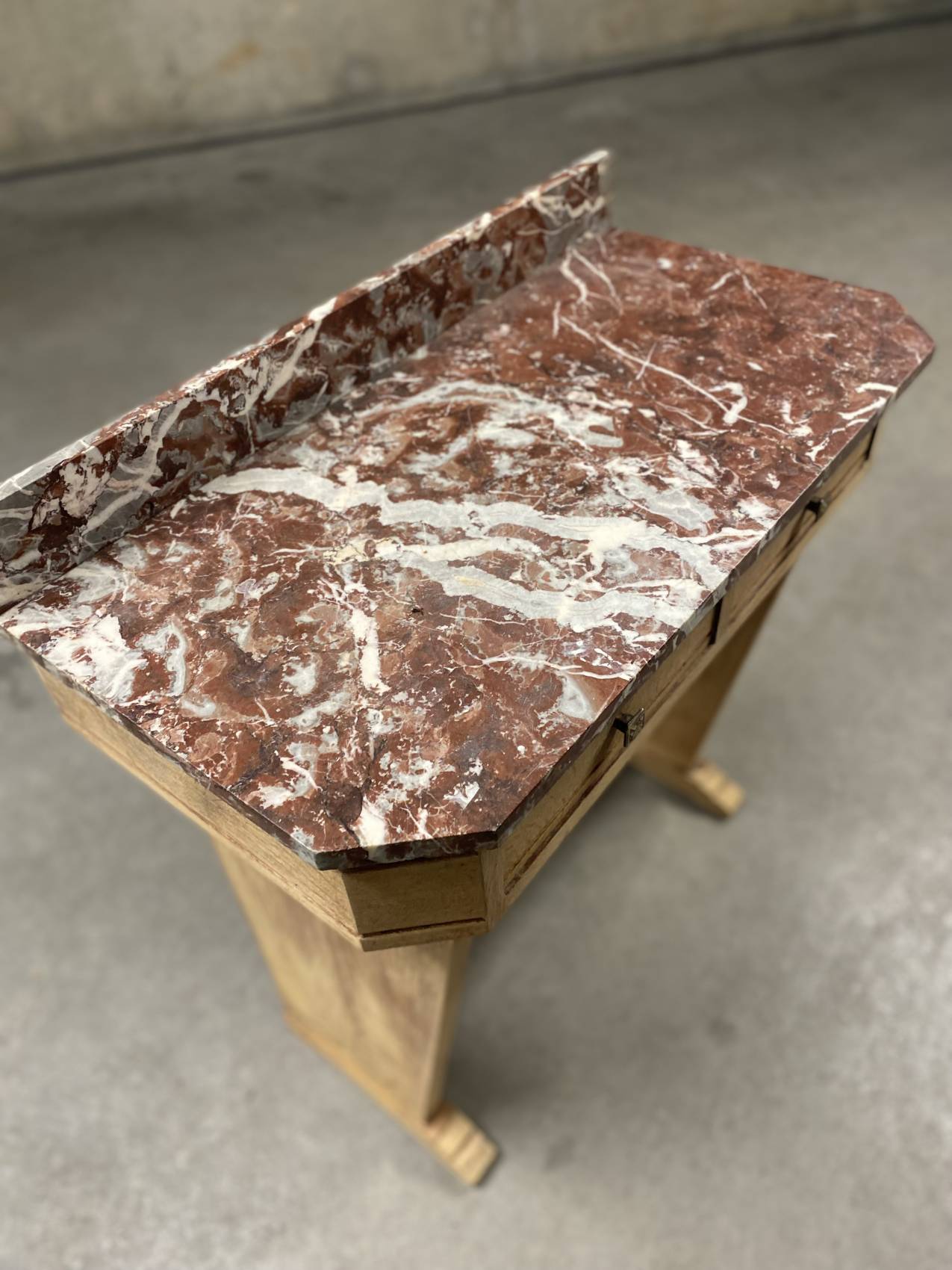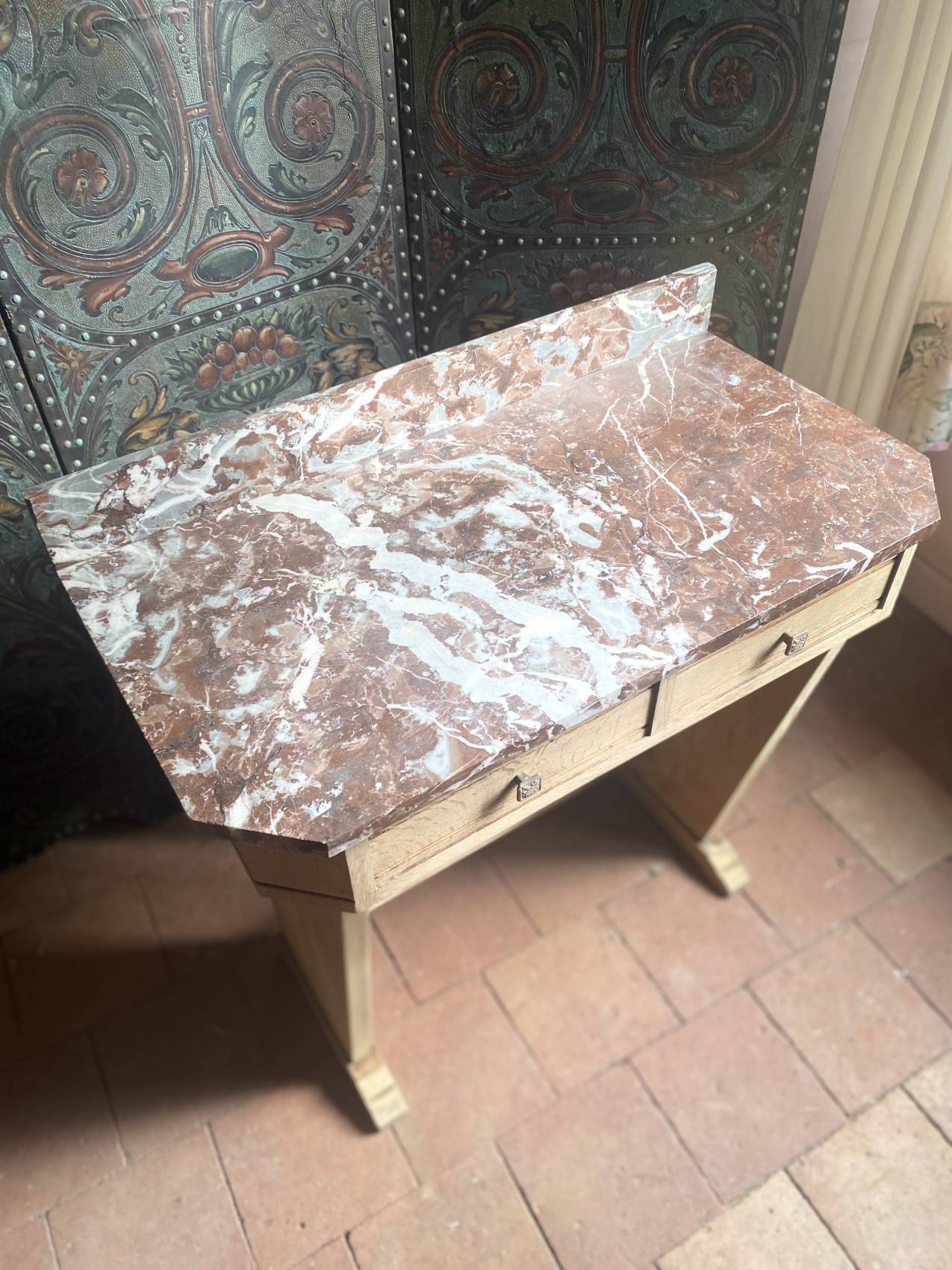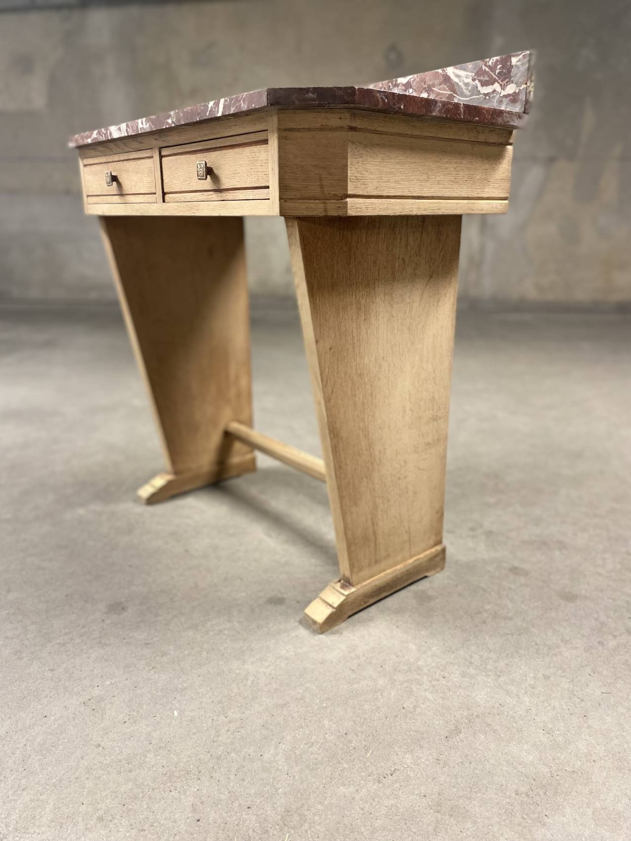 Cette console Art Déco en chêne massif avec son plateau en marbre est bien plus qu’un meuble : c’est un héritage à transmettre.