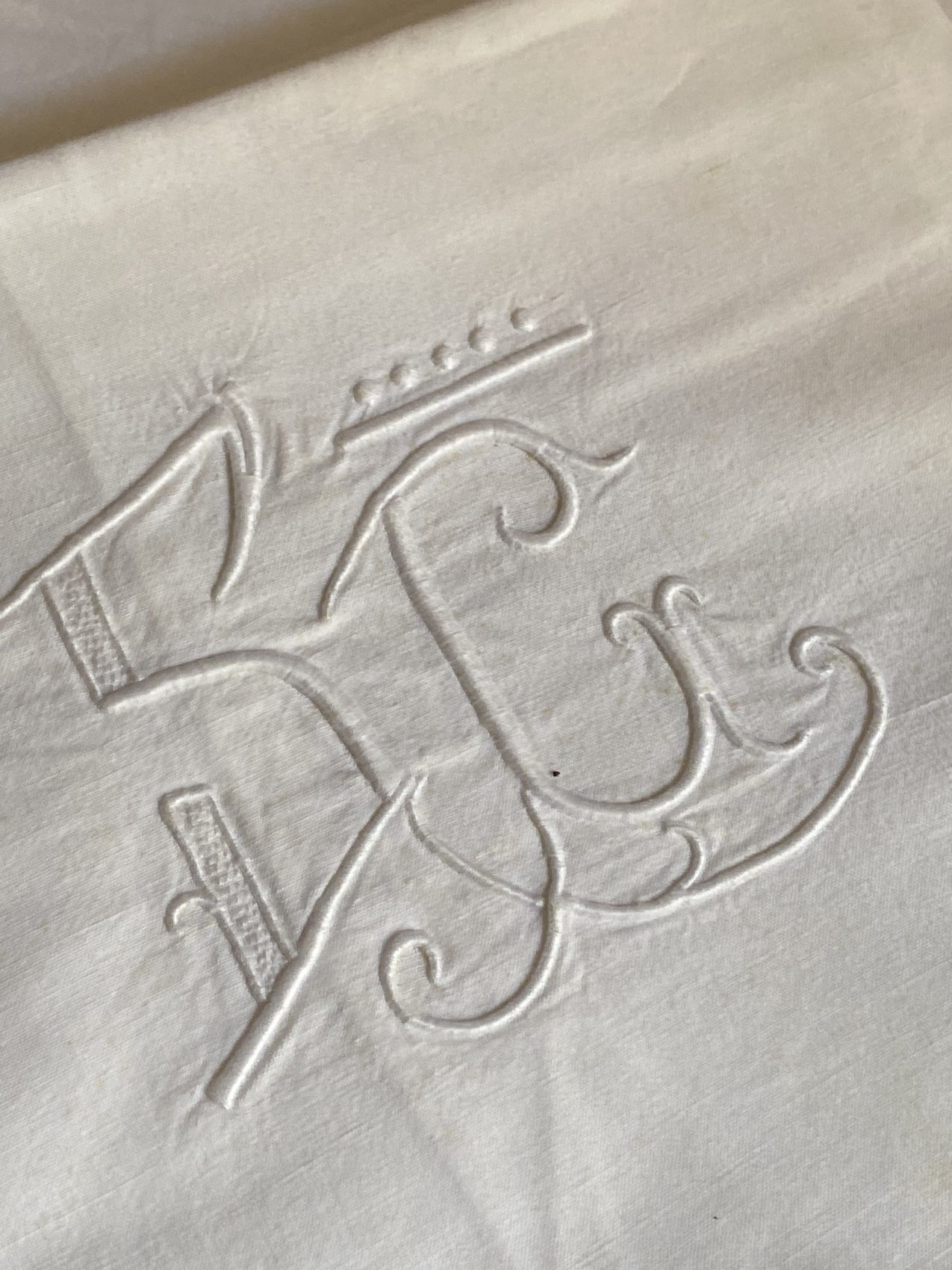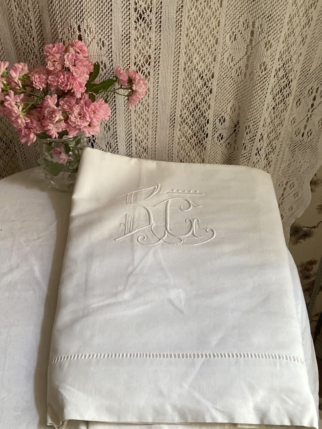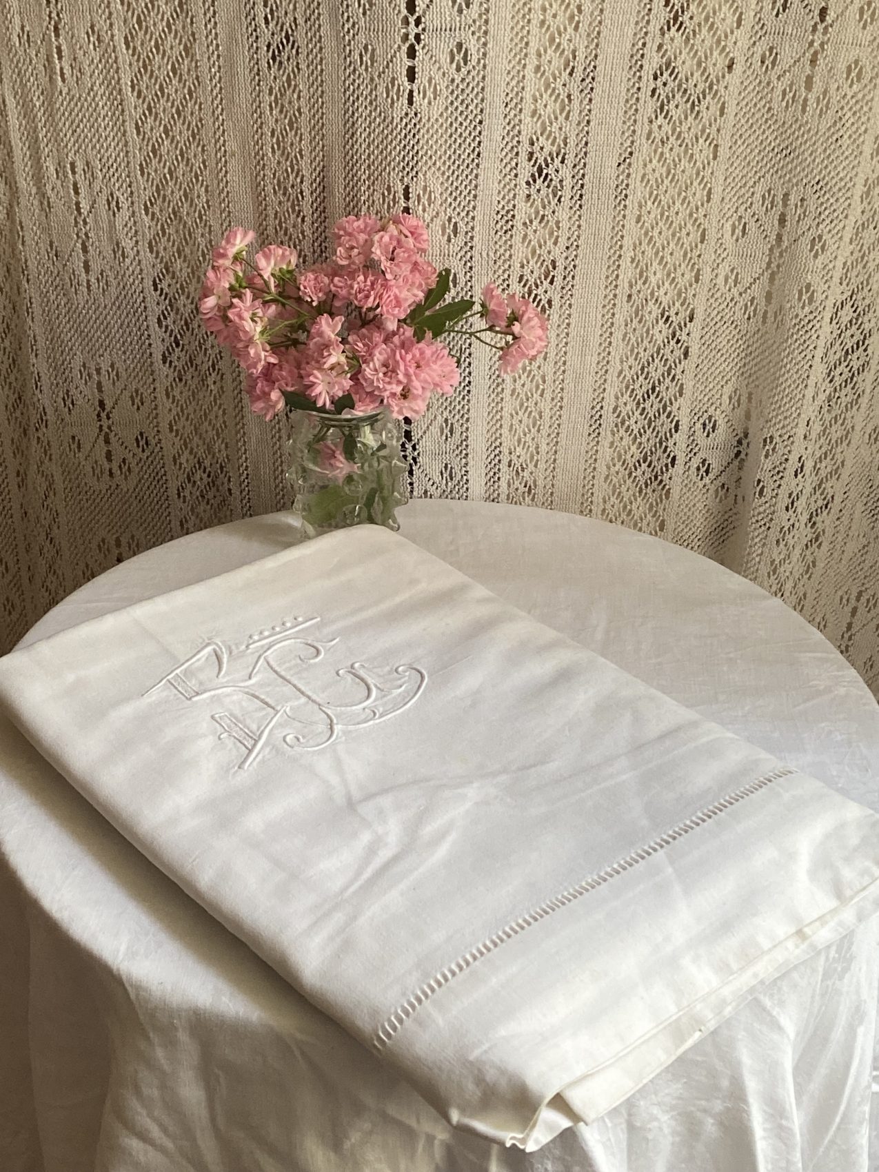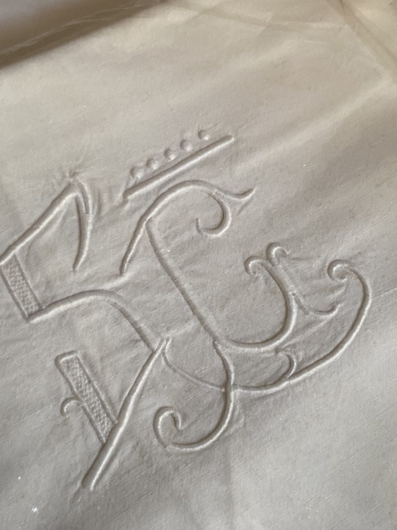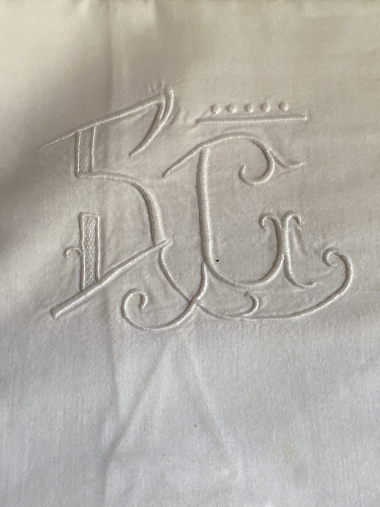 Ce drap est une merveille. Le monogramme est fin et délicat, le tissu a cette douceur particulière qu’on ne retrouve que dans le linge ancien. Je l’ai utilisé sur un lit en 160, parfait !