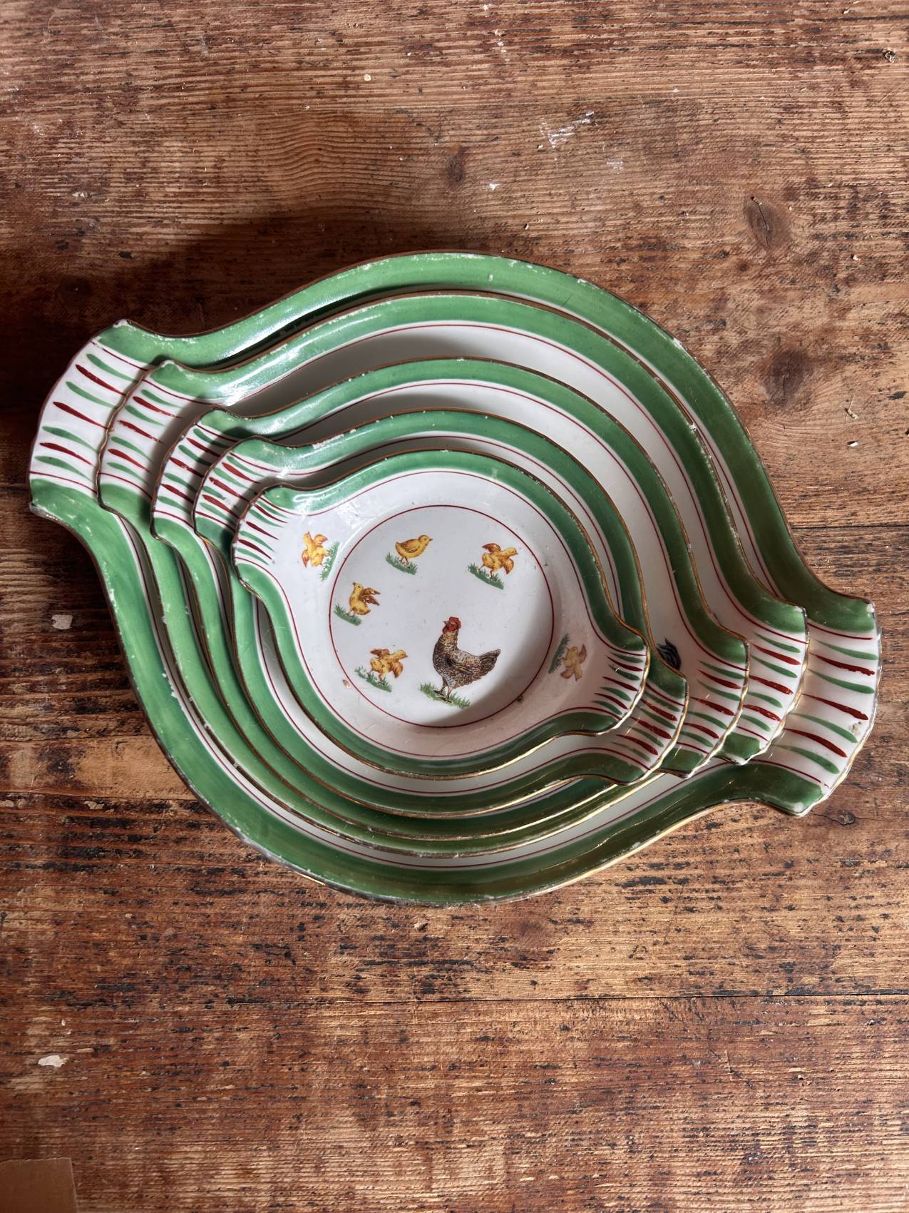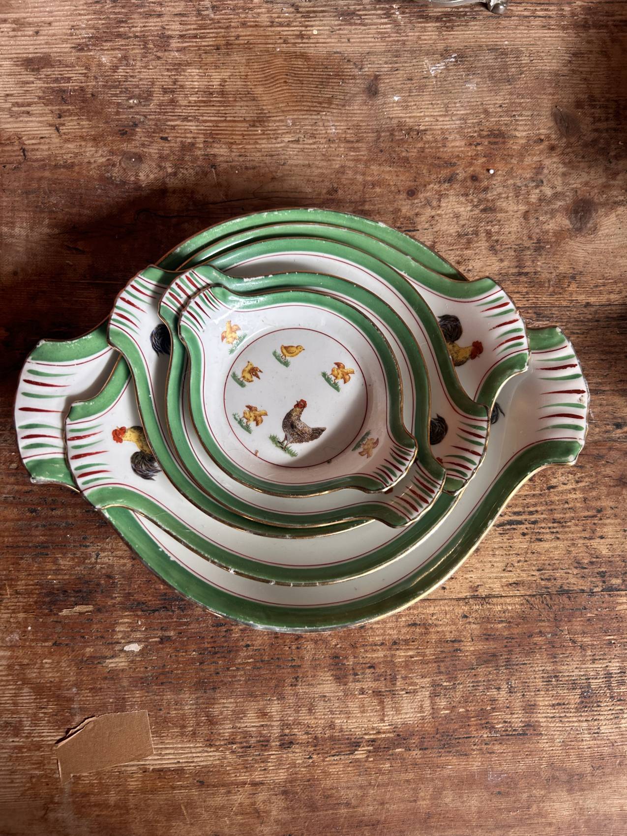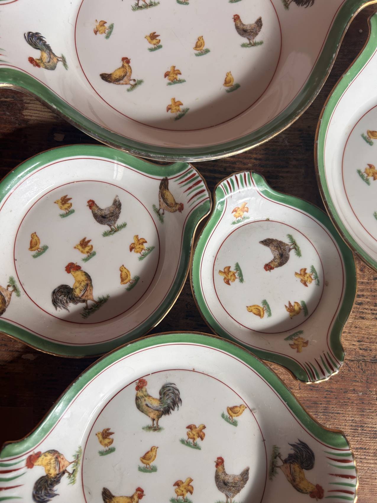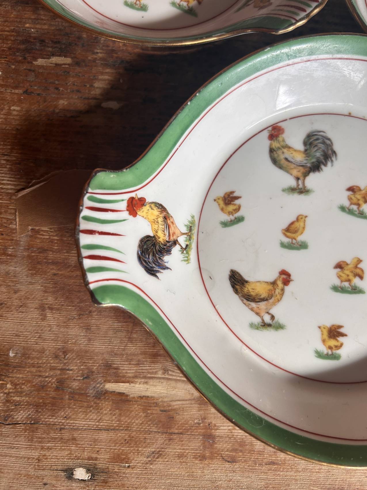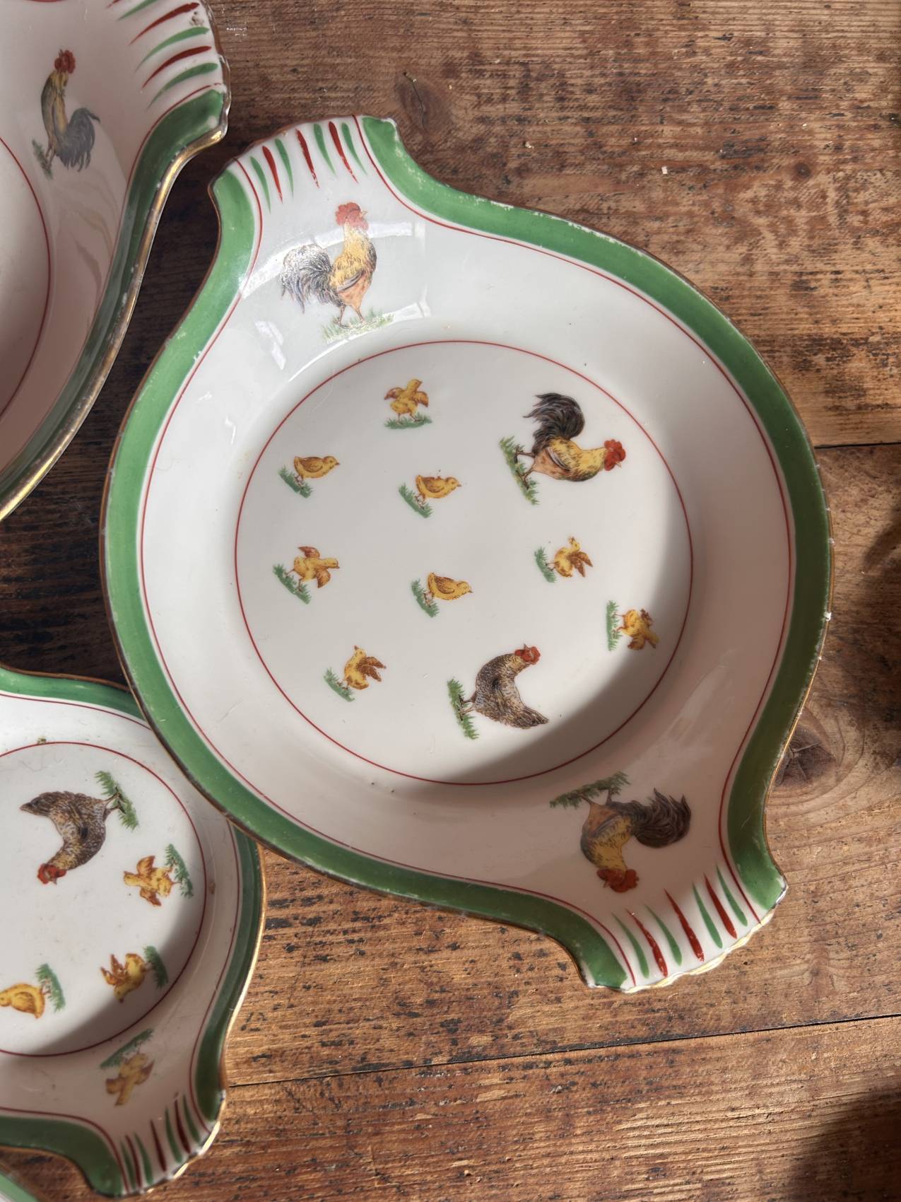 Ensemble de 5 plats anciens en porcelaine décor poussins et poules – époque 1900 ADOPTÉ