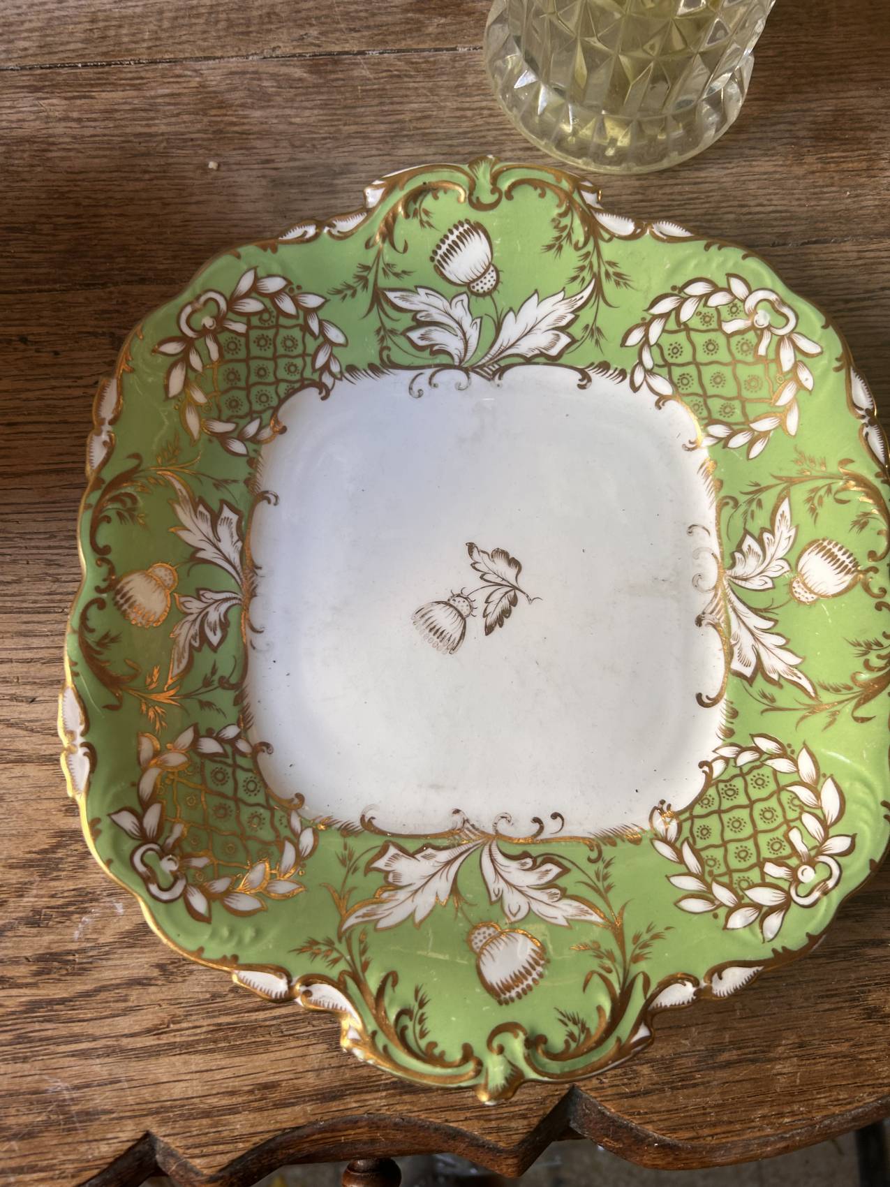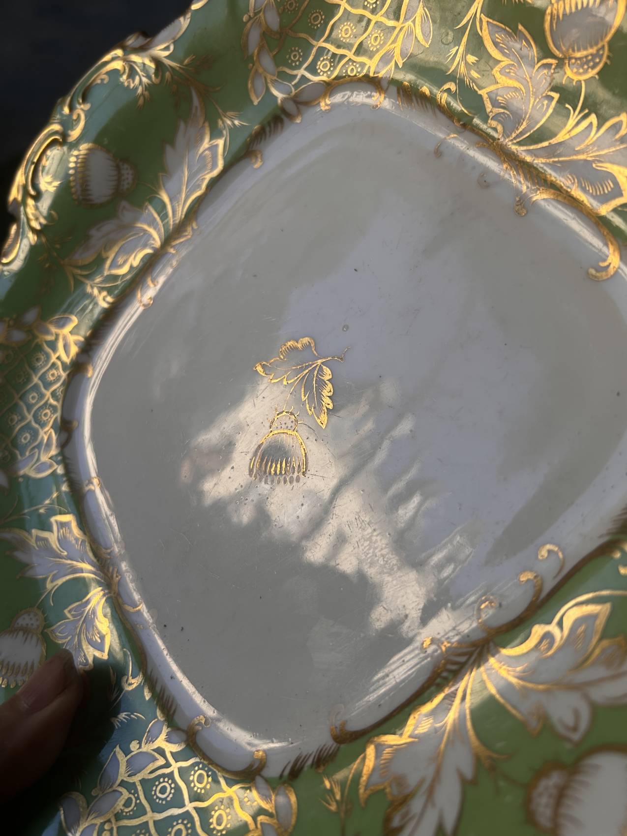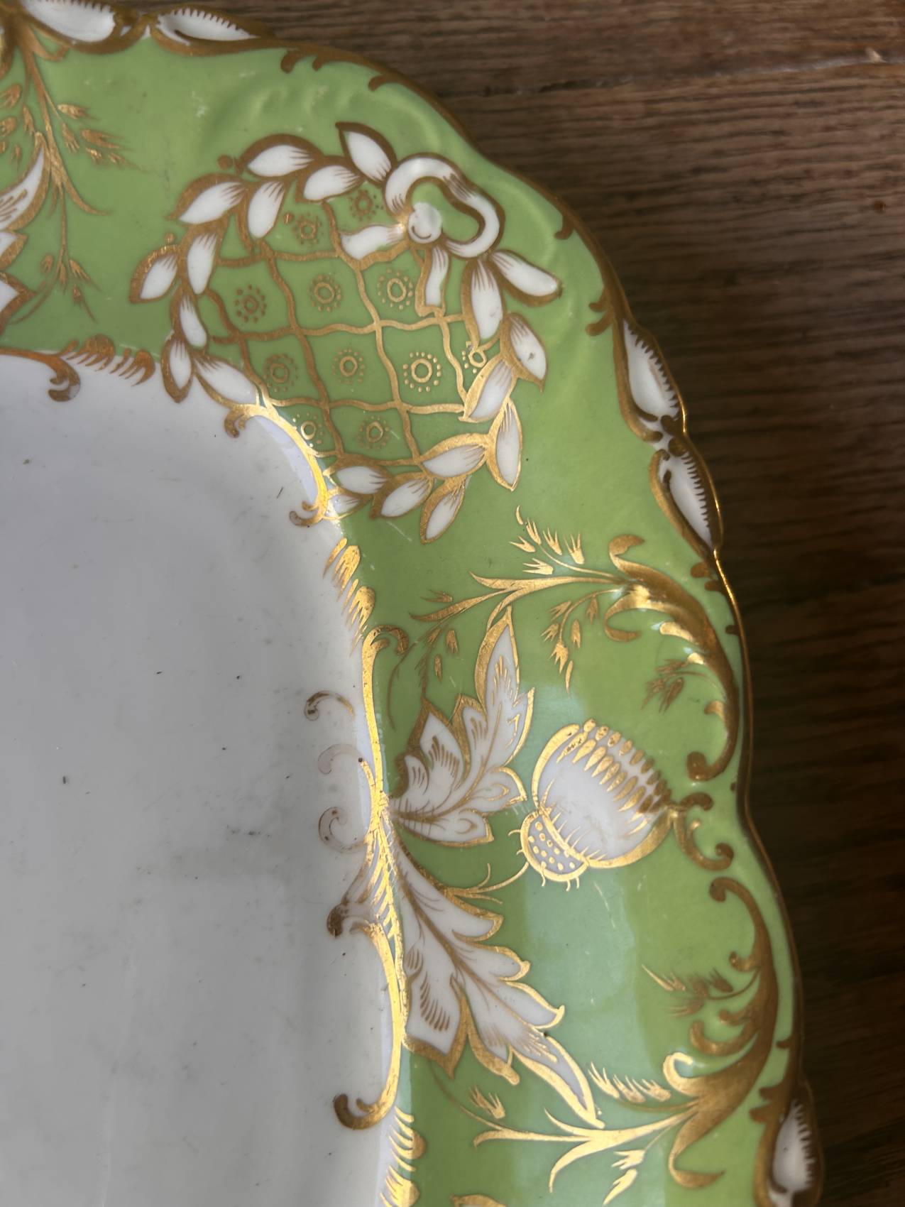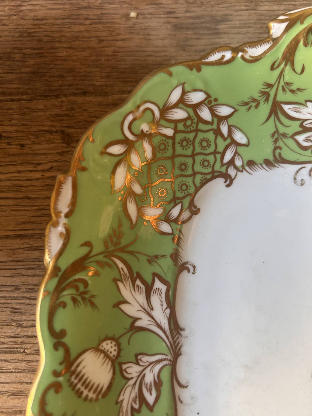 Un vert éclatant et un décor or finement appliqué.