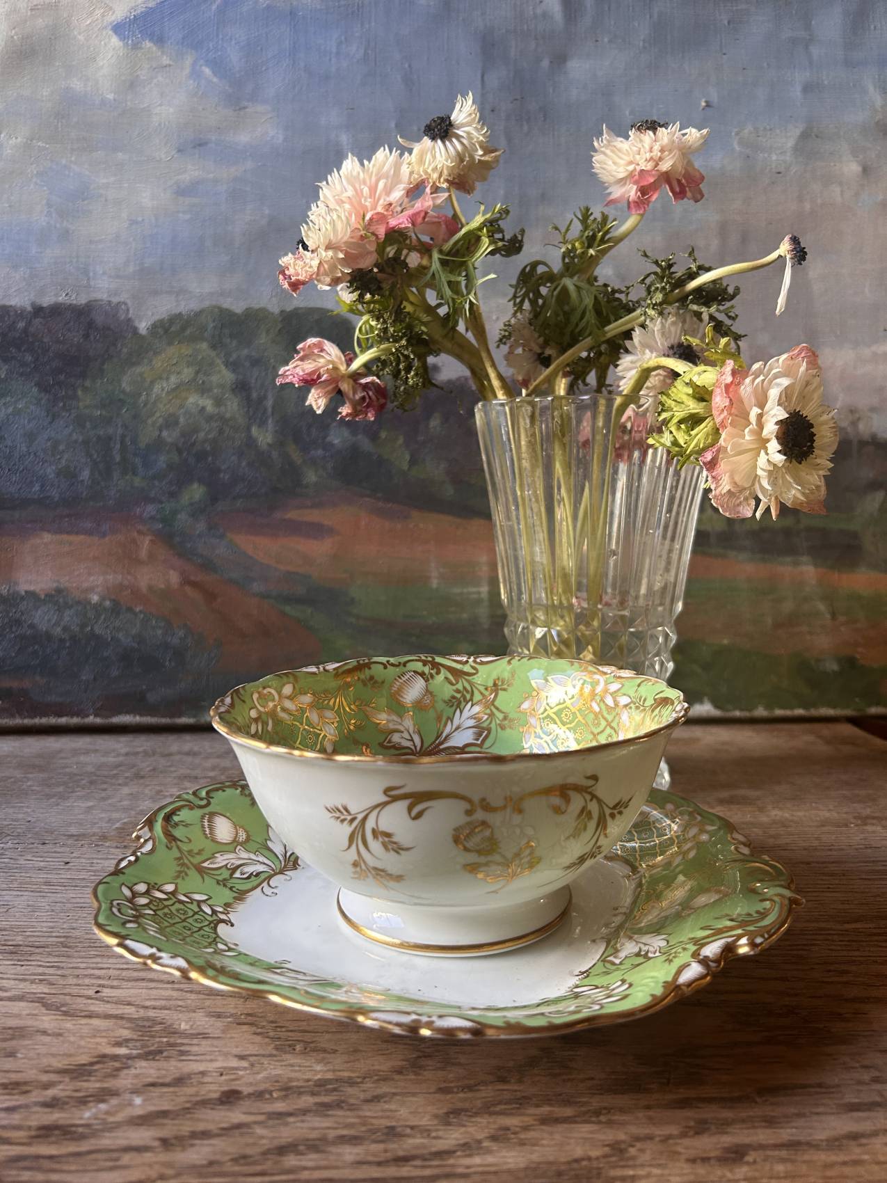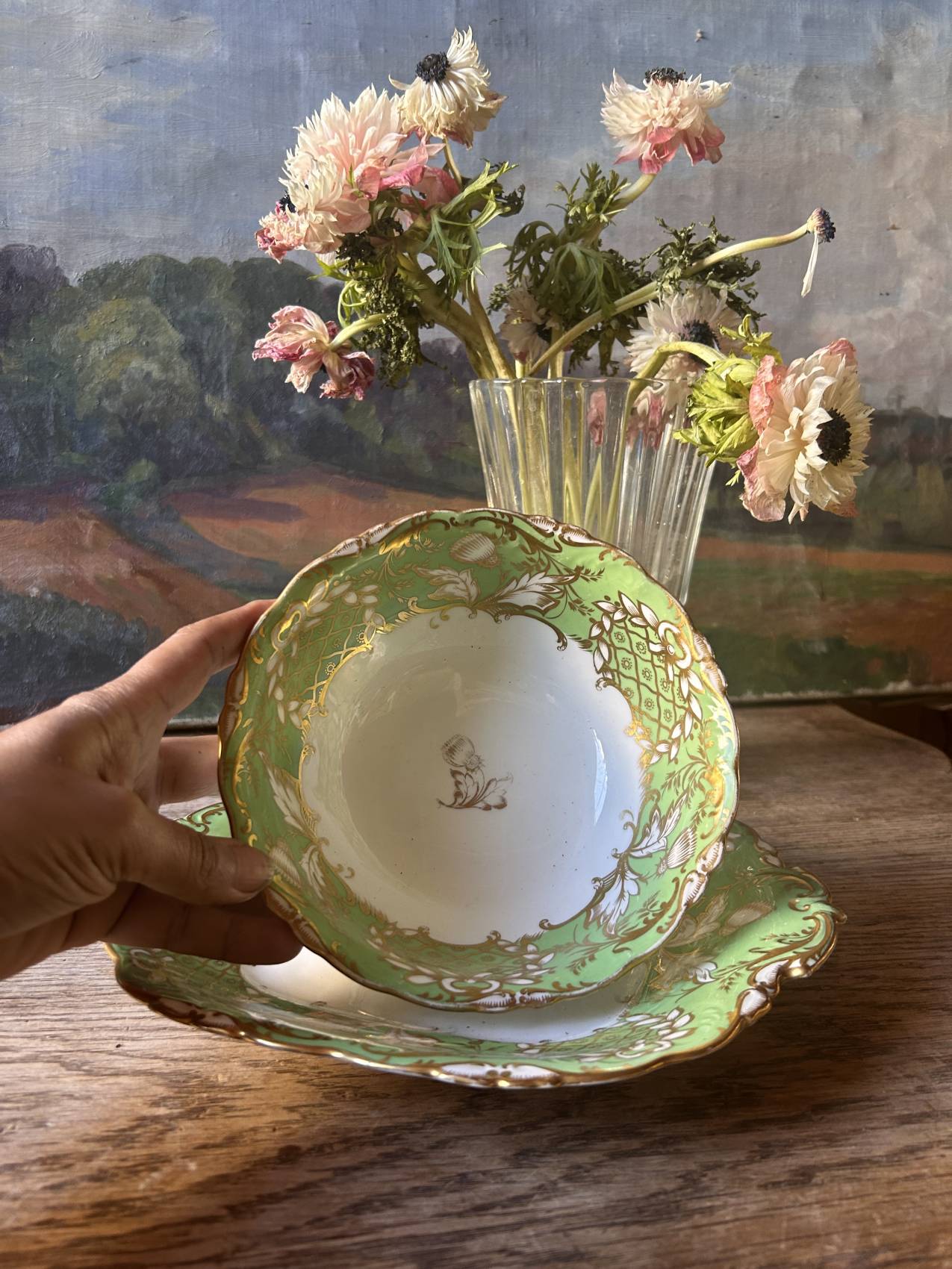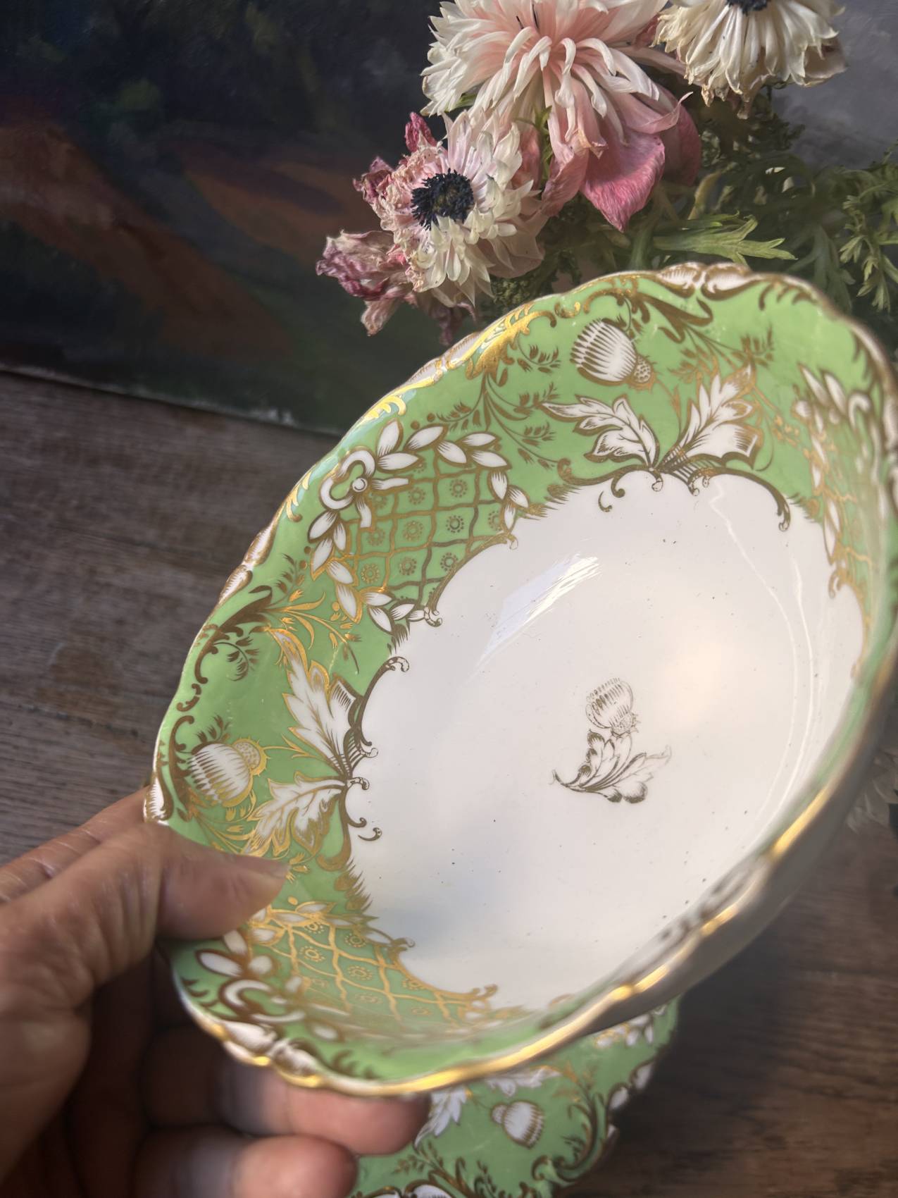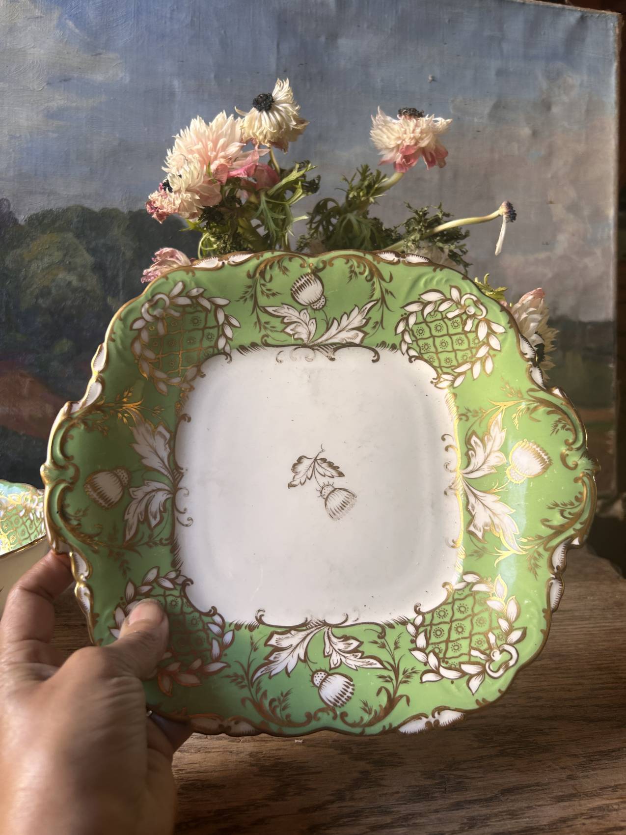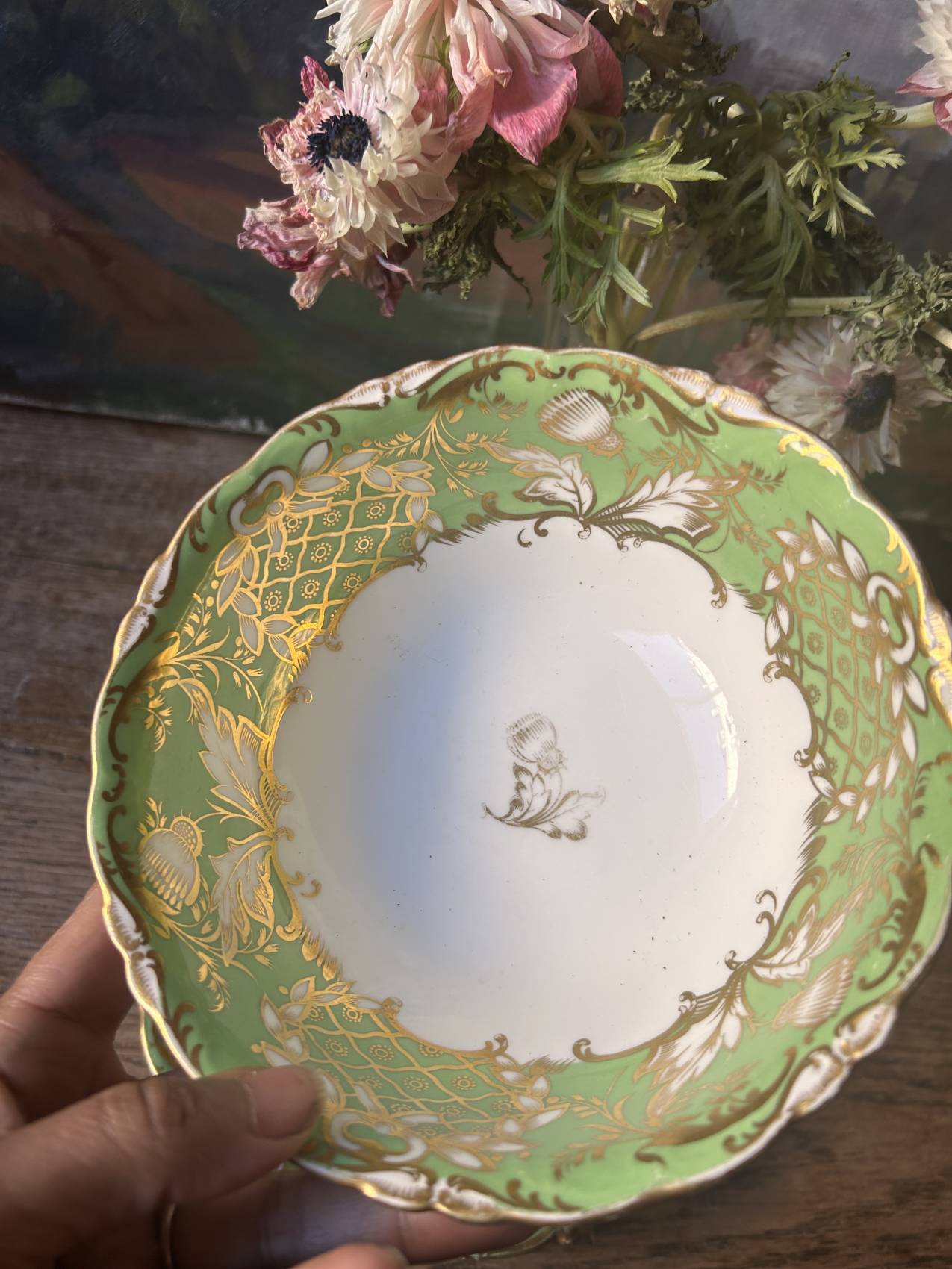 Un vert éclatant et un décor or finement appliqué.
