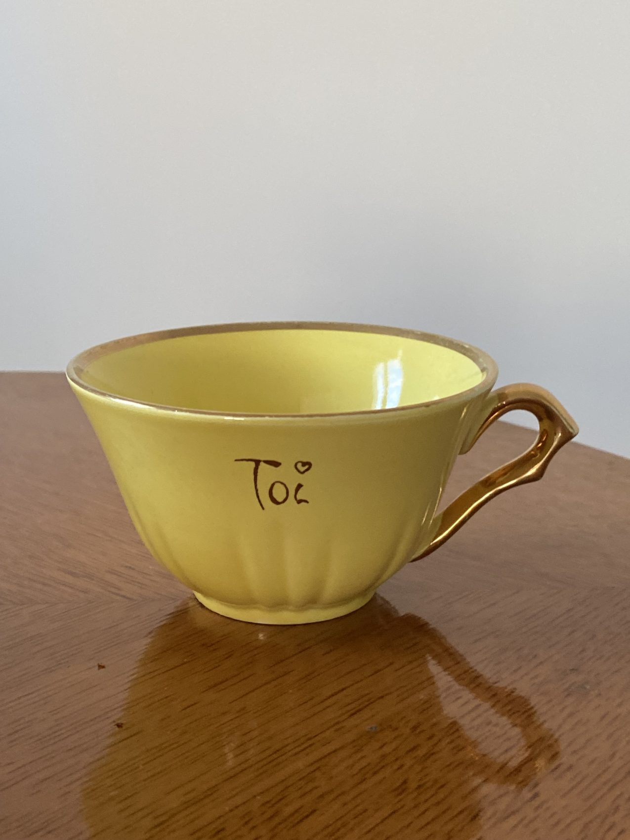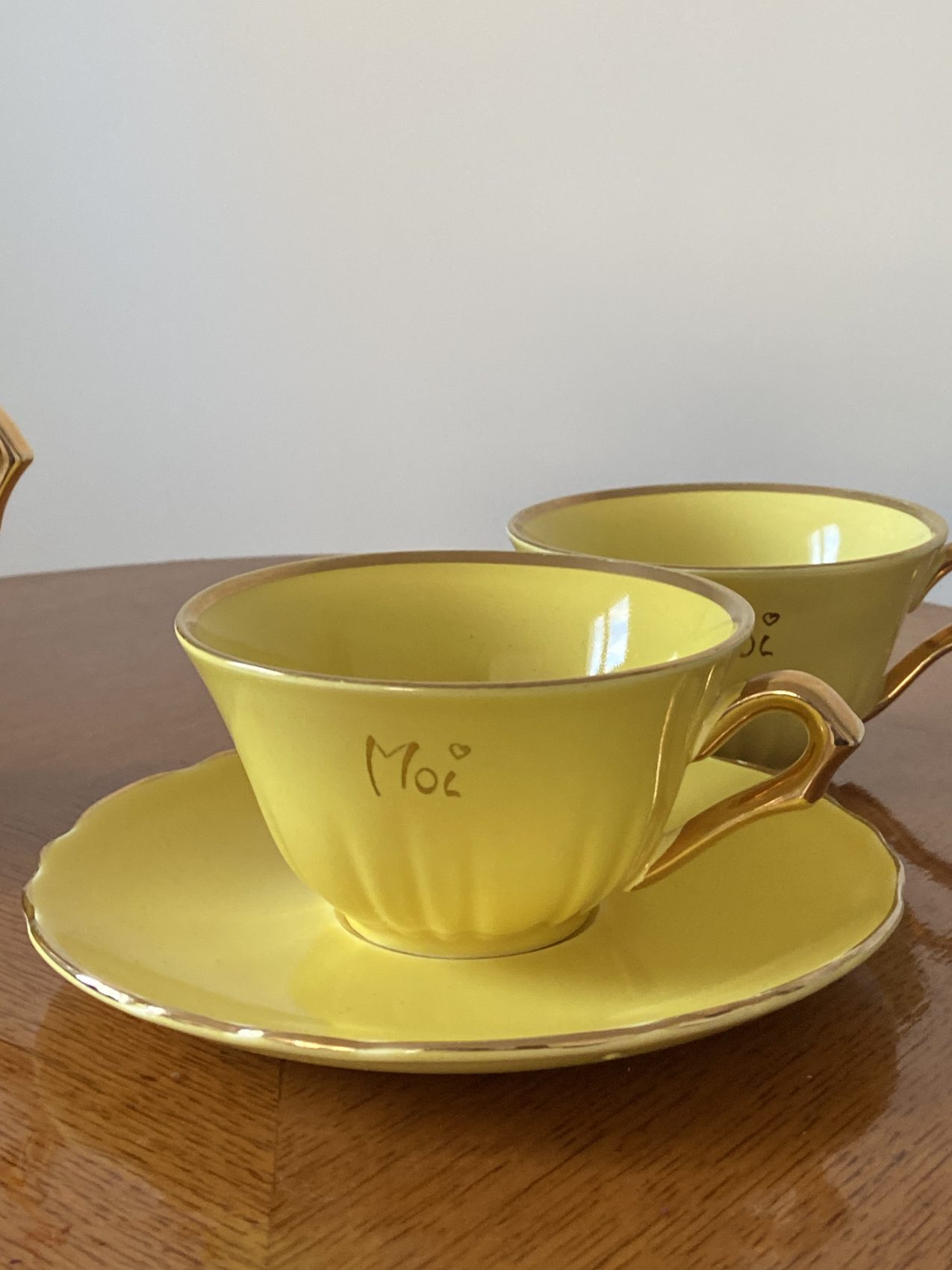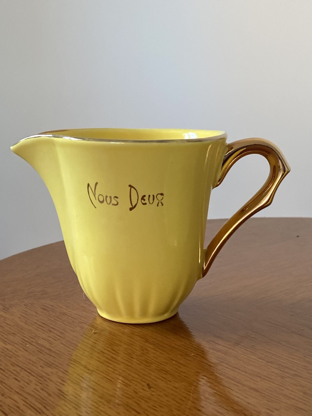 Ce modèle “Toi et moi”, avec son jaune plein de gaité et son style tres vintage, est une pépite à la fois sentimentale et décorative.