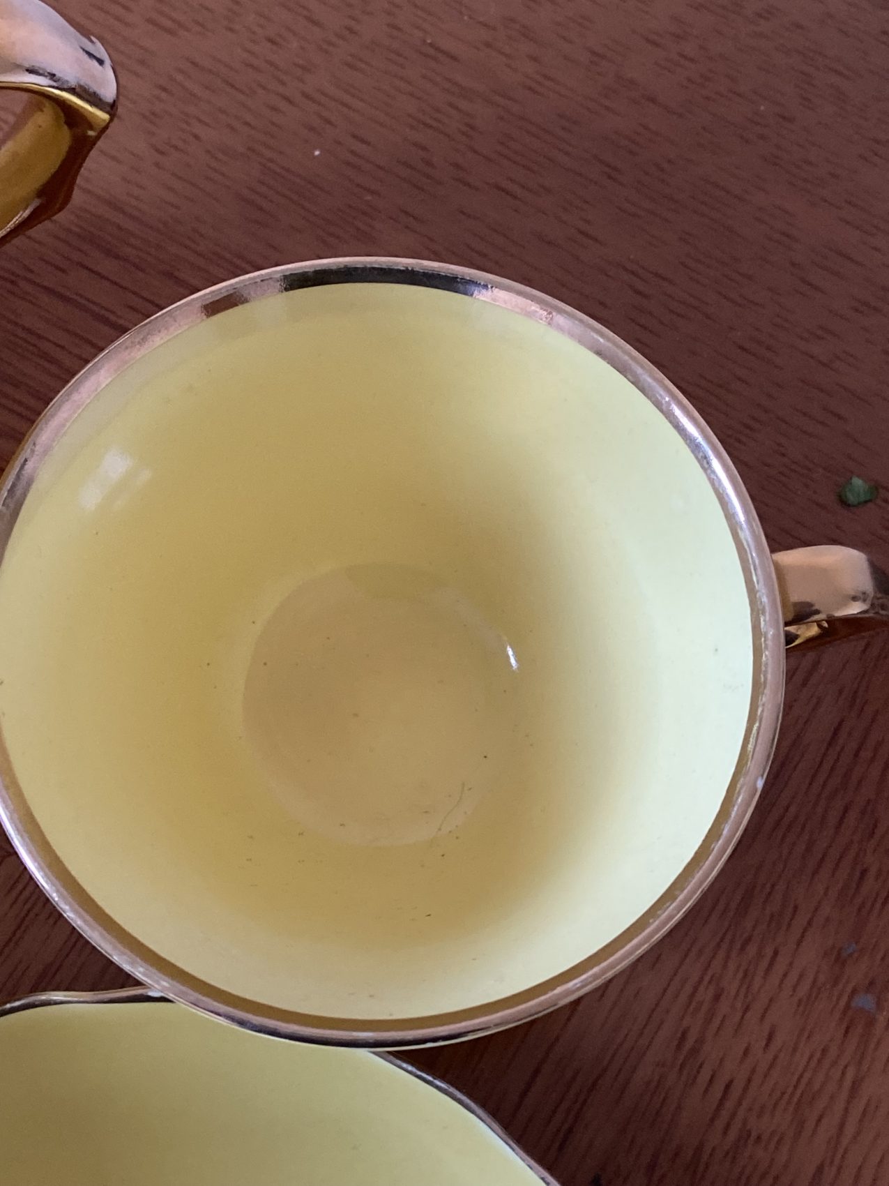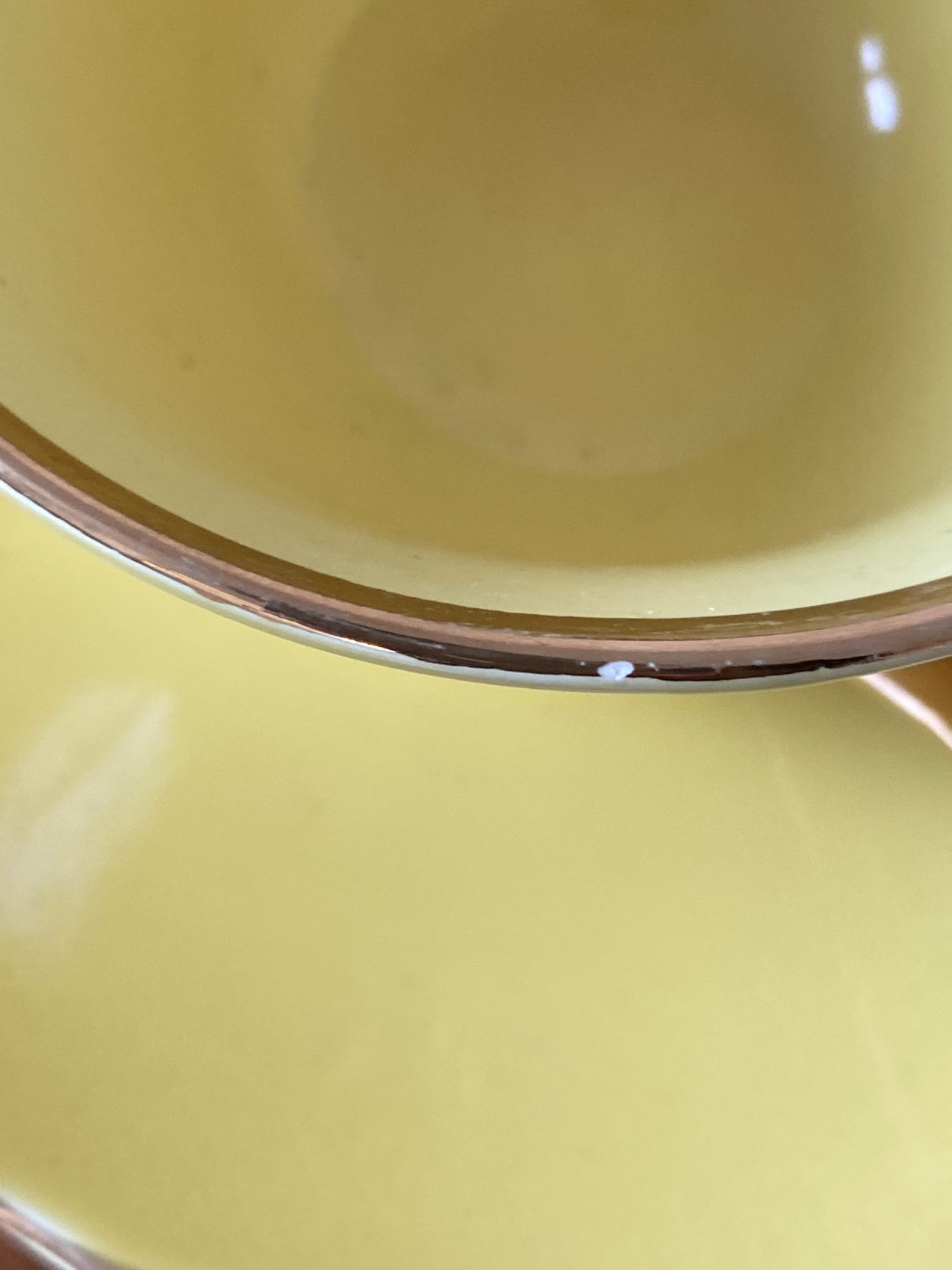 Seules quelques légères traces du temps sur la dorure, visibles sur les photos. Ne passe pas au lave-vaisselle ni au micro-ondes.