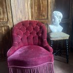 Ce fauteuil ancien est un fauteuil crapaud ancien en velours rouge il date du XIXe époque Napoléon III, l’assise est en méthode traditionnelle crin et sangle encore en bel état, le revêtement est en velours et présente des traces d’usures qui font le charme de cette pièce.