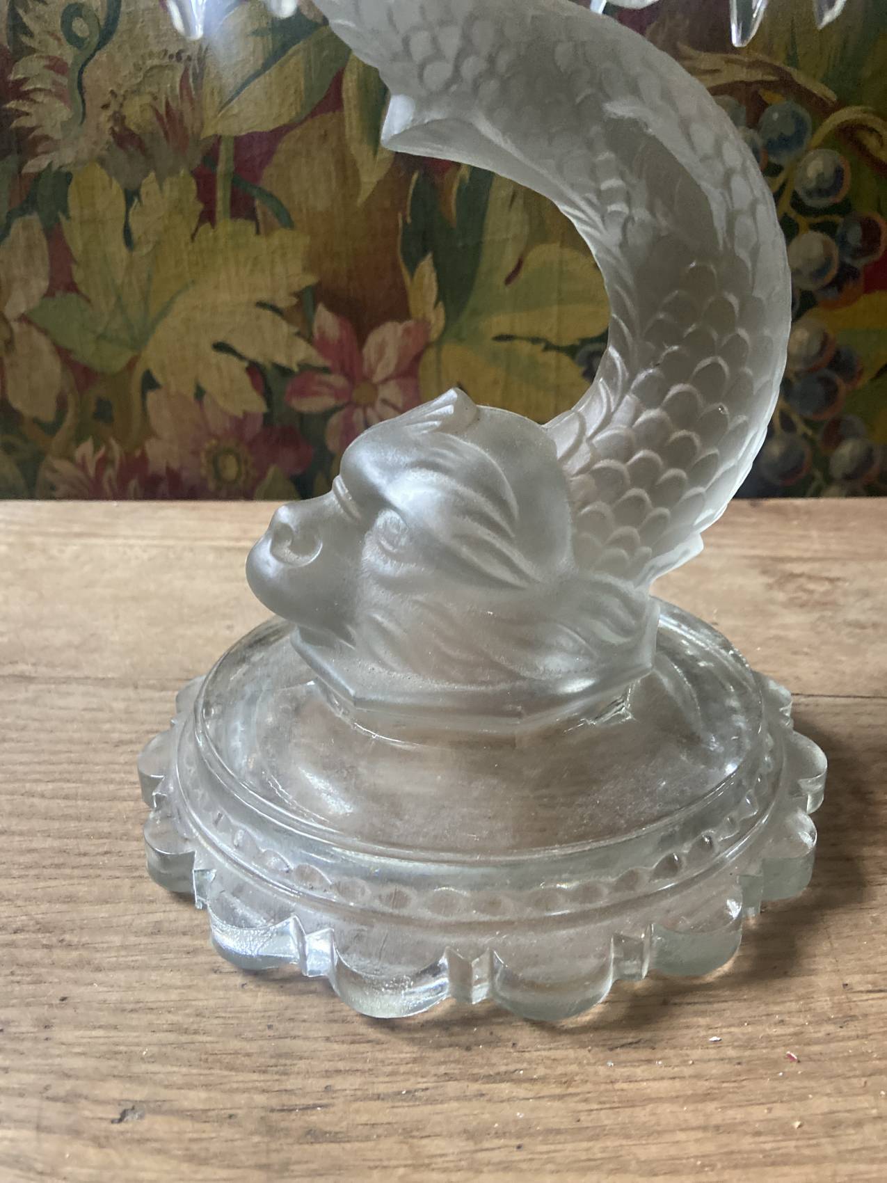 Grand bougeoir en verre de Portieux en forme de poisson époque Art Déco