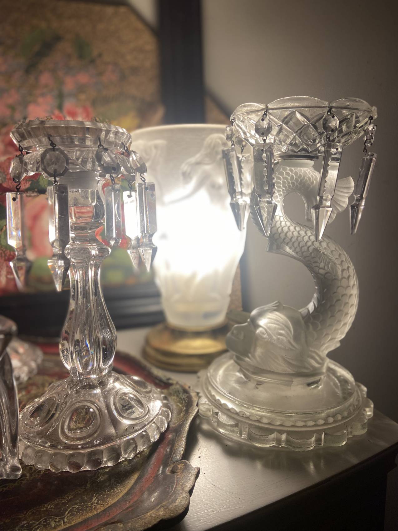 La coupelle amovible a pampilles est en cristal.