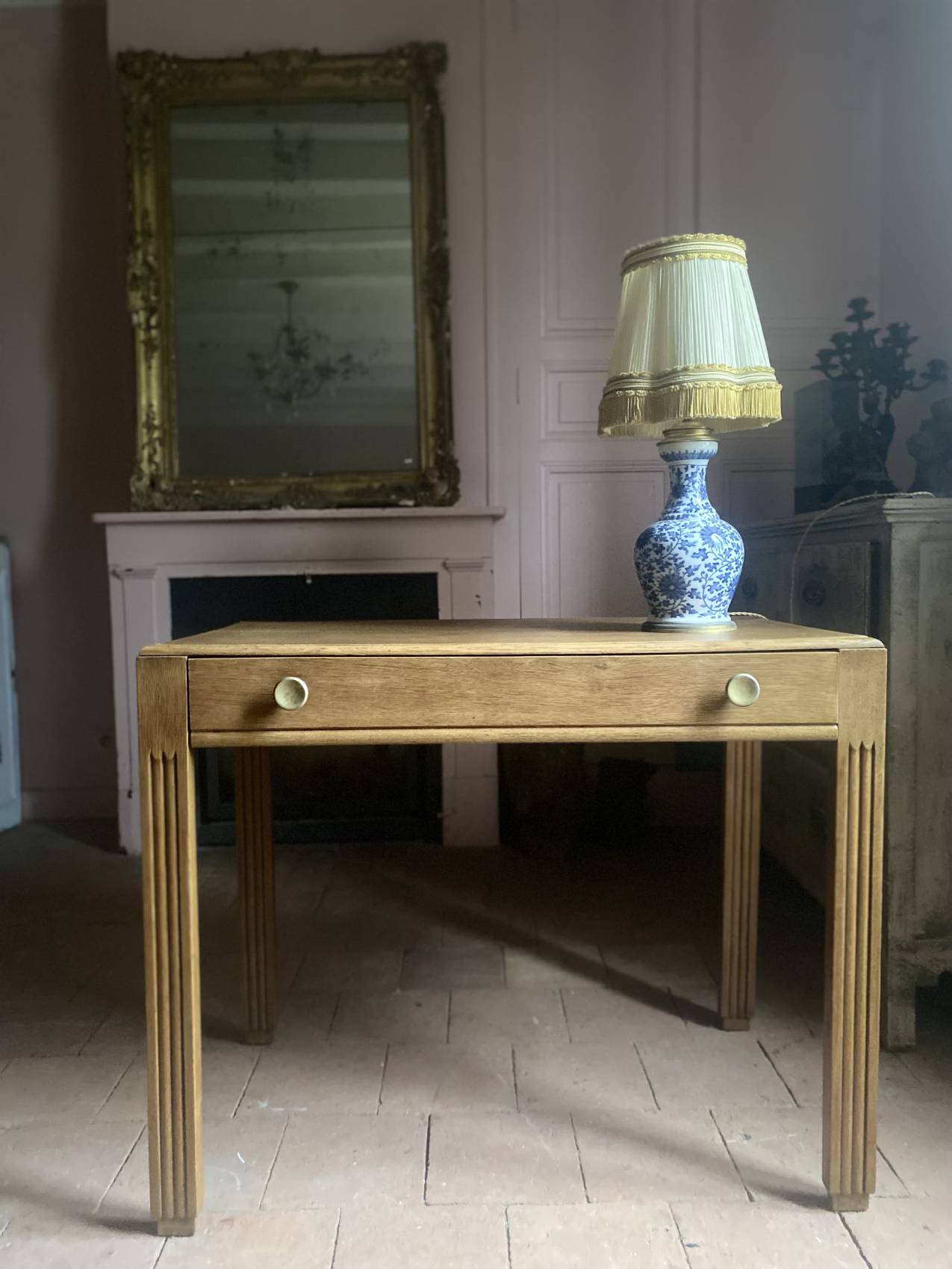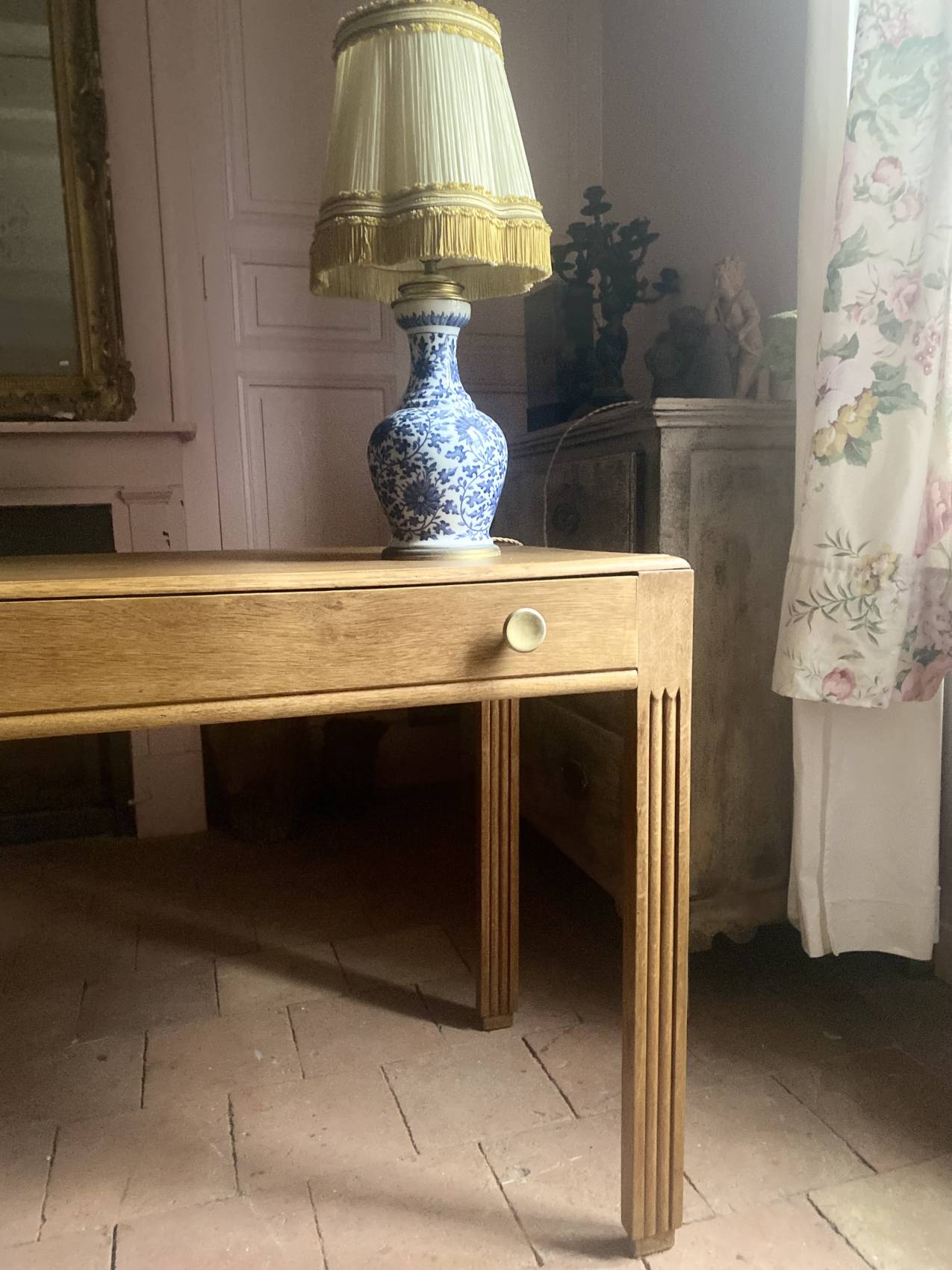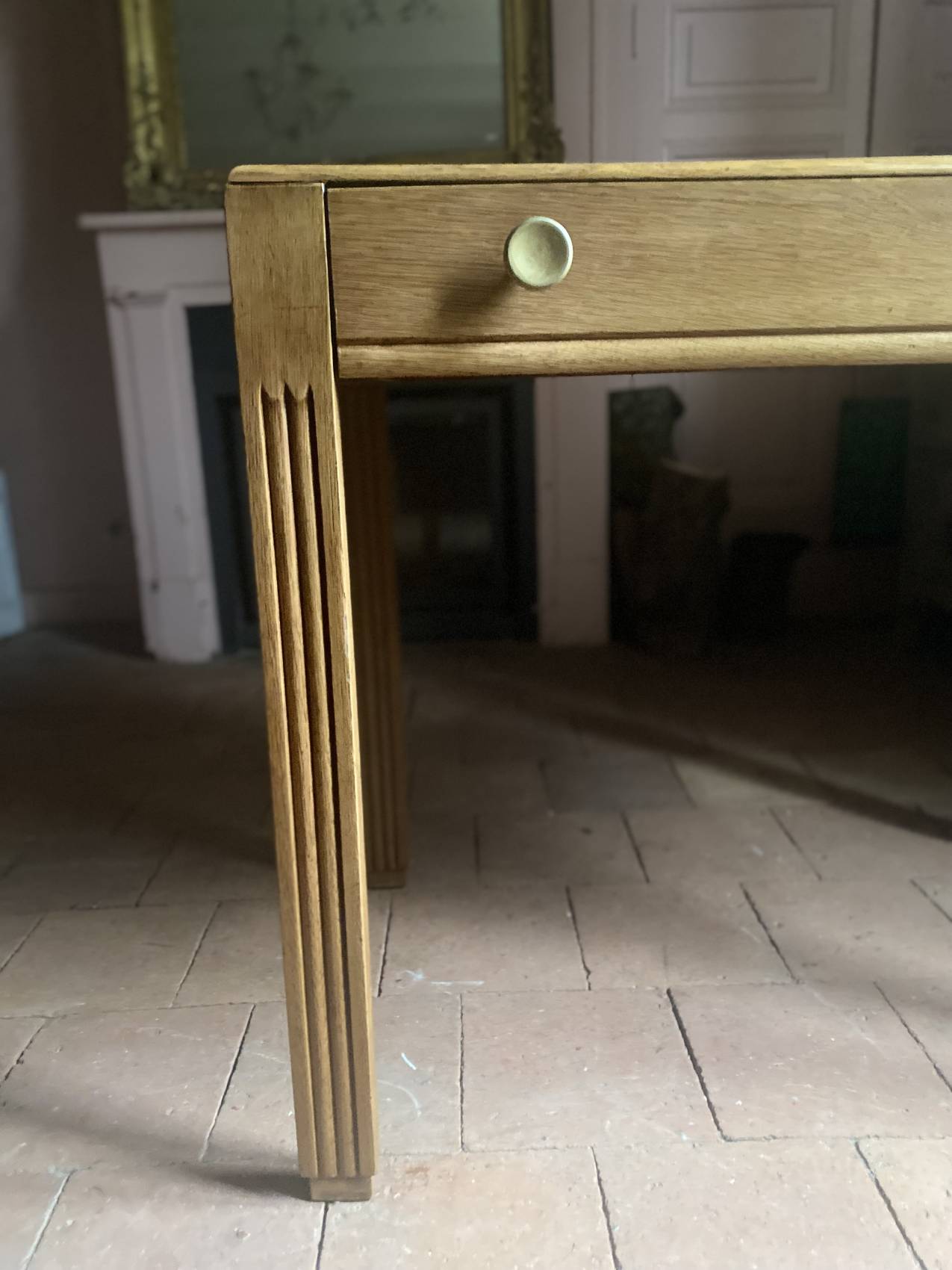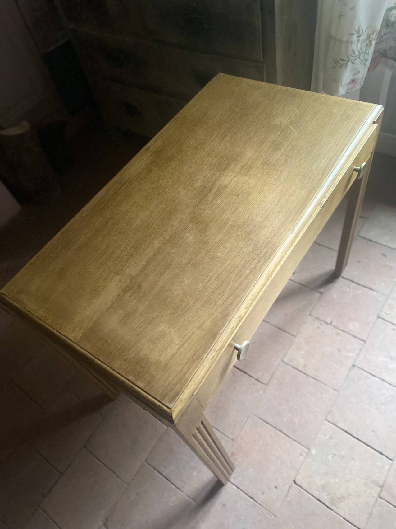 Grande console ancienne époque Art Deco en chêne blond