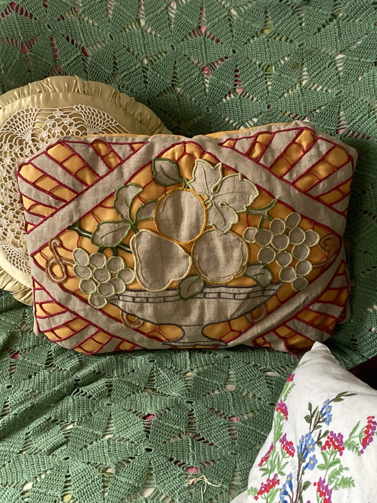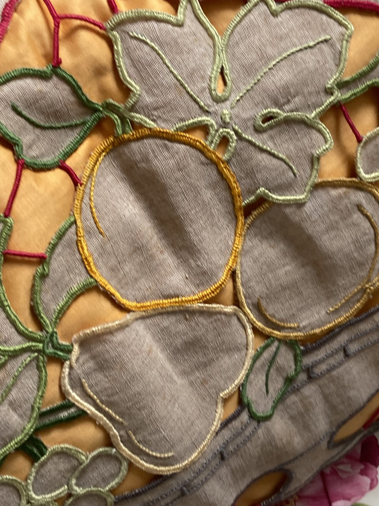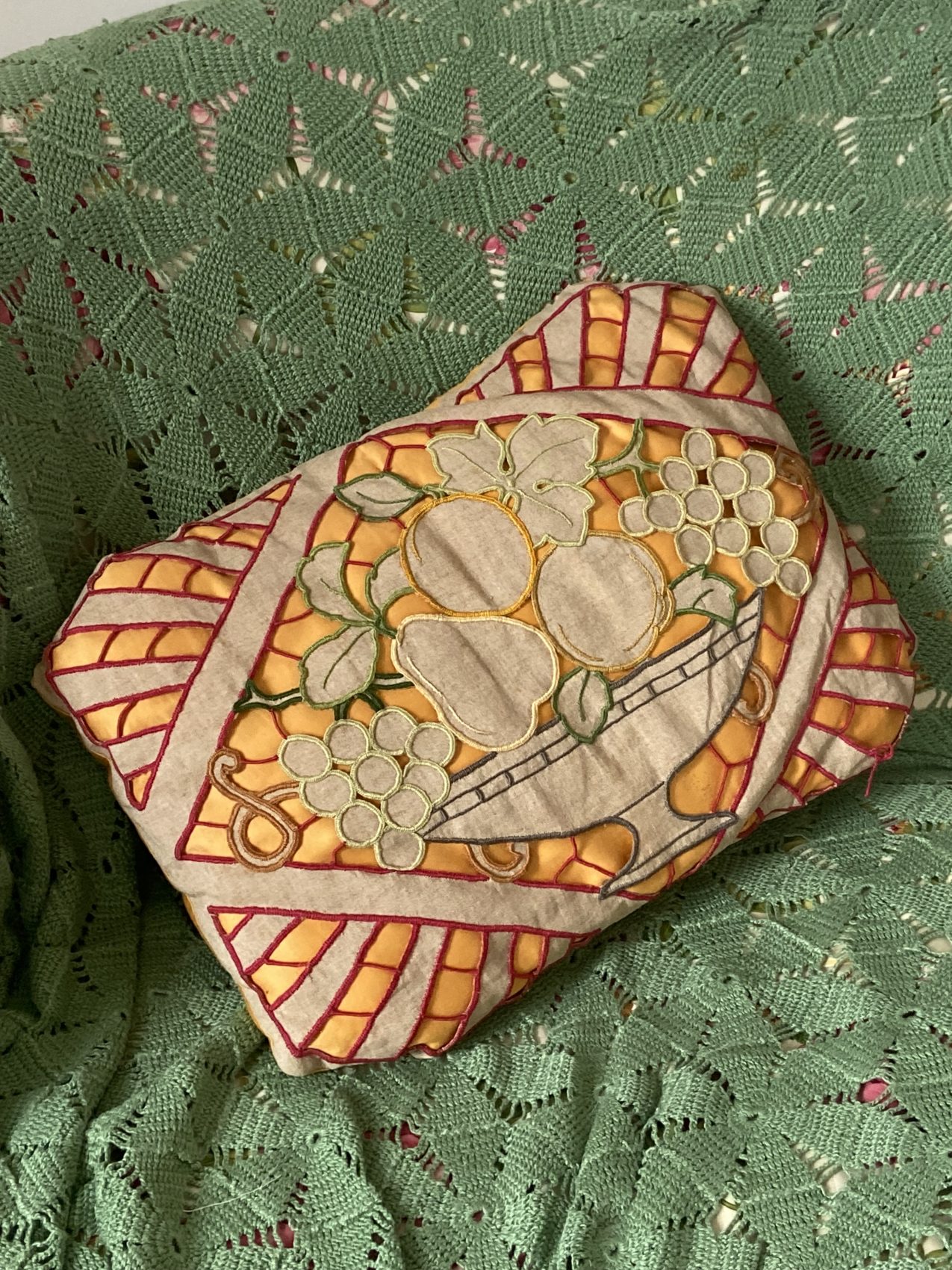 Grand coussin rectangulaire motif de fruits – époque 1900