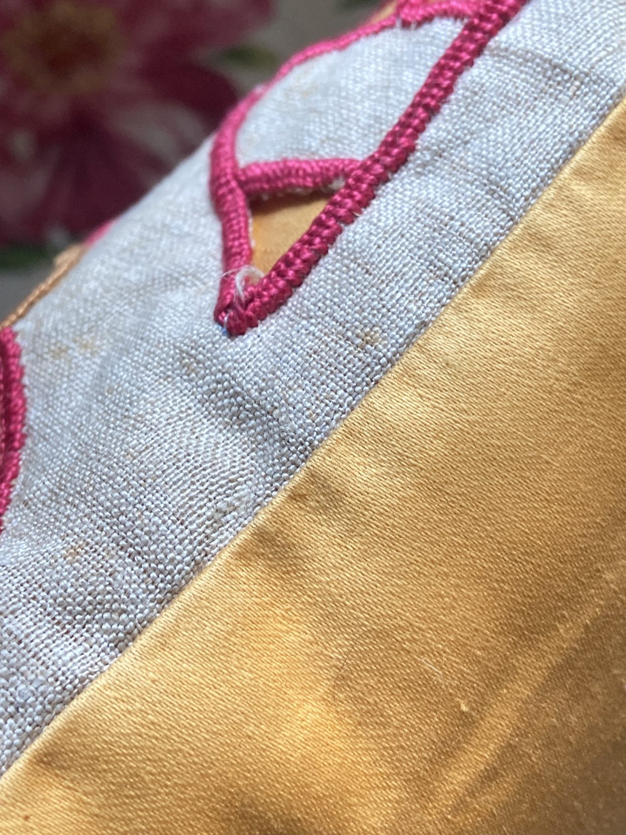 J’aime ces coussins anciens parce qu’ils incarnent la chaleur des maisons vivantes. Celui-ci a gardé sa noblesse et sa justesse : pas d’excès, pas de clinquant. Il respire la belle ouvrage et la patience des mains d’autrefois. Un coussin qu’on adopte facilement, qu’on garde longtemps.