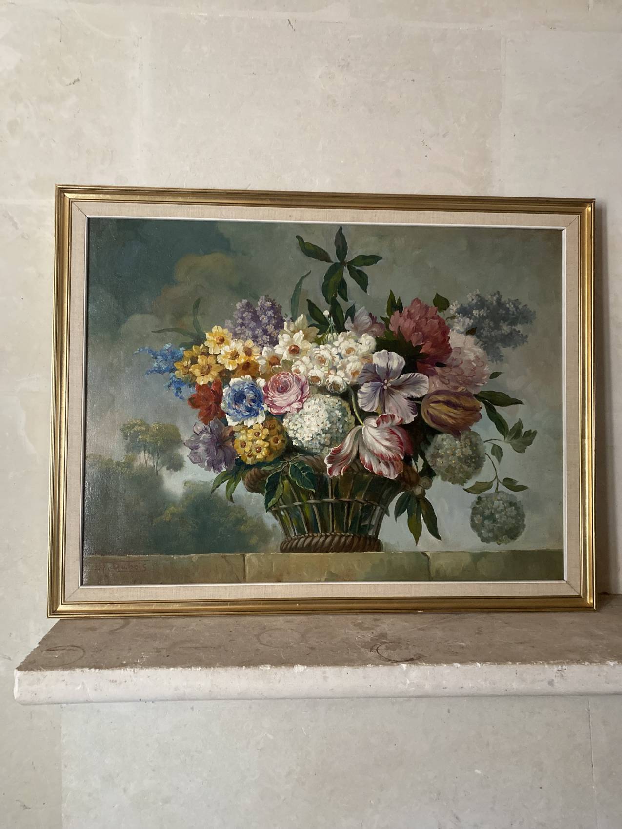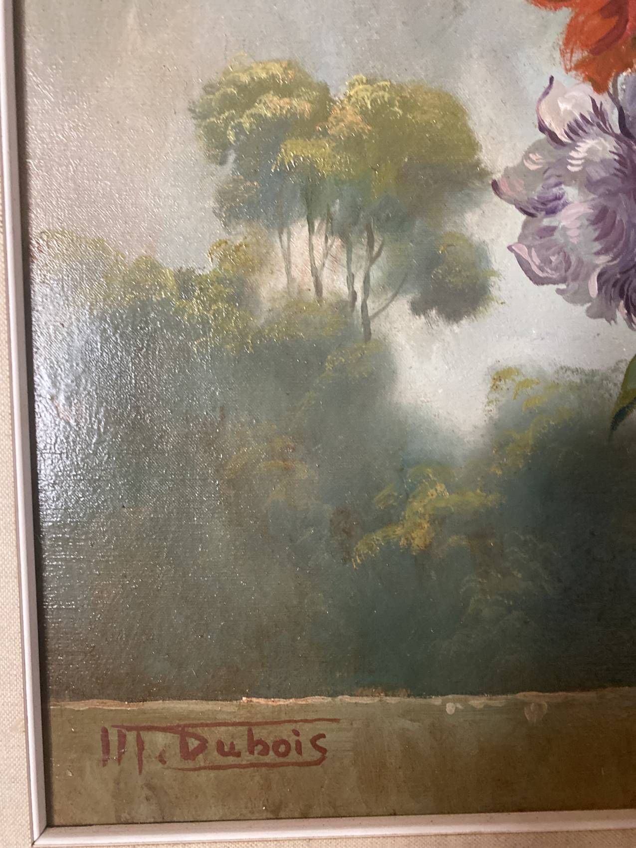 Grand tableau nature morte aux fleurs signé Dubois – Peinture à l’huile (80×61 cm)