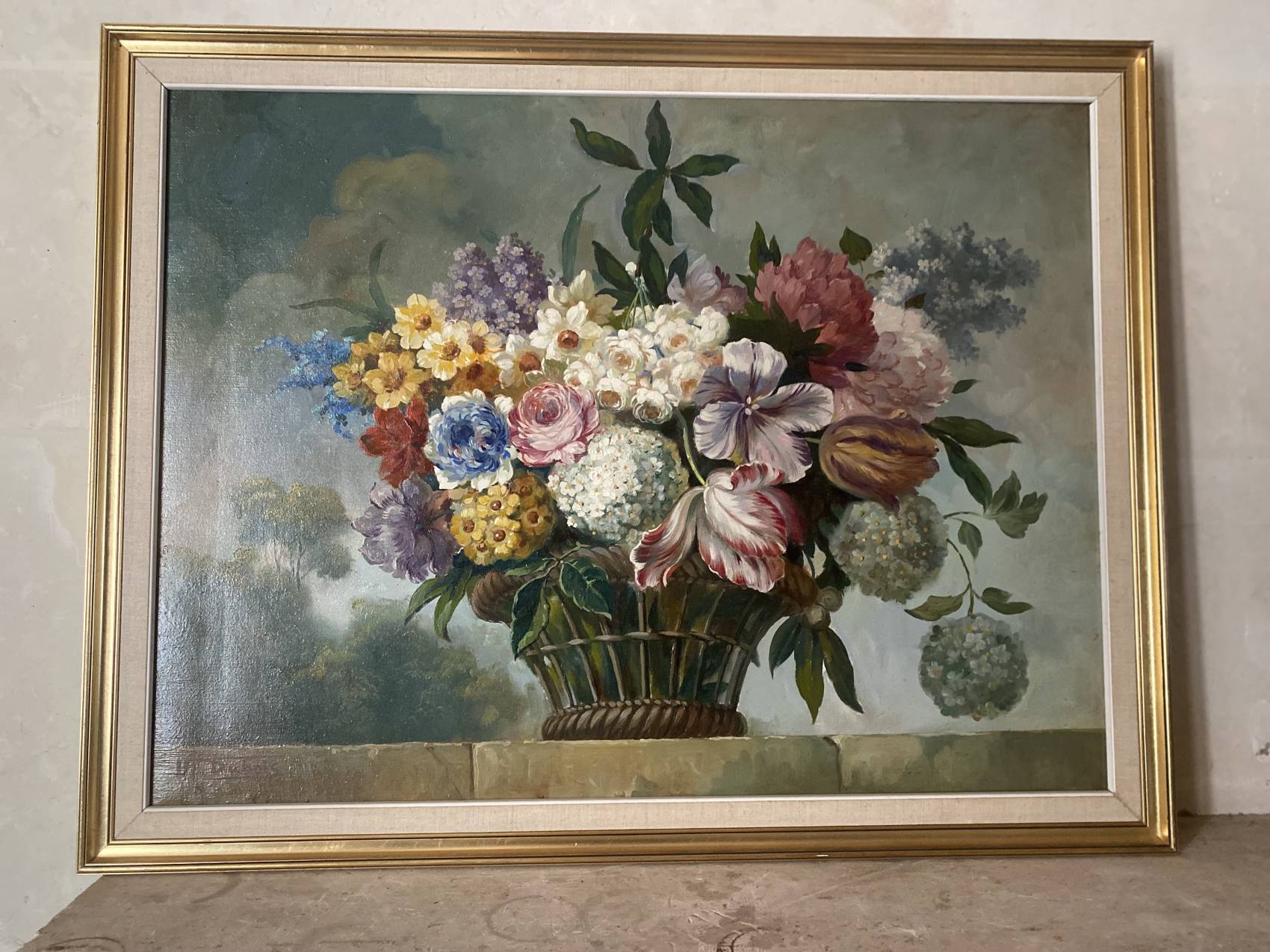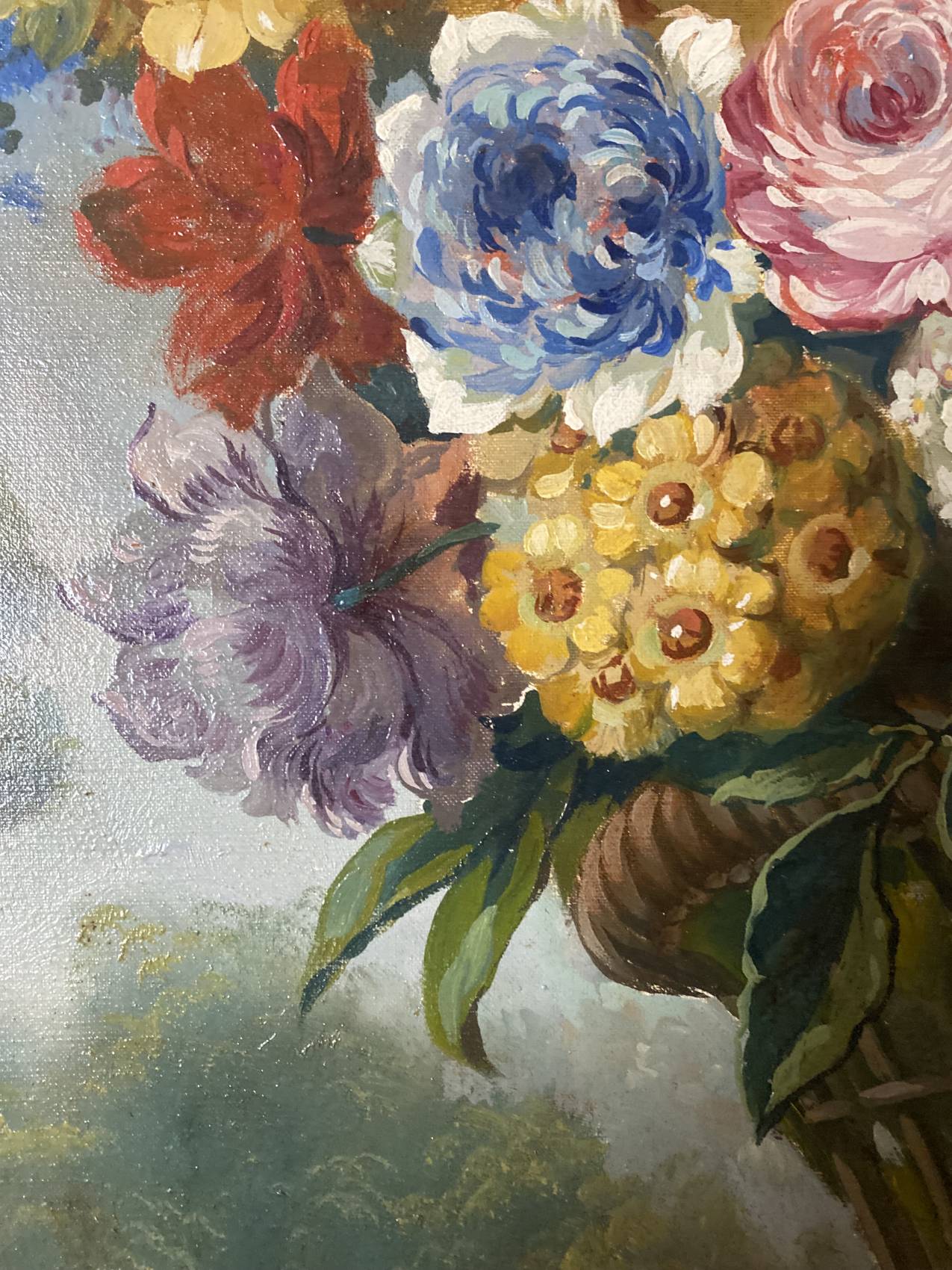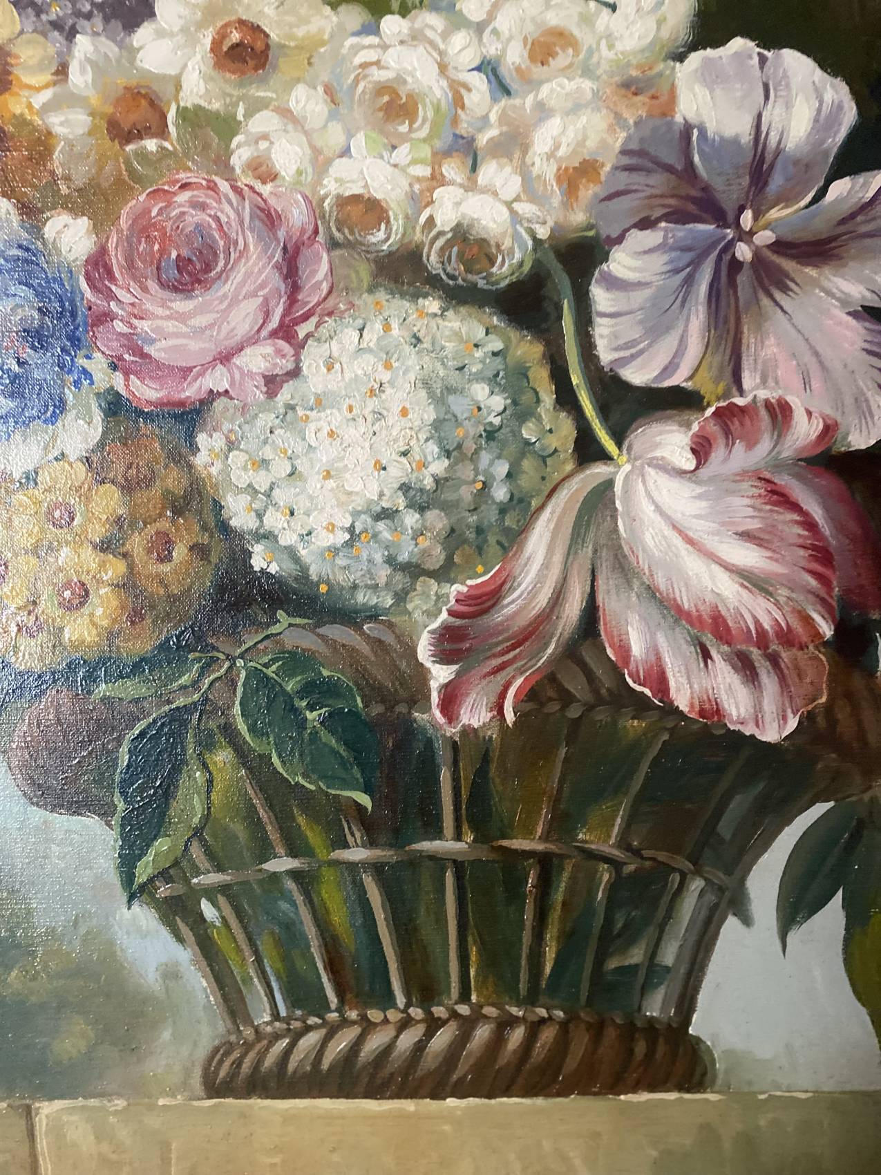 Tableau ancien nature morte aux fleurs peinture à l’huile