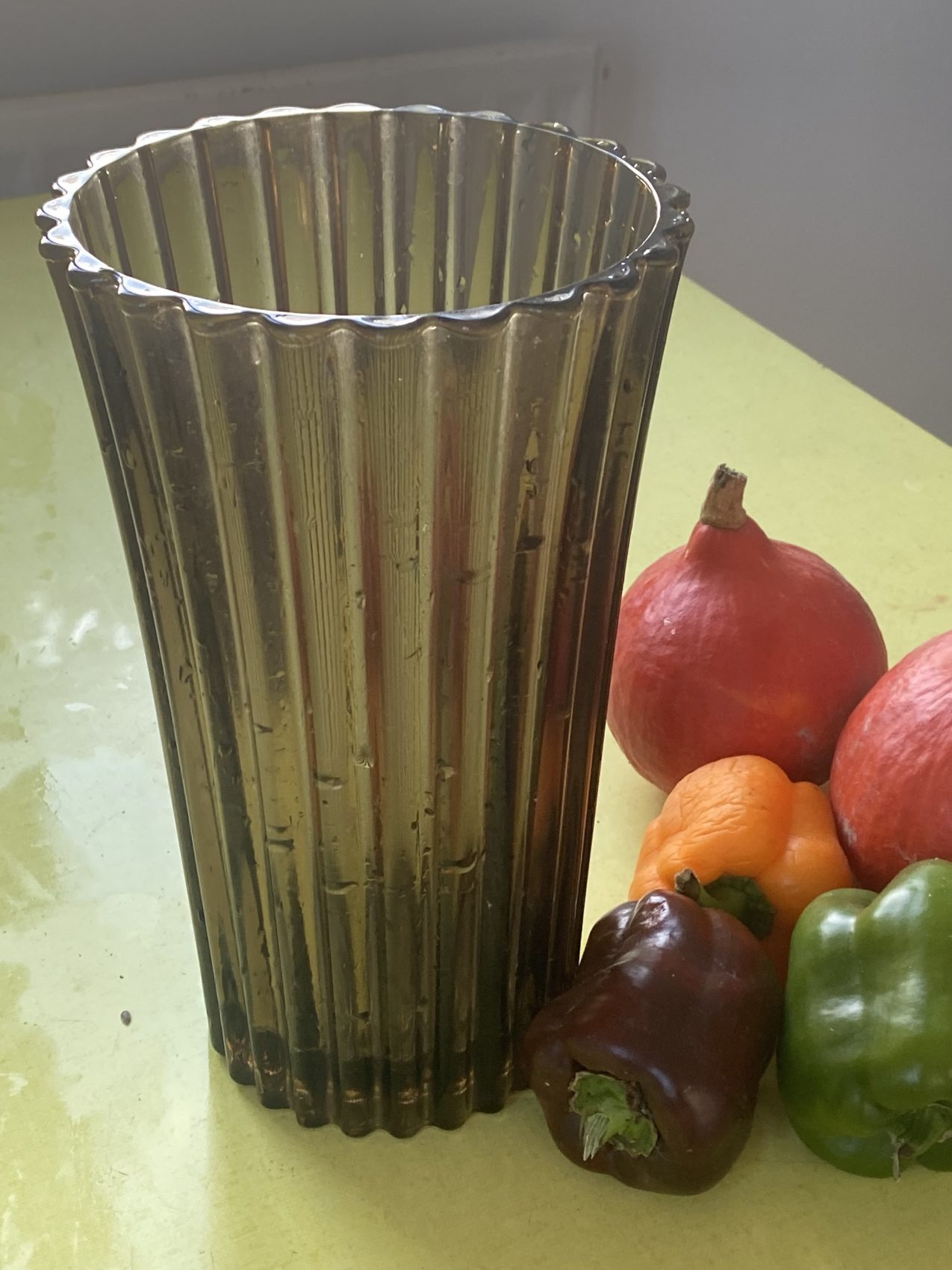 Grand vase Art Déco en verre fumé – hauteur 24 cm