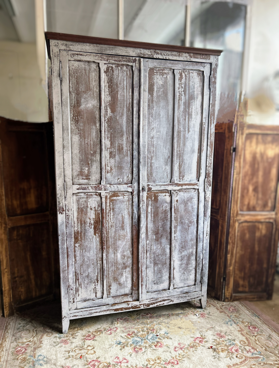 Grande armoire parisienne en chêne début XXe Patine à l’ancienne blanche