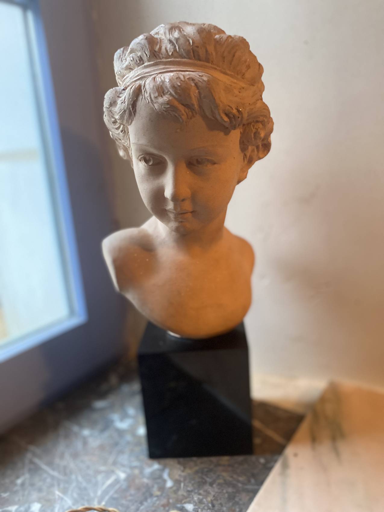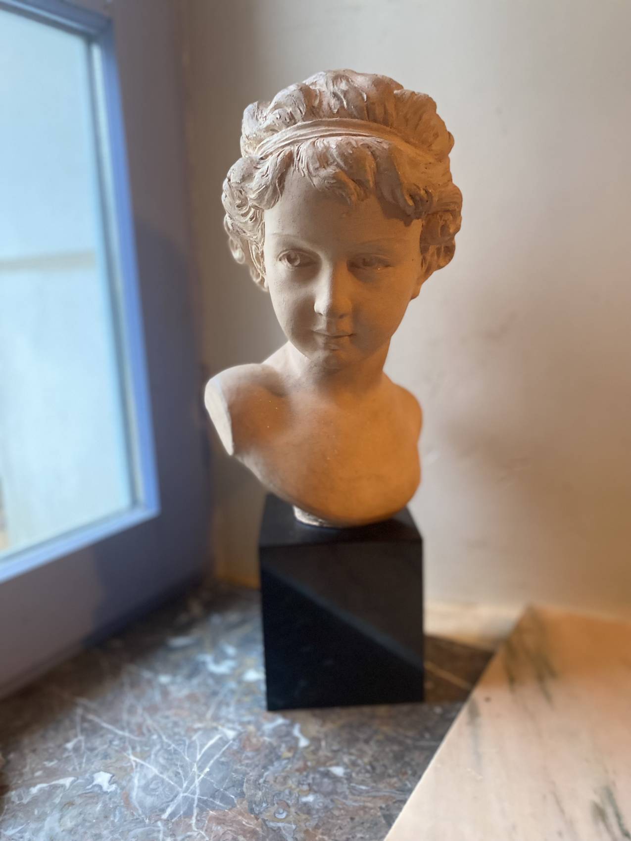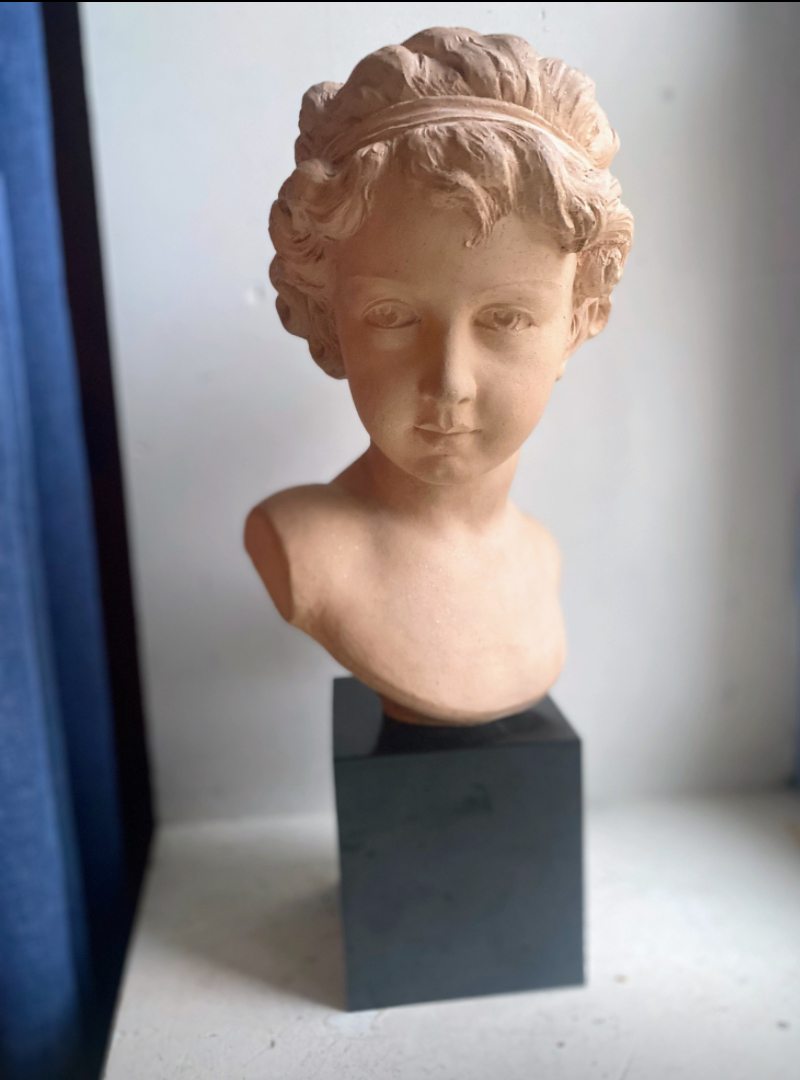 Plongez dans l’élégance intemporelle des années 1920-1930 avec cette magnifique sculpture en terre cuite. Cette œuvre authentique signée Migael, d’une hauteur de 40 cm et d’une largeur de 25 cm, capture avec finesse et poésie le visage d’une petite fille, typiquement Art Déco.