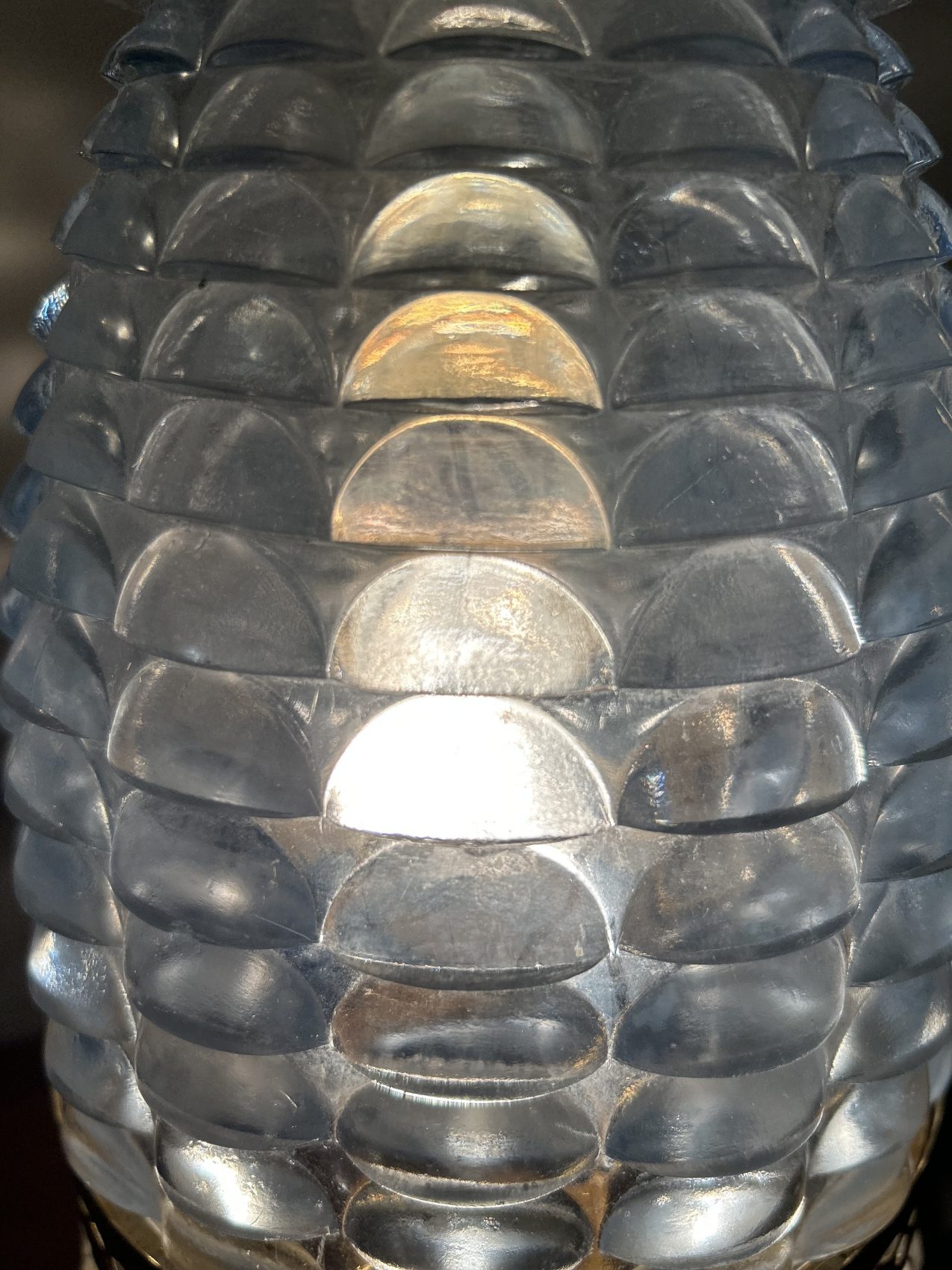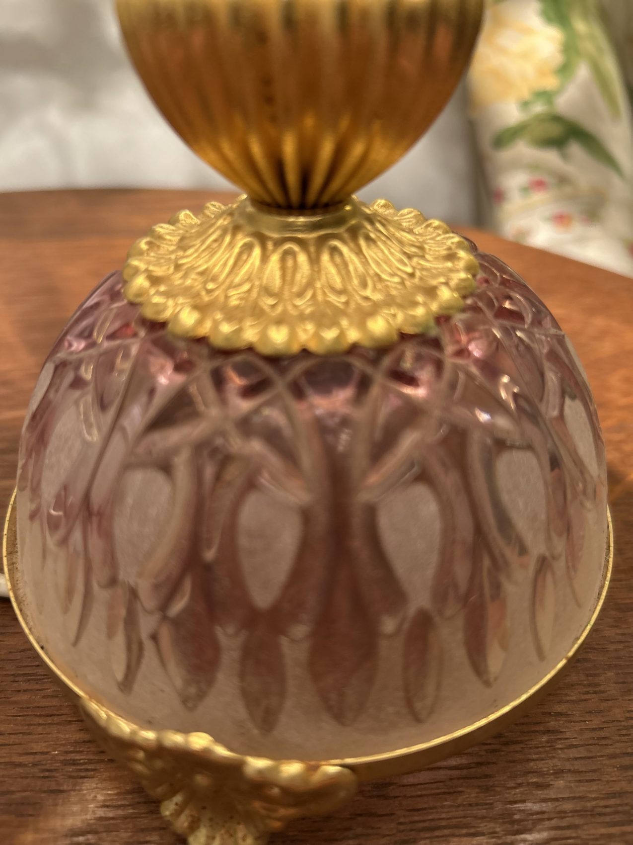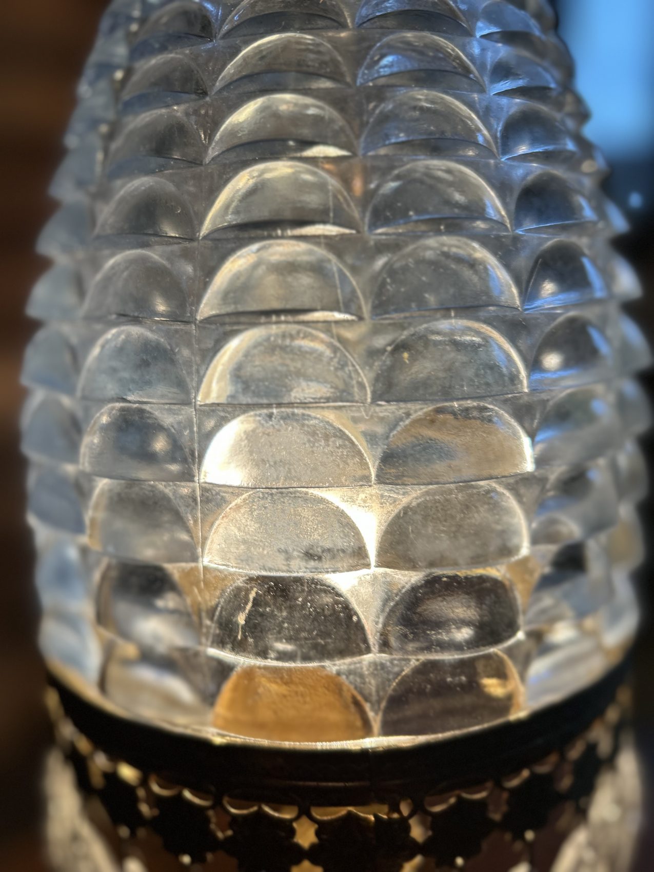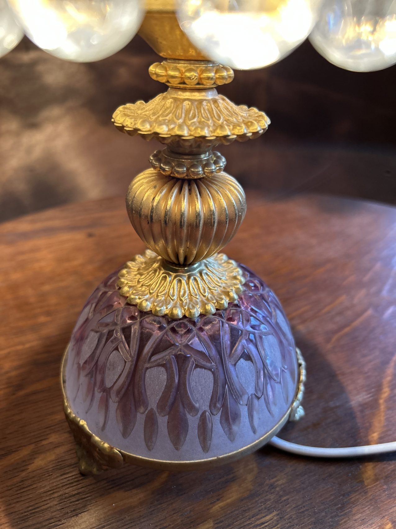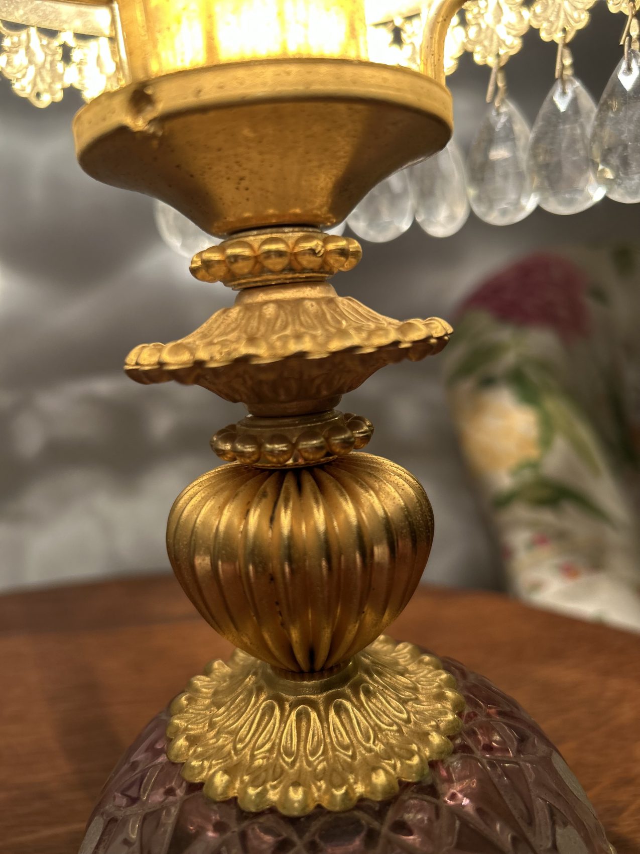 Ou II s’agit d’une lampe ancienne vintage chinée, avec une patine d’origine et des traces du temps normales à savoir 4 pampilles sont manquantes.
