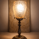La lumière diffusée est douce, chaleureuse, enveloppante sublime le décor en relief et accentue la profondeur du verre.