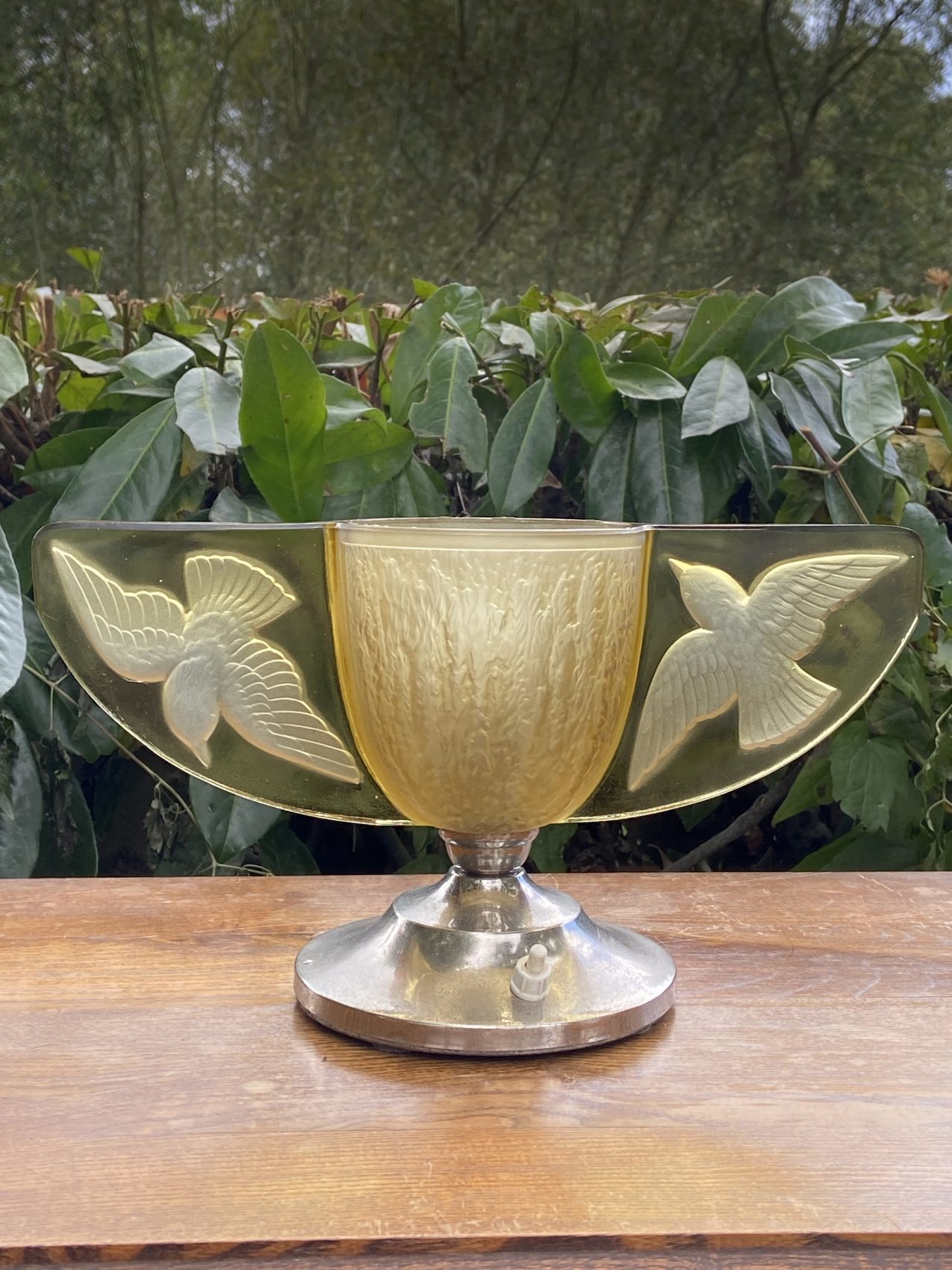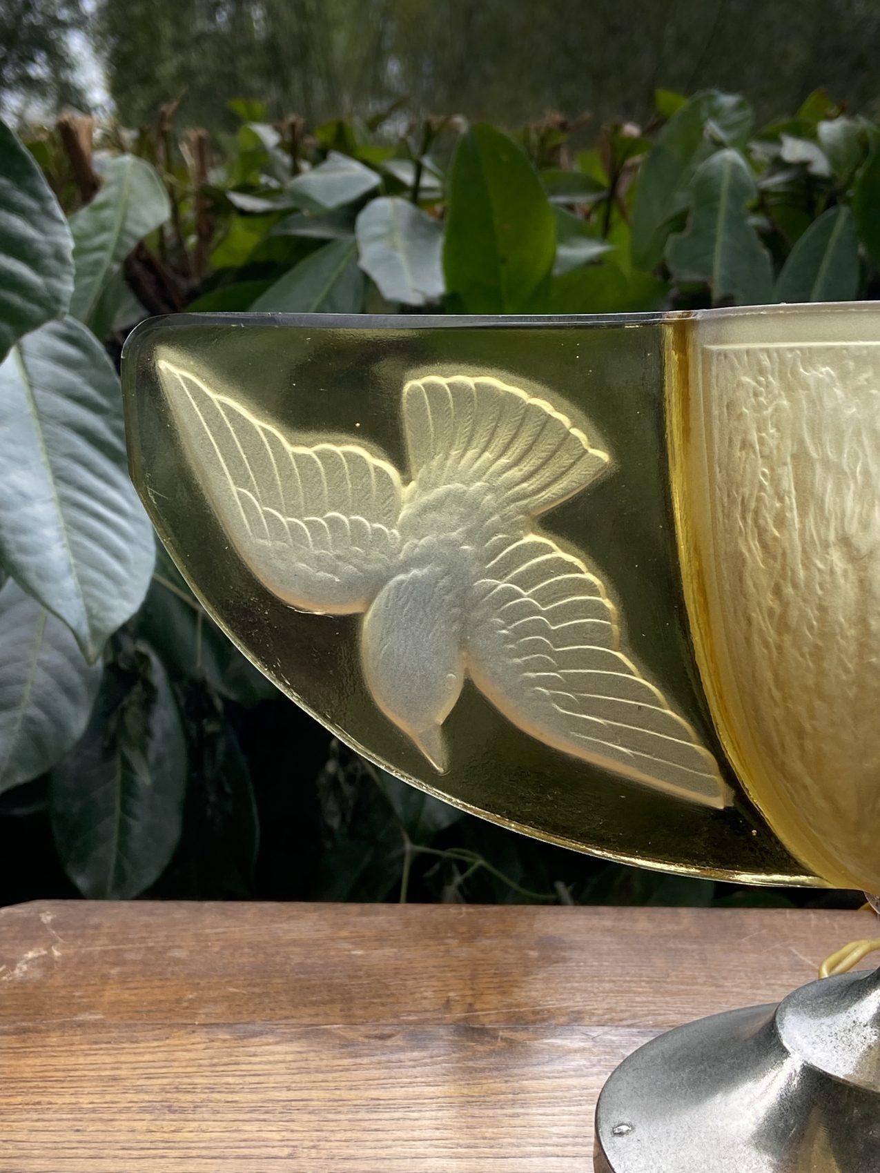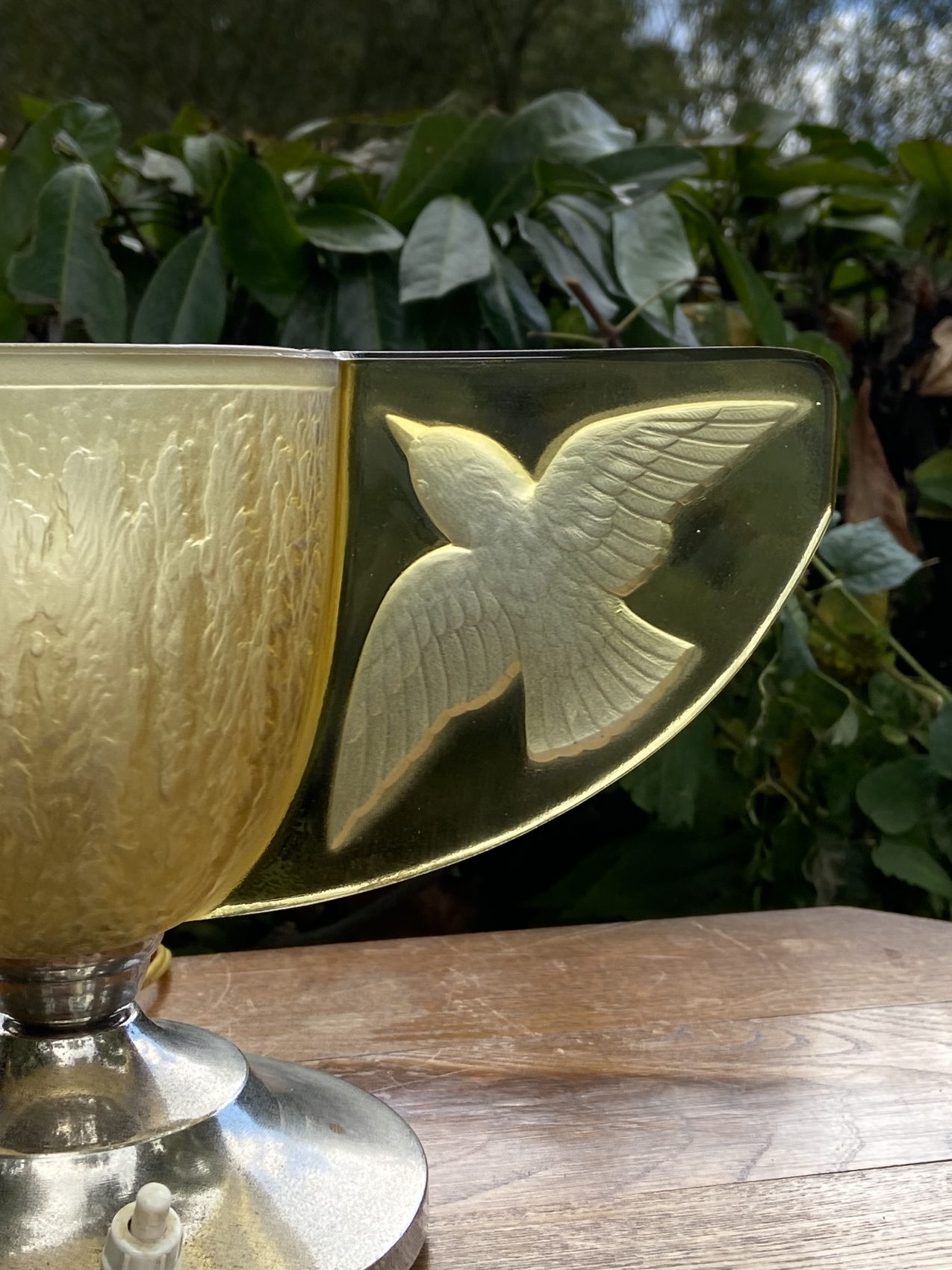 Lampe Epoque Art Déco en verre dépoli aux oiseaux – 1930
