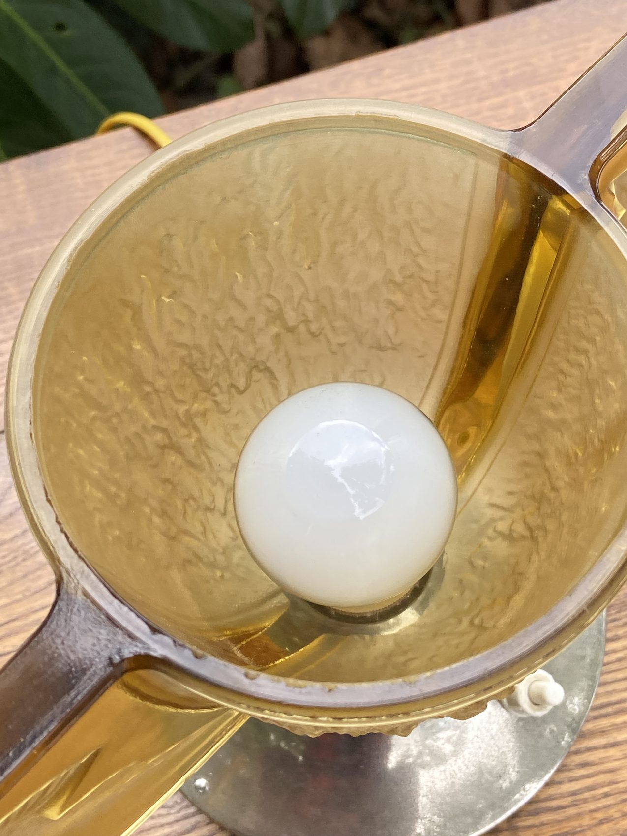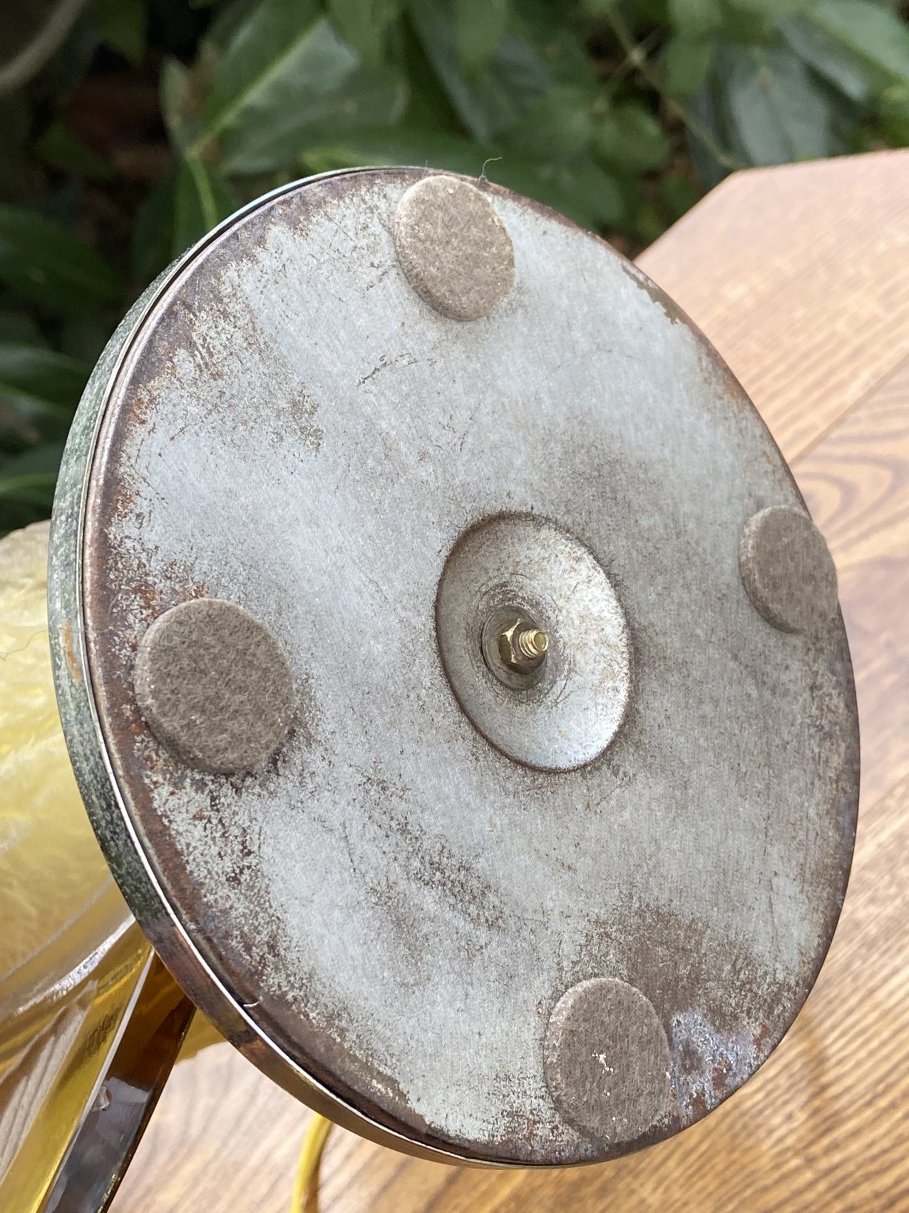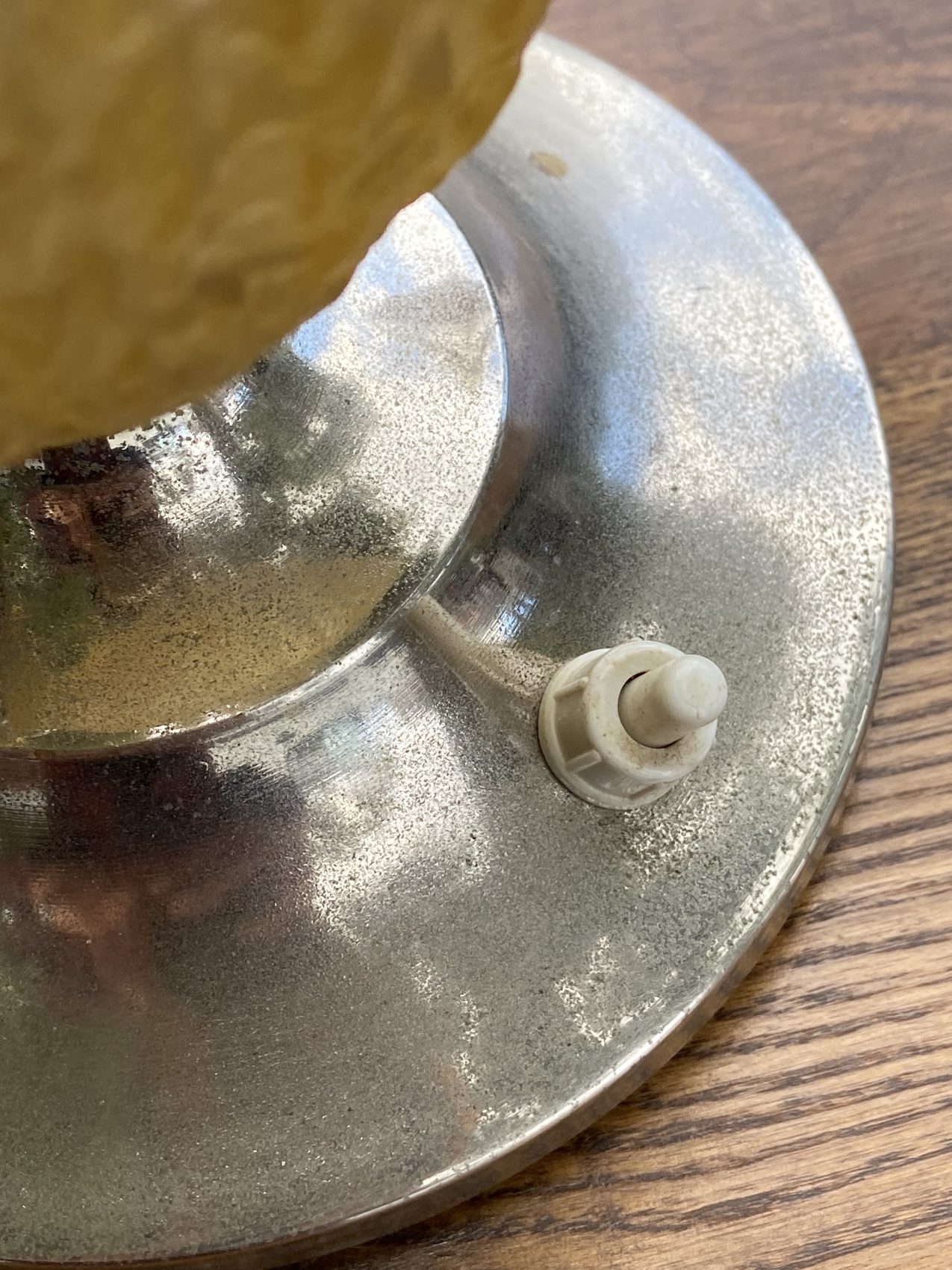 Fonctionnelle avec son électricité d’origine, elle conserve quelques traces du temps sur son socle, discrètes et garantes de son authenticité.