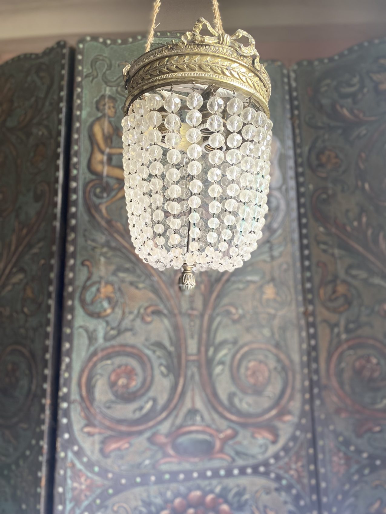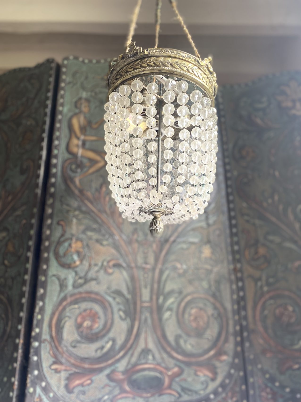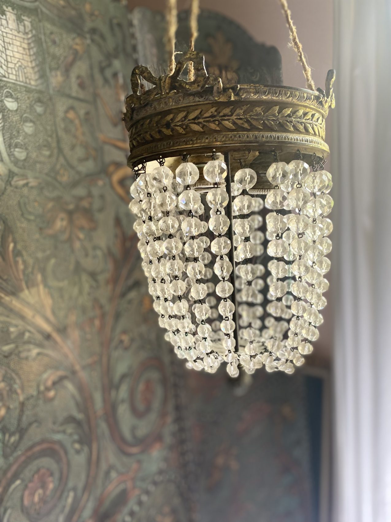 Sa lumière danse sur les pampilles comme une valse ancienne. Idéal dans une entrée, une cage d’escalier ou un boudoir qui a envie d’en jeter (sans en faire trop).