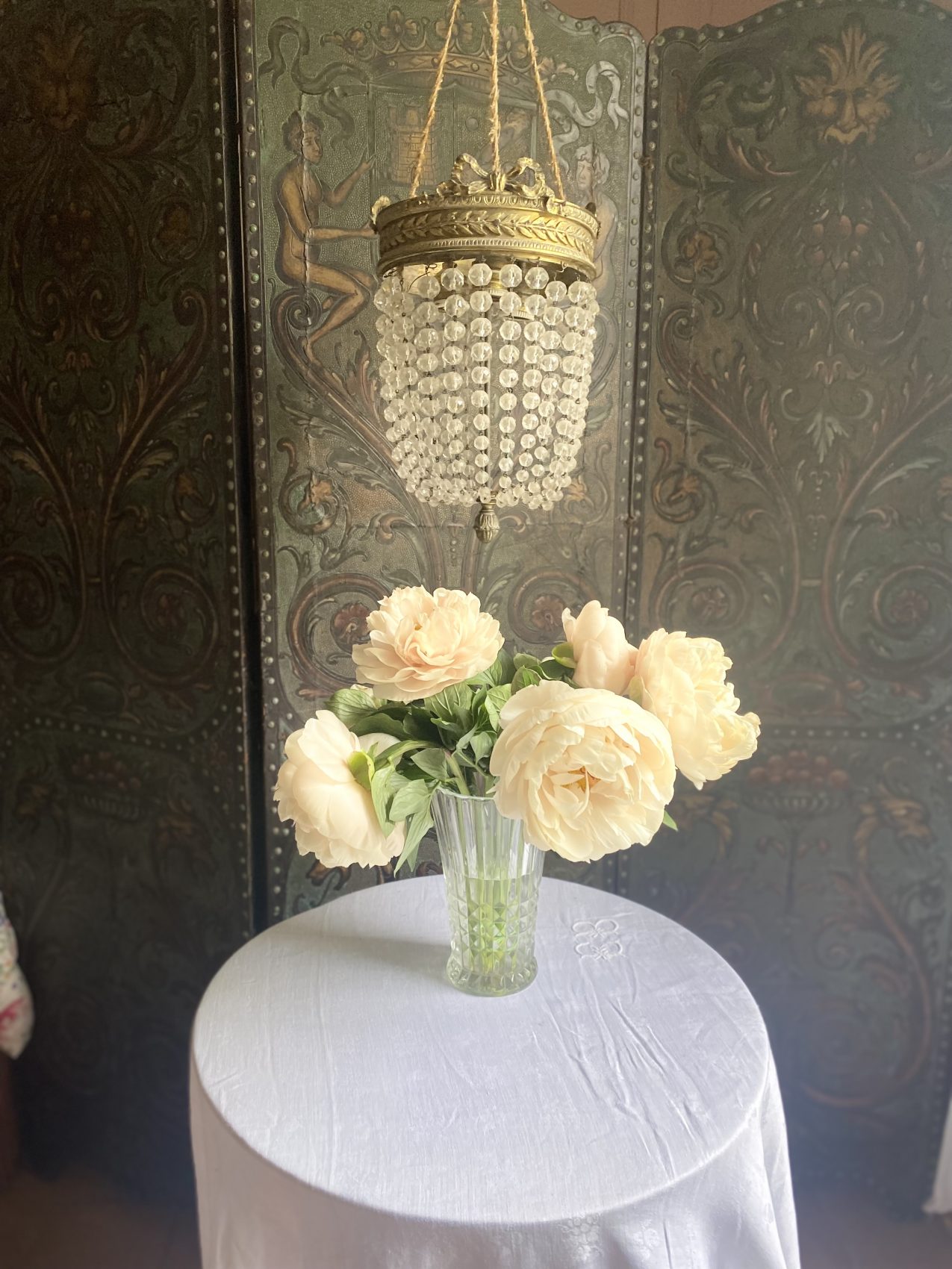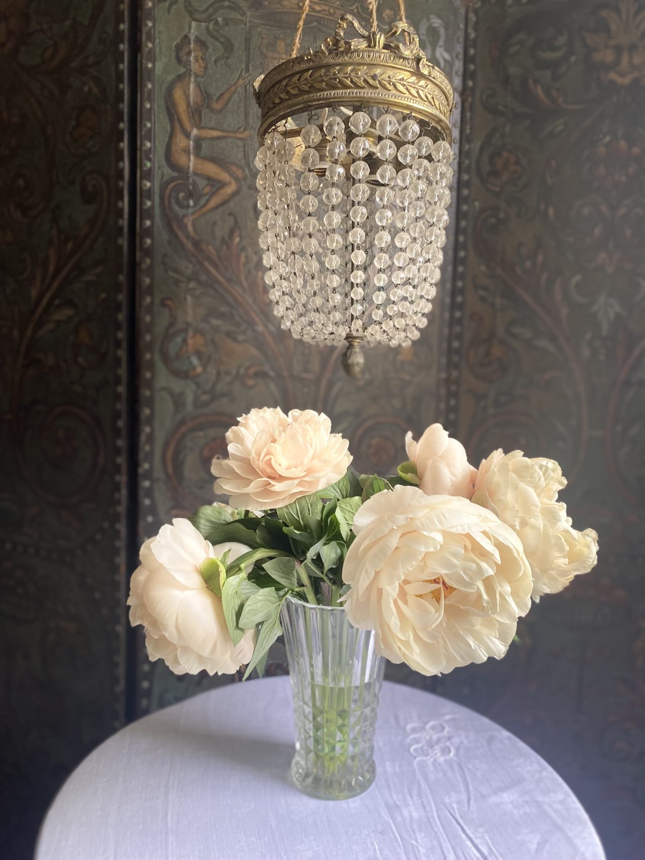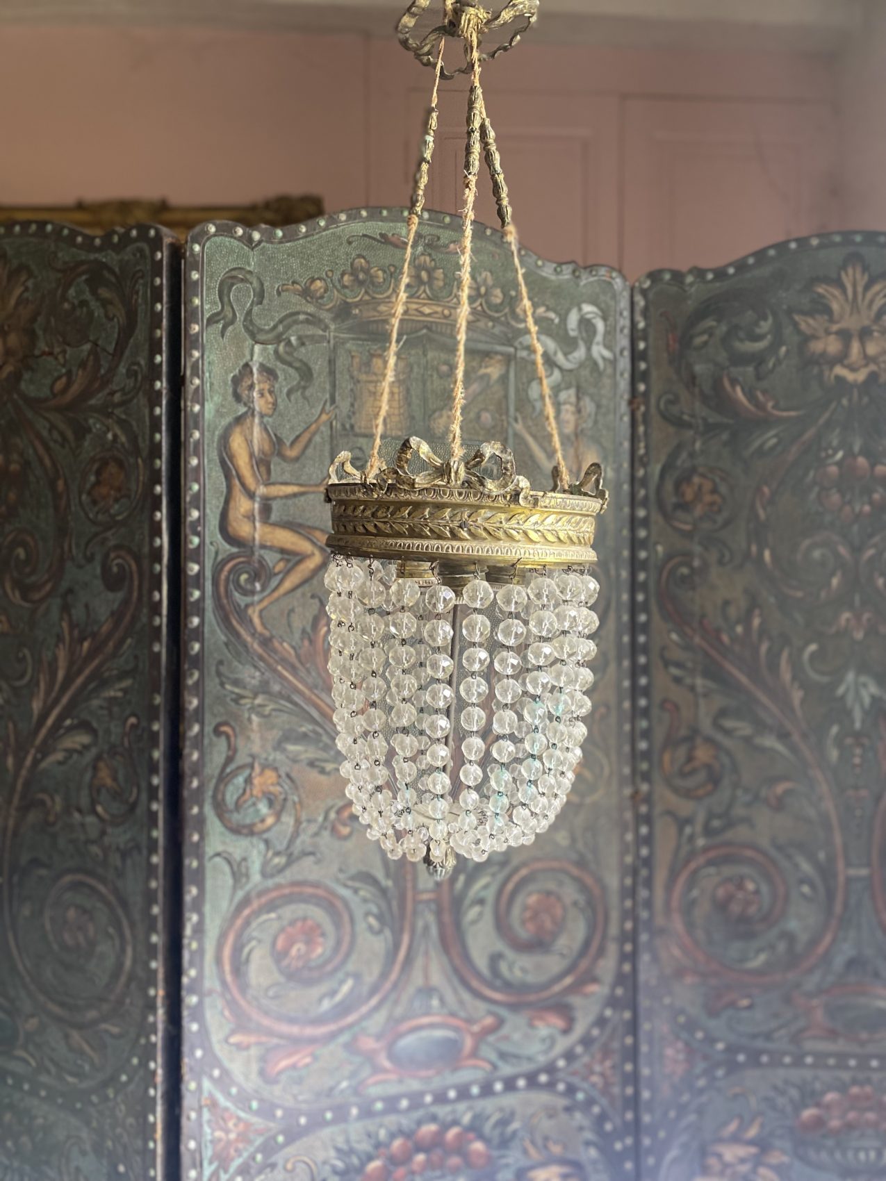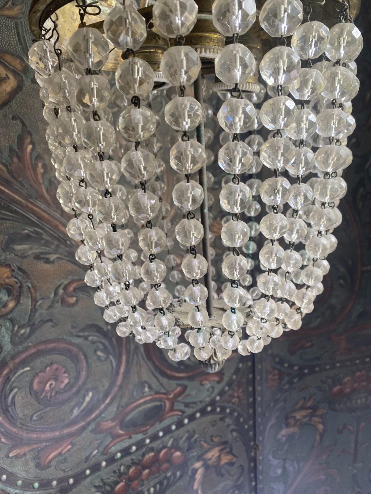 Sa lumière danse sur les pampilles comme une valse ancienne. Idéal dans une entrée, une cage d’escalier ou un boudoir qui a envie d’en jeter (sans en faire trop).