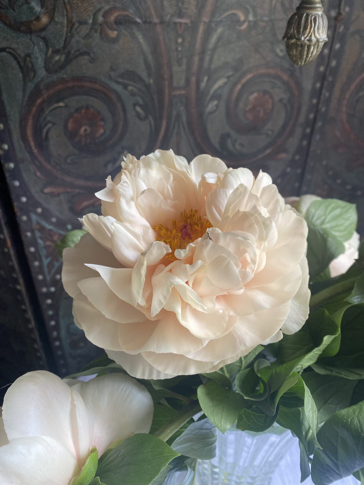 Tableau ancien – Peinture à la gouache – Bouquet de Pivoines roses