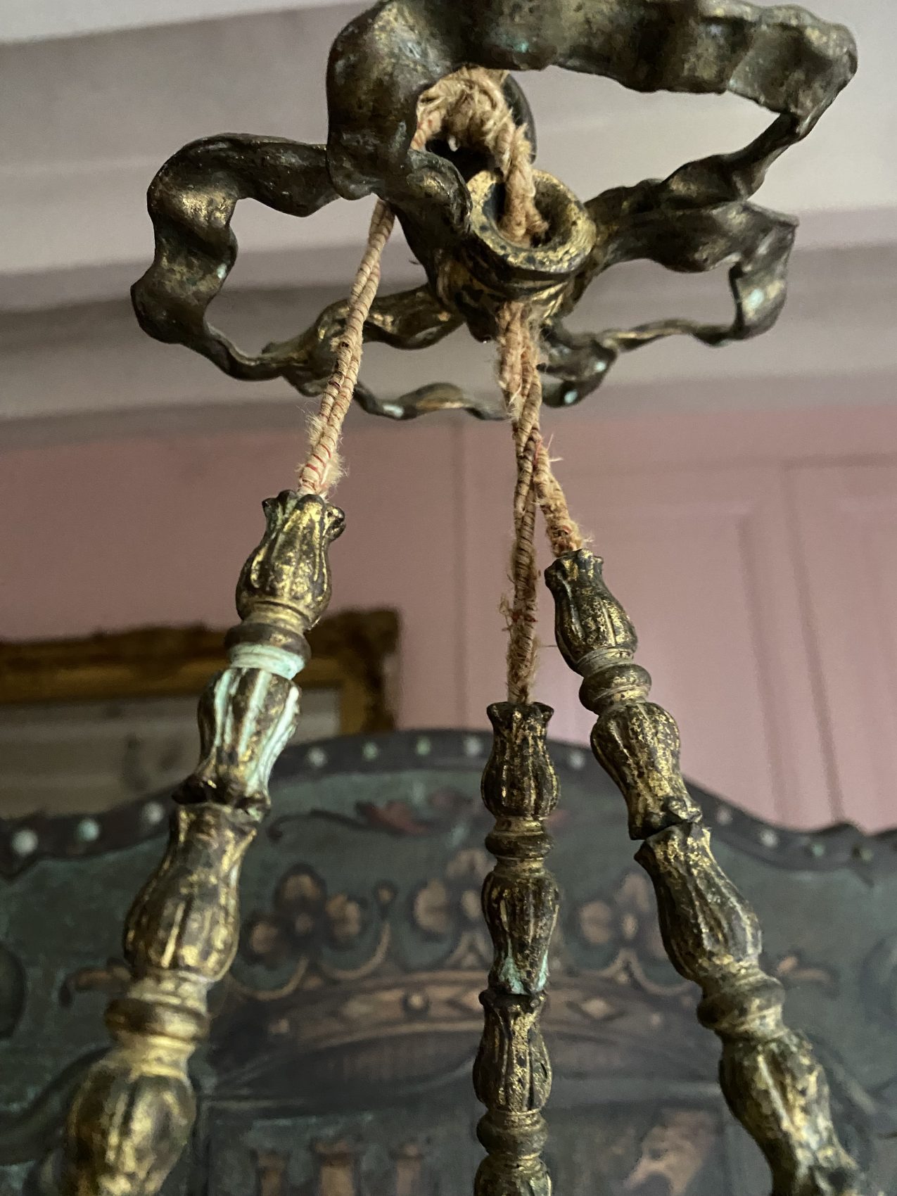 Ce lustre montgolfière en bronze doré, daté des alentours de 1900, a tout pour vous faire lever les yeux au plafond (de plaisir).