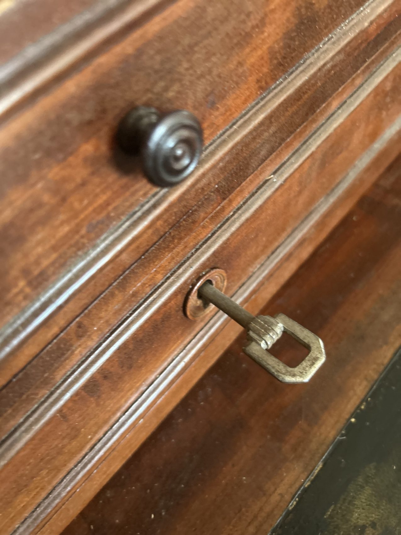 Son tiroir secret, dissimulé sous l’abattant, est toujours là, il ferme à clef pour les lettres d’amour ou les papiers importants