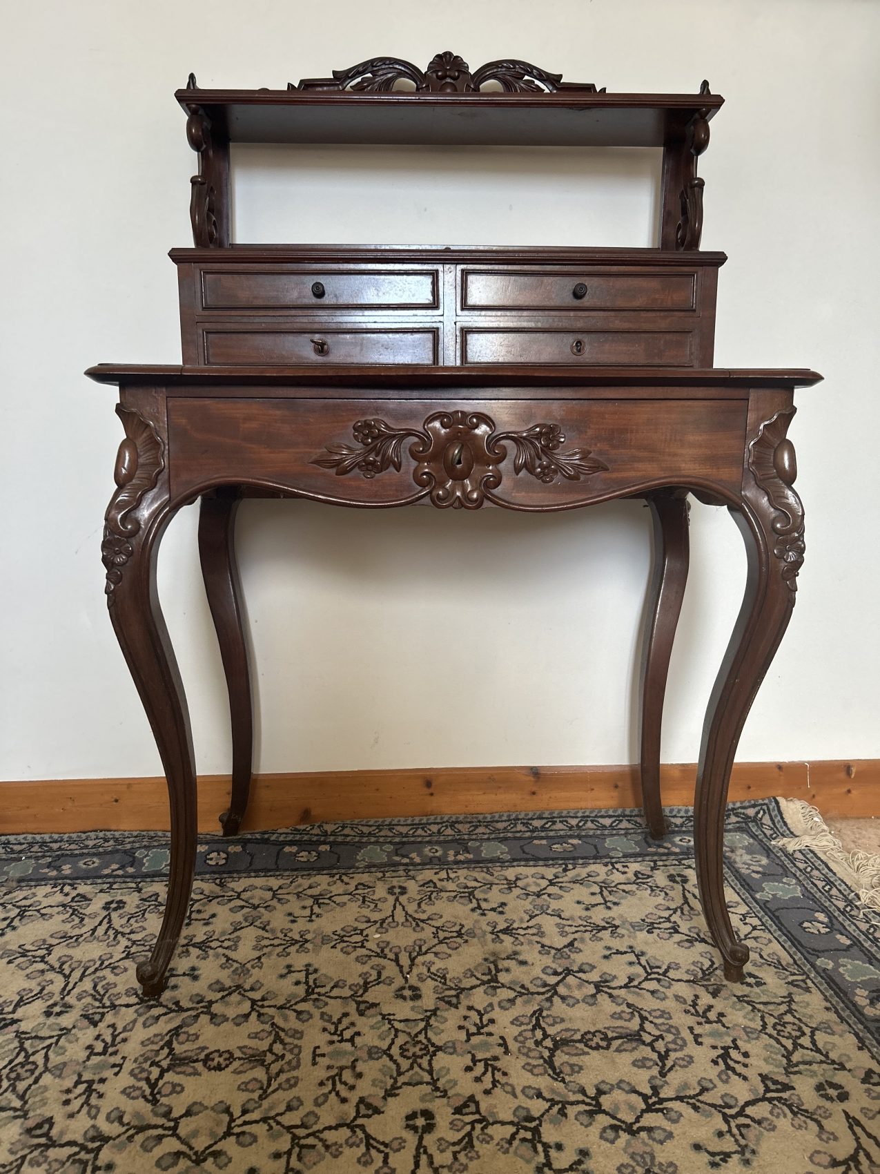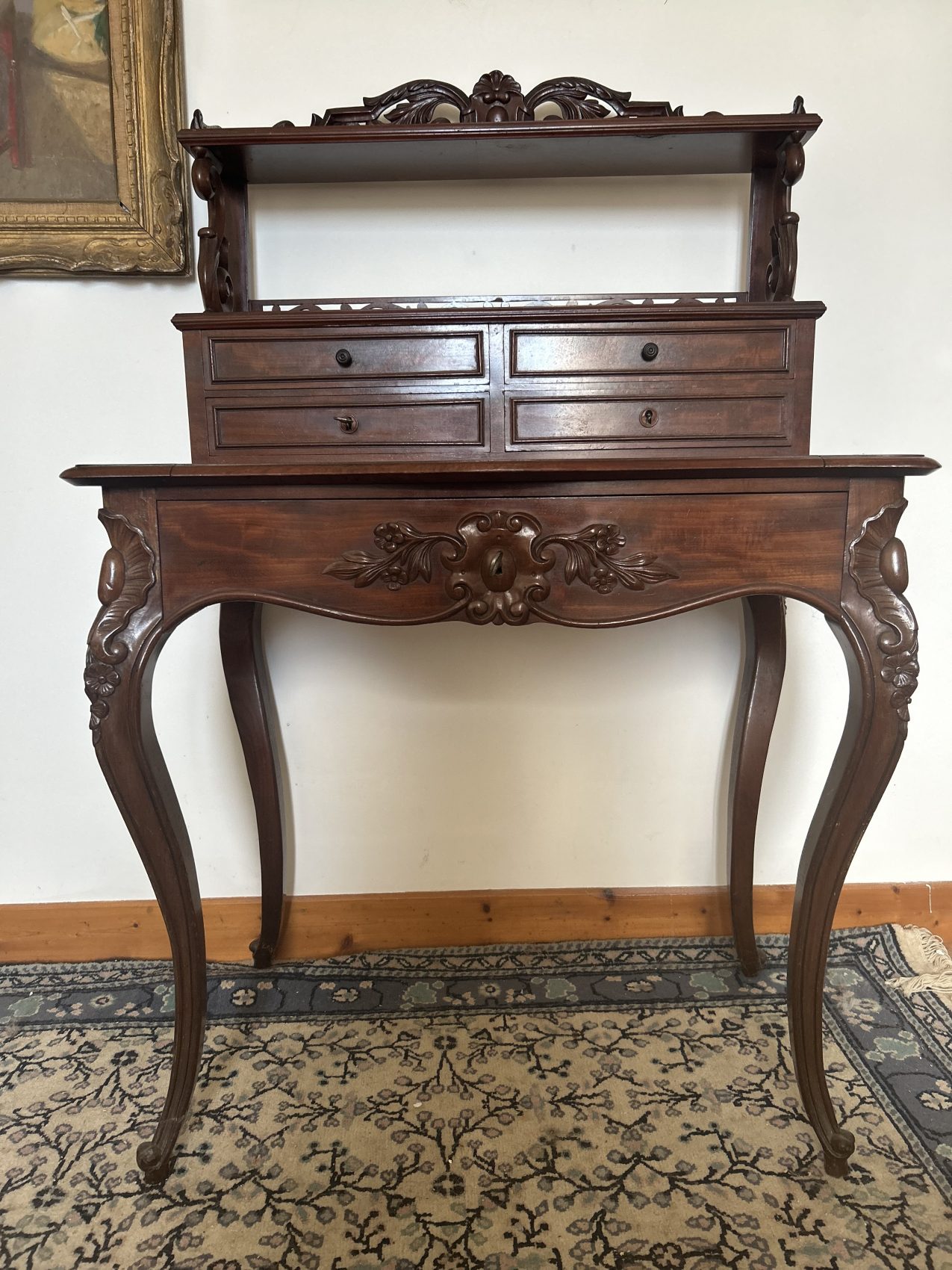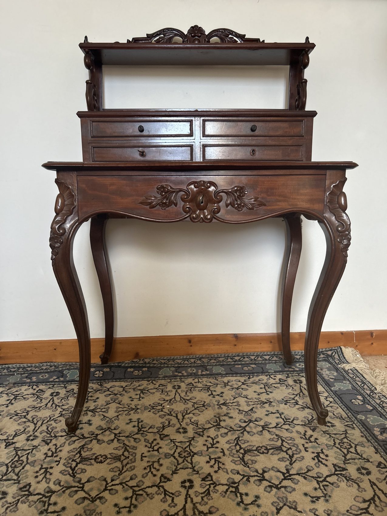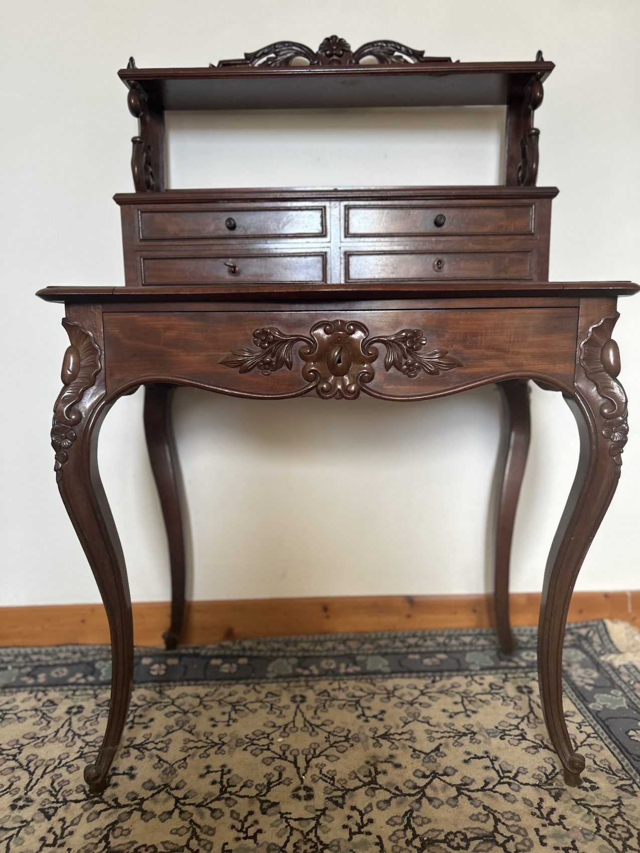 C’est un vrai beau meuble d’antiquité, rare, et peu courant en si bel état, il est bien conservé Avec un bois superbe et une vraie présence, un bonheur du jour comme on aime en découvrir. Authentique, élégant et clairement fonctionnel. Un meuble qui a traversé le temps sans perdre son charme. Et qui mérite une belle maison.