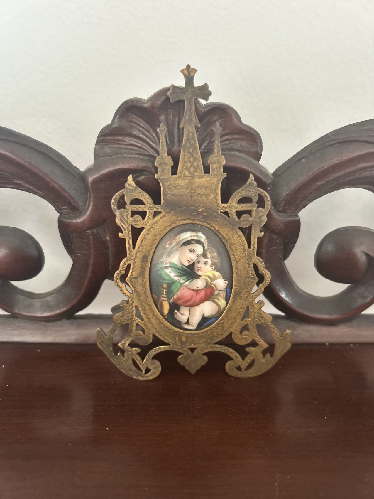 Le style Louis XV se reconnaît à ses lignes galbées, ses courbes élégantes et son esprit léger. Ici, il apporte douceur et féminité à un meuble d’époque plus tardive. Un mariage réussi, très réussi même.