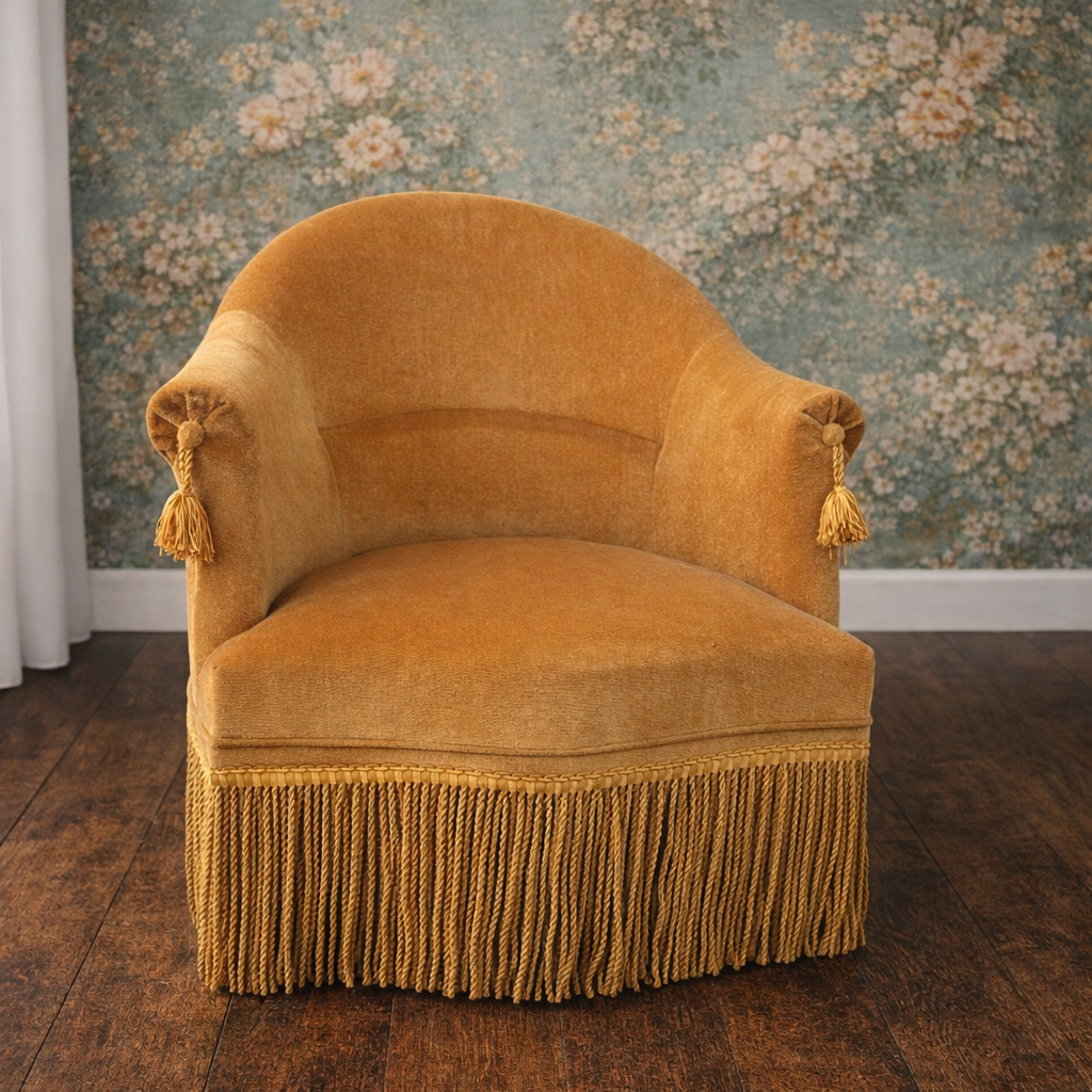 Le fauteuil crapaud apparaît au xixe siècle, sous Napoléon III. Son nom vient de sa forme basse, enveloppante, presque ramassée, pensée pour offrir une assise confortable et intime. Il traverse les époques sans jamais disparaître, se réinventant selon les styles et les usages. Dans les années 70, il devient plus fonctionnel, plus léger, parfois mécanique, tout en conservant son allure reconnaissable.