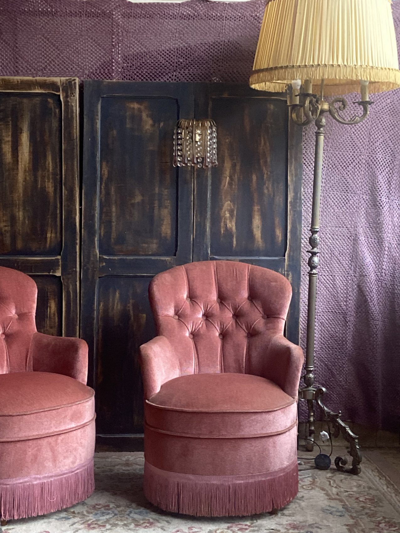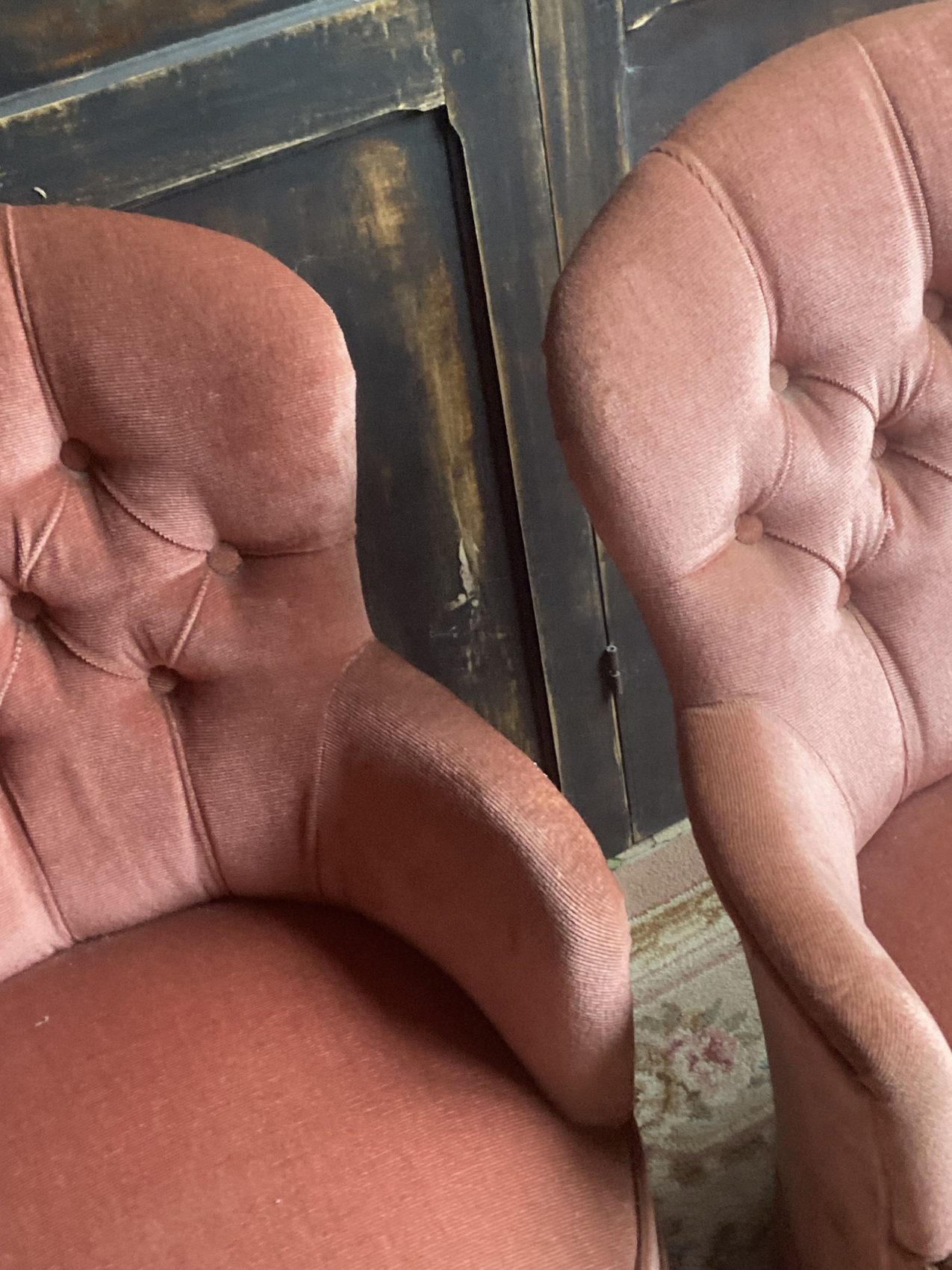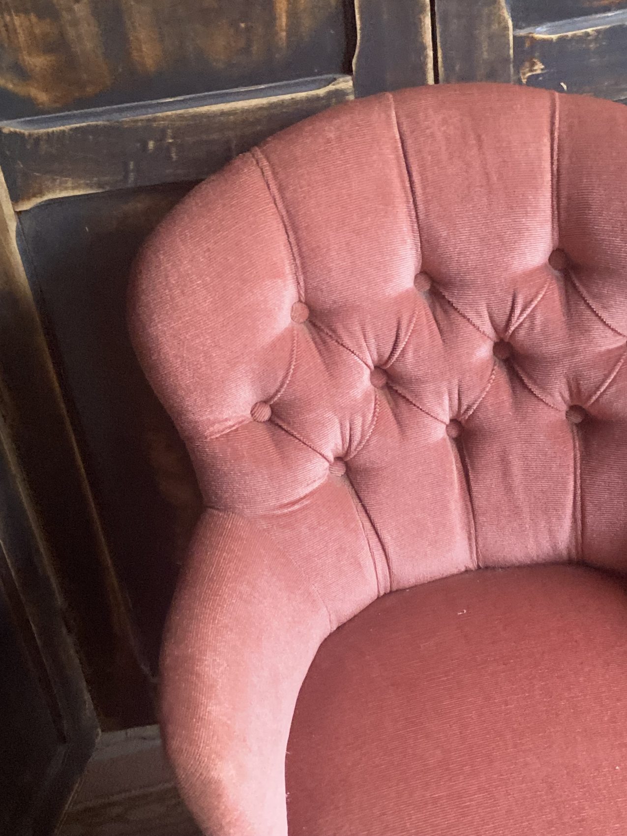 J’aime particulièrement la version capitonnée, ce vieux rose qui joue avec la lumière et adoucit tout ce qu’il touche.
