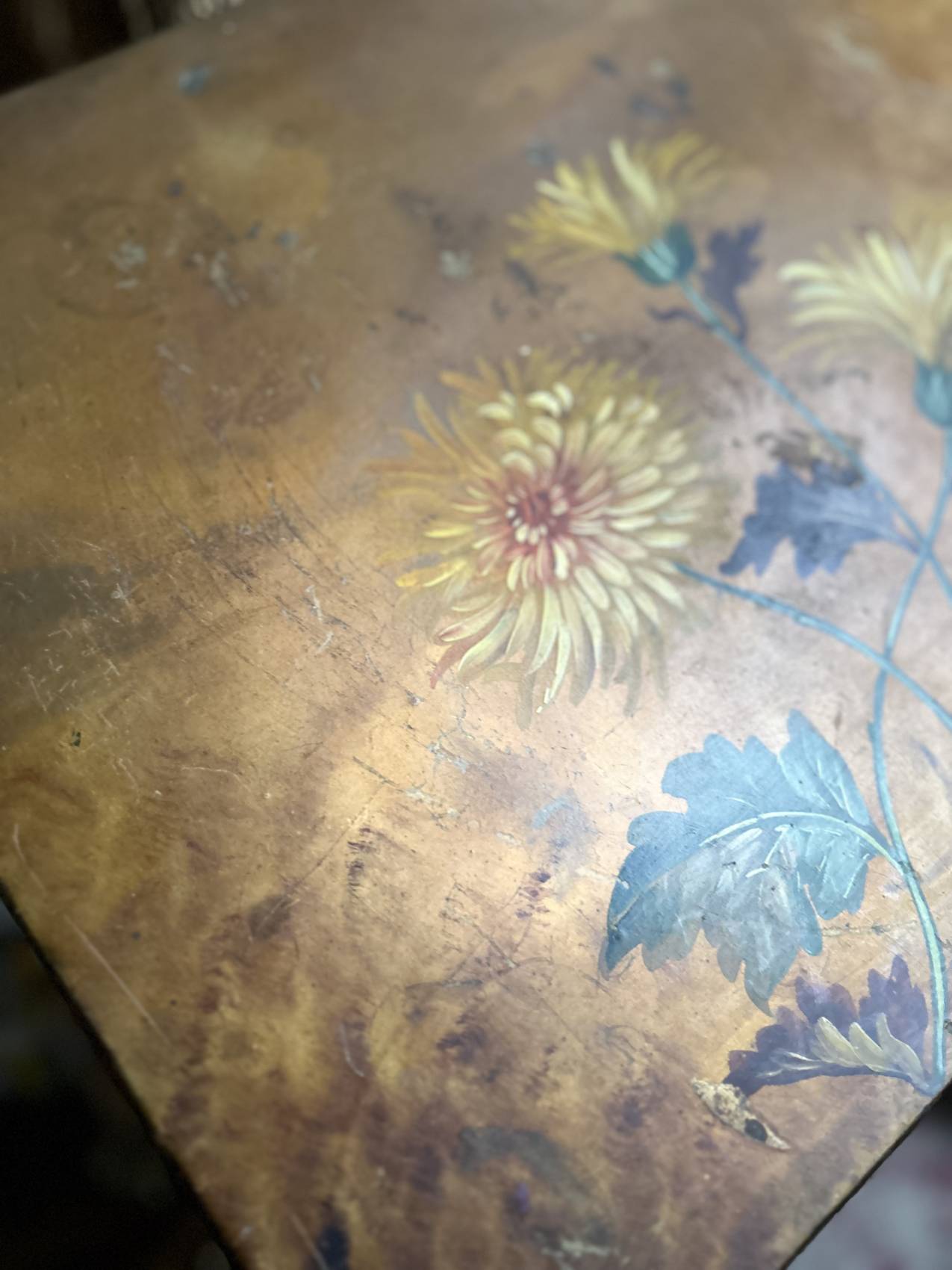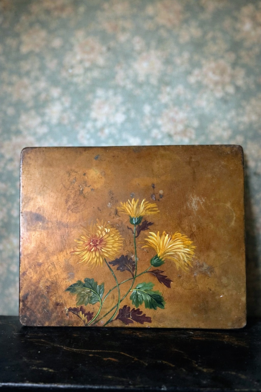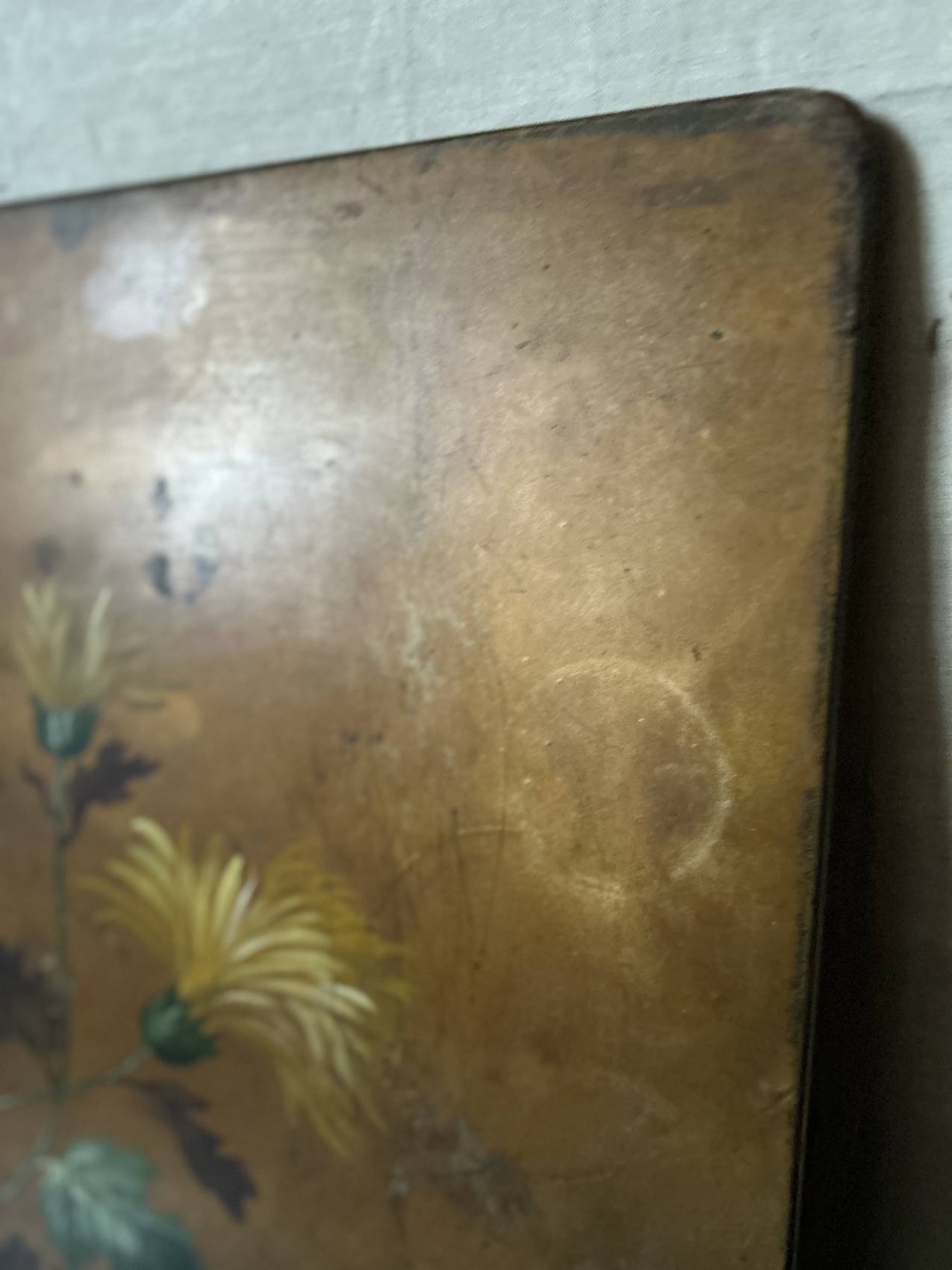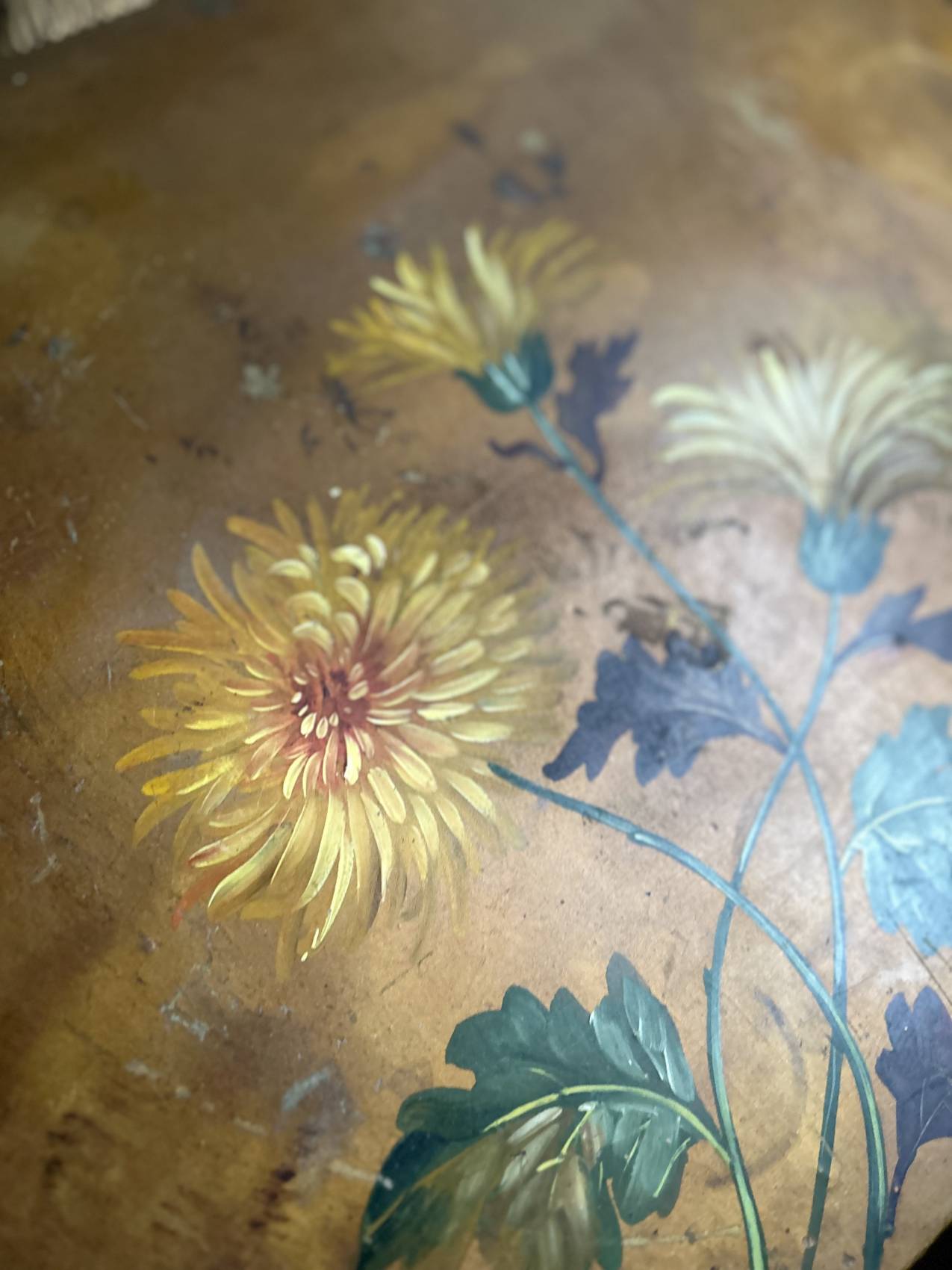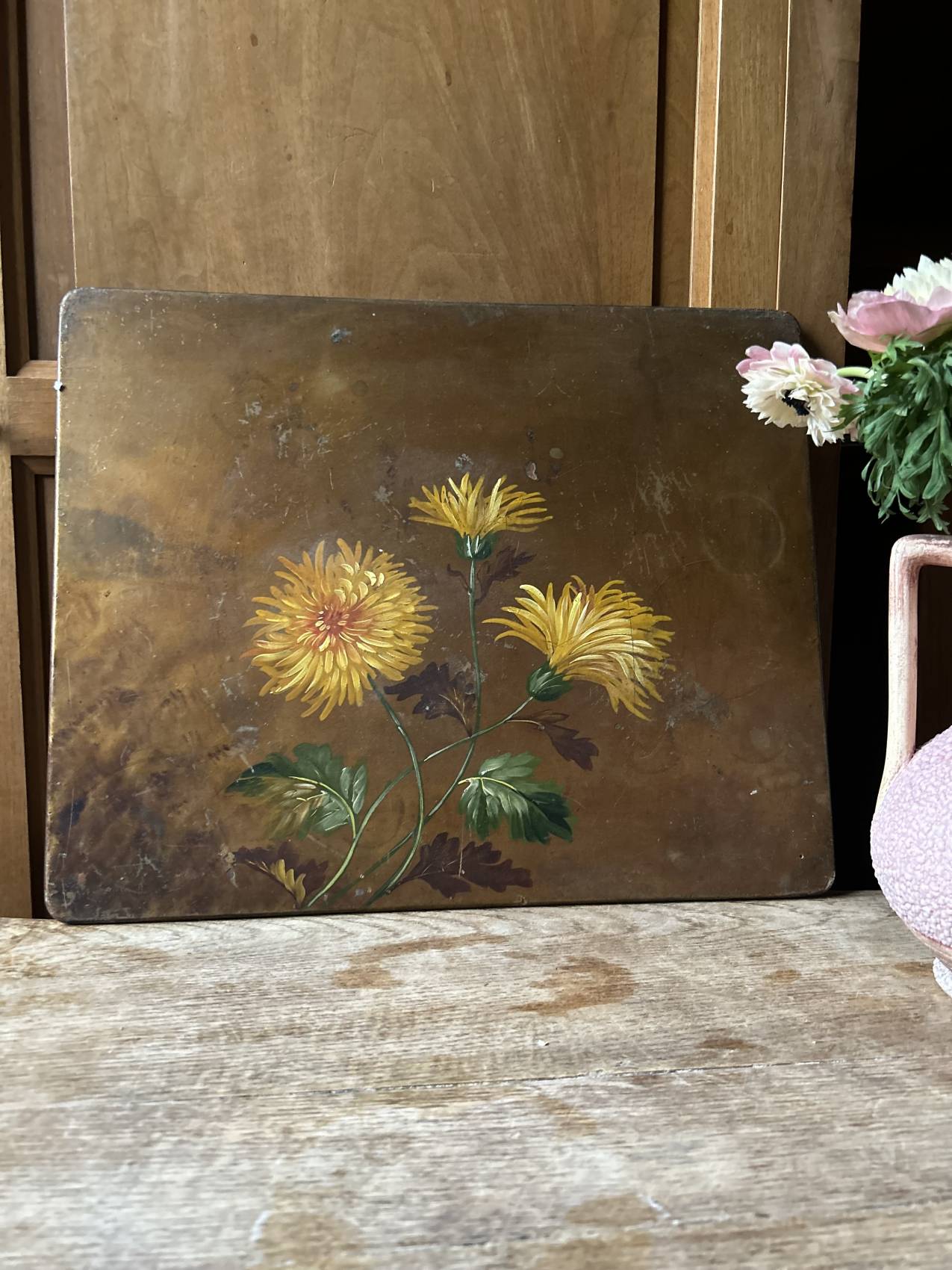 Panneau décoratif ancien fleurs peintes époque 1900 – 49 x 37 cm – Poésie en petit format