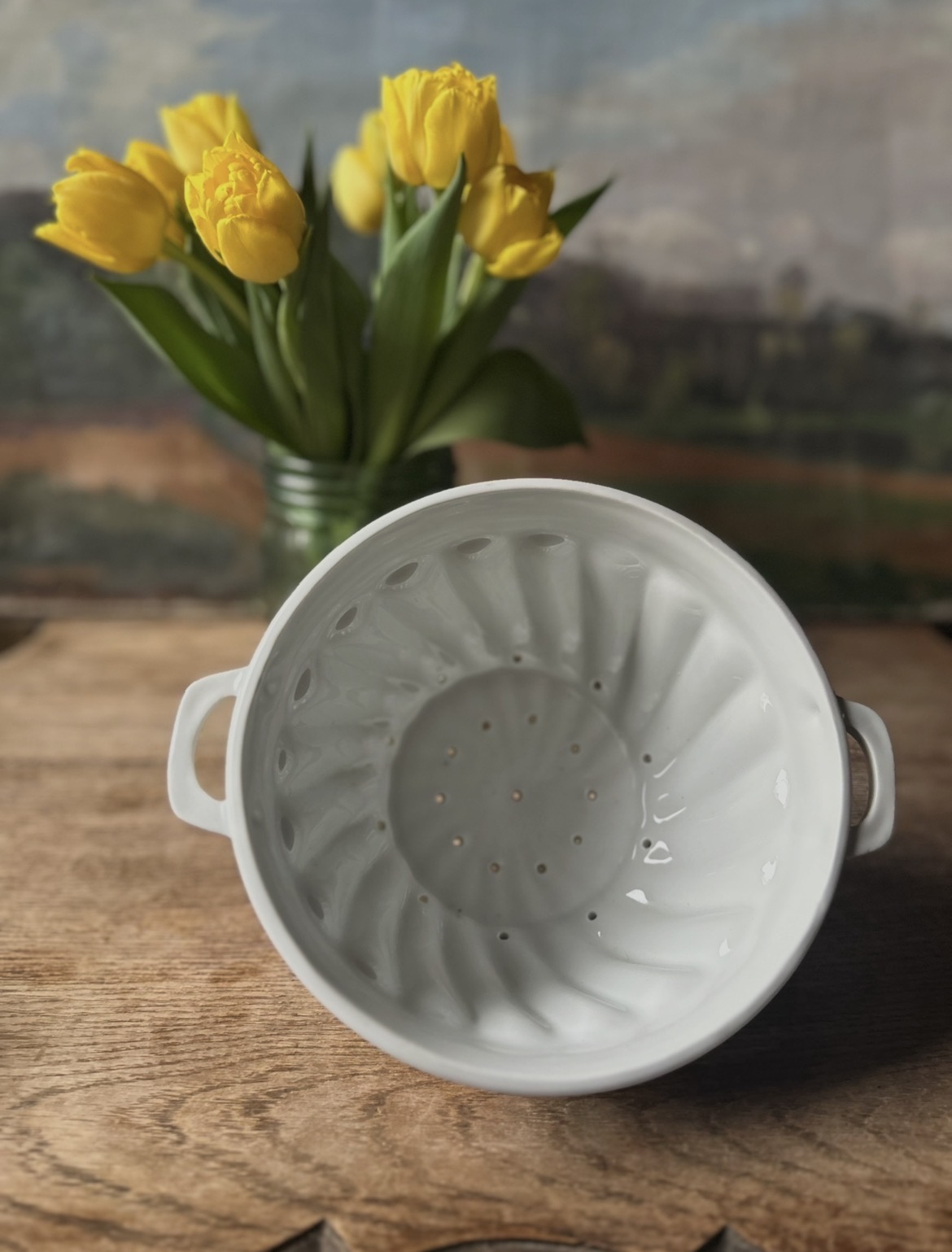 Passoire ancienne en porcelaine fin XIXe – faisselle -cuisine campagne chic