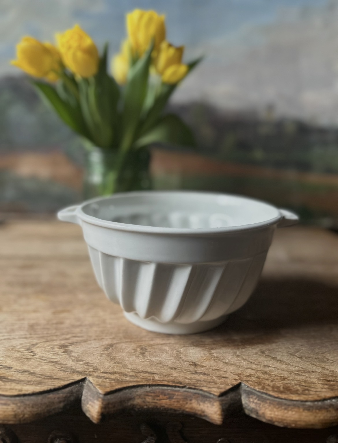 À la fin du XIXe siècle, dans les cuisines bourgeoises comme dans les maisons de campagne soignées, la porcelaine s’invite aussi dans les ustensiles culinaires.