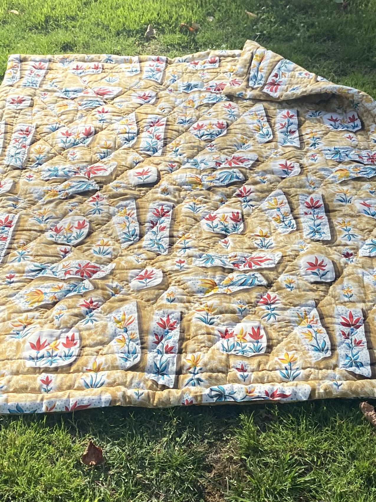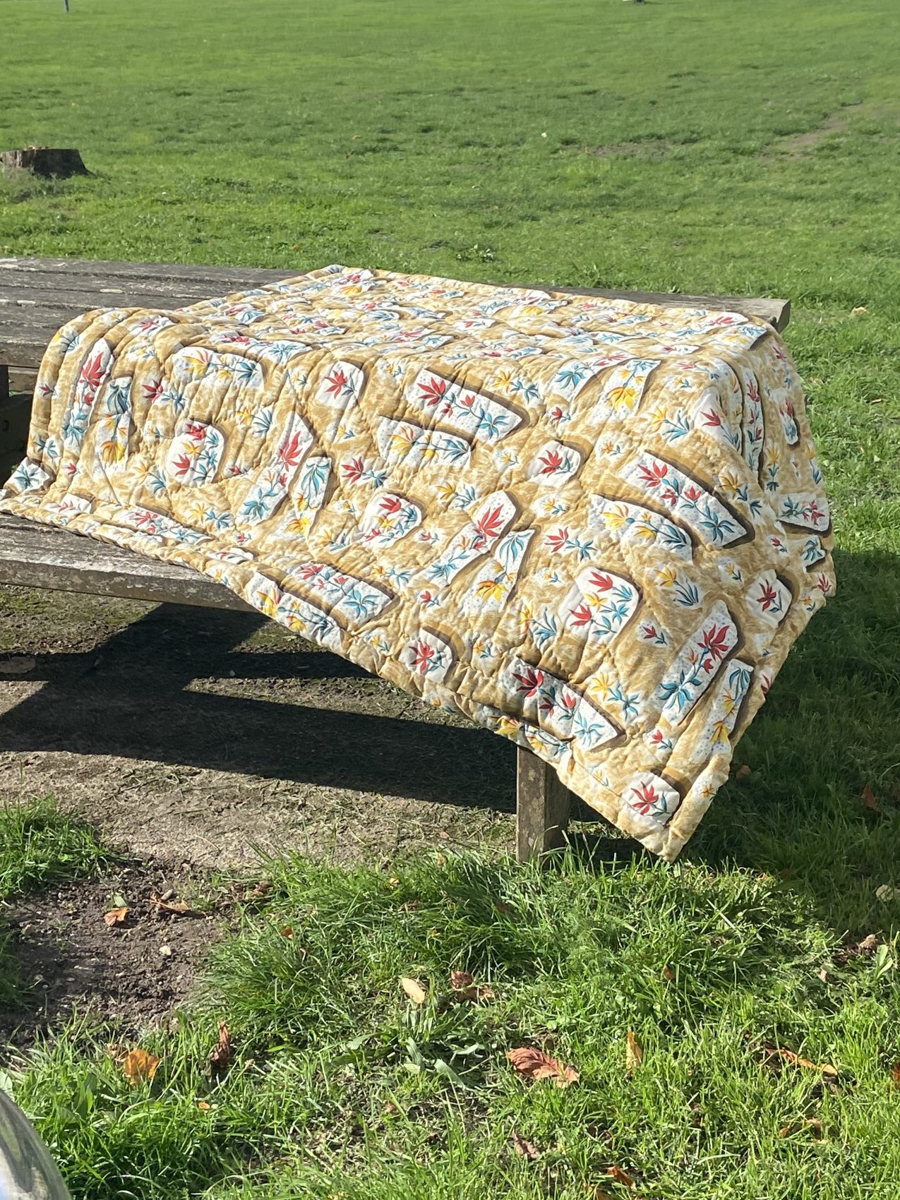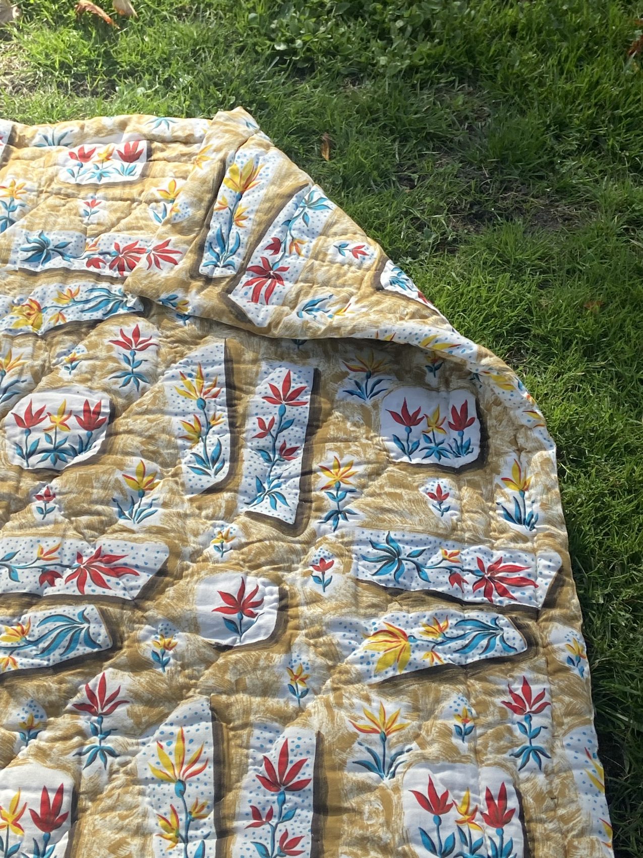 Un petit édredon comme on les aime, sorti tout droit des années 50, en coton avec un garnissage en laine.