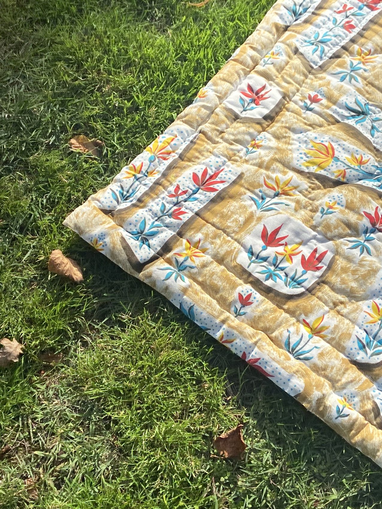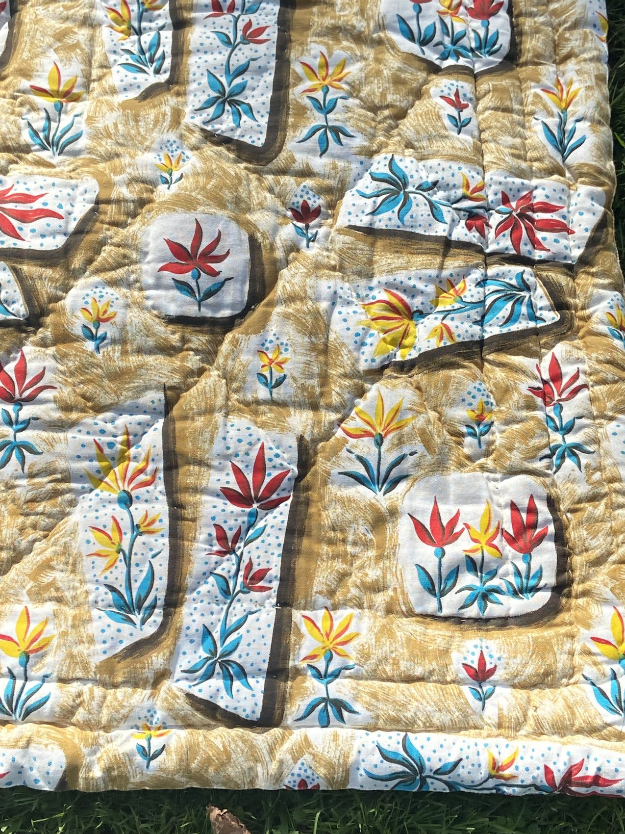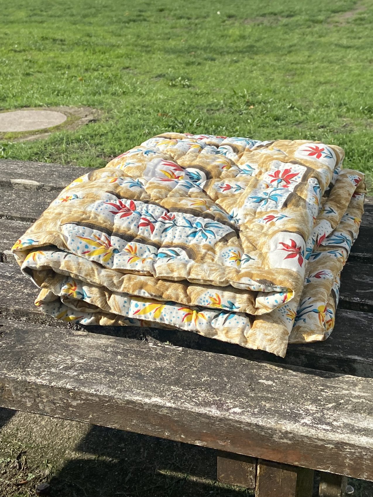 Petit édredon ancien années 50 en coton et laine – 130 x 160 cm