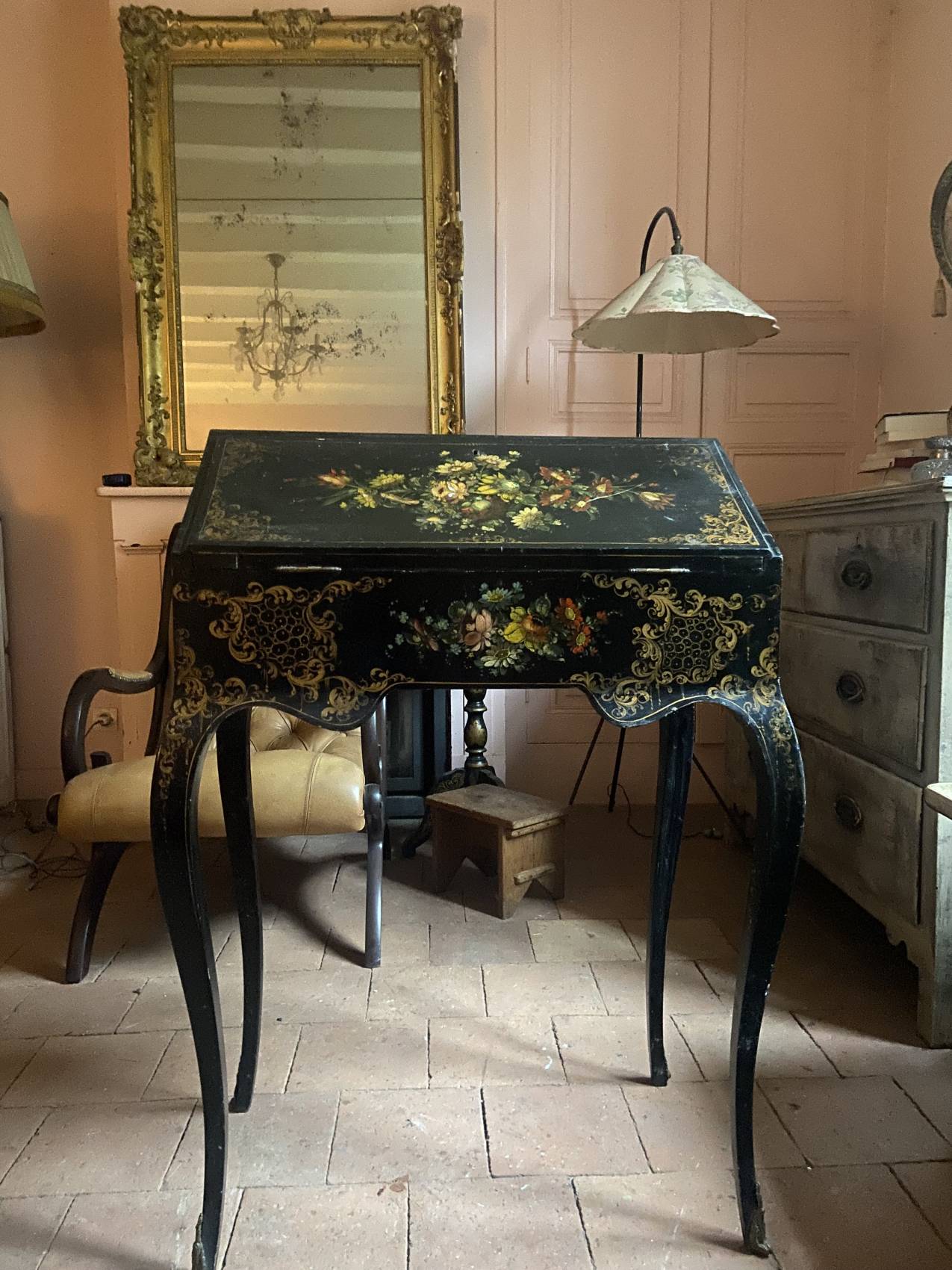 Petit secrétaire à pente époque Napoléon III à motif de fleurs