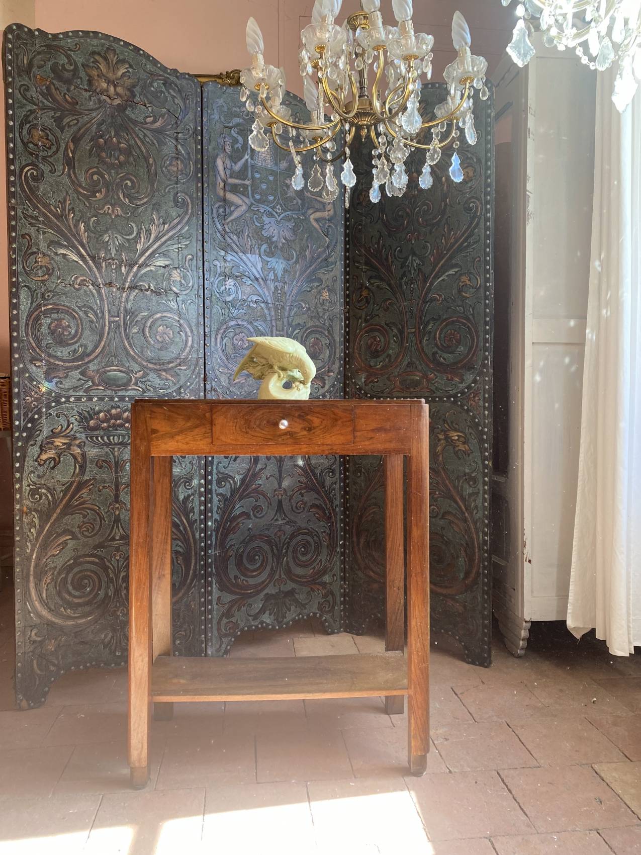 Petite console époque Art Déco en noyer – Élégance et praticité pour petits espaces