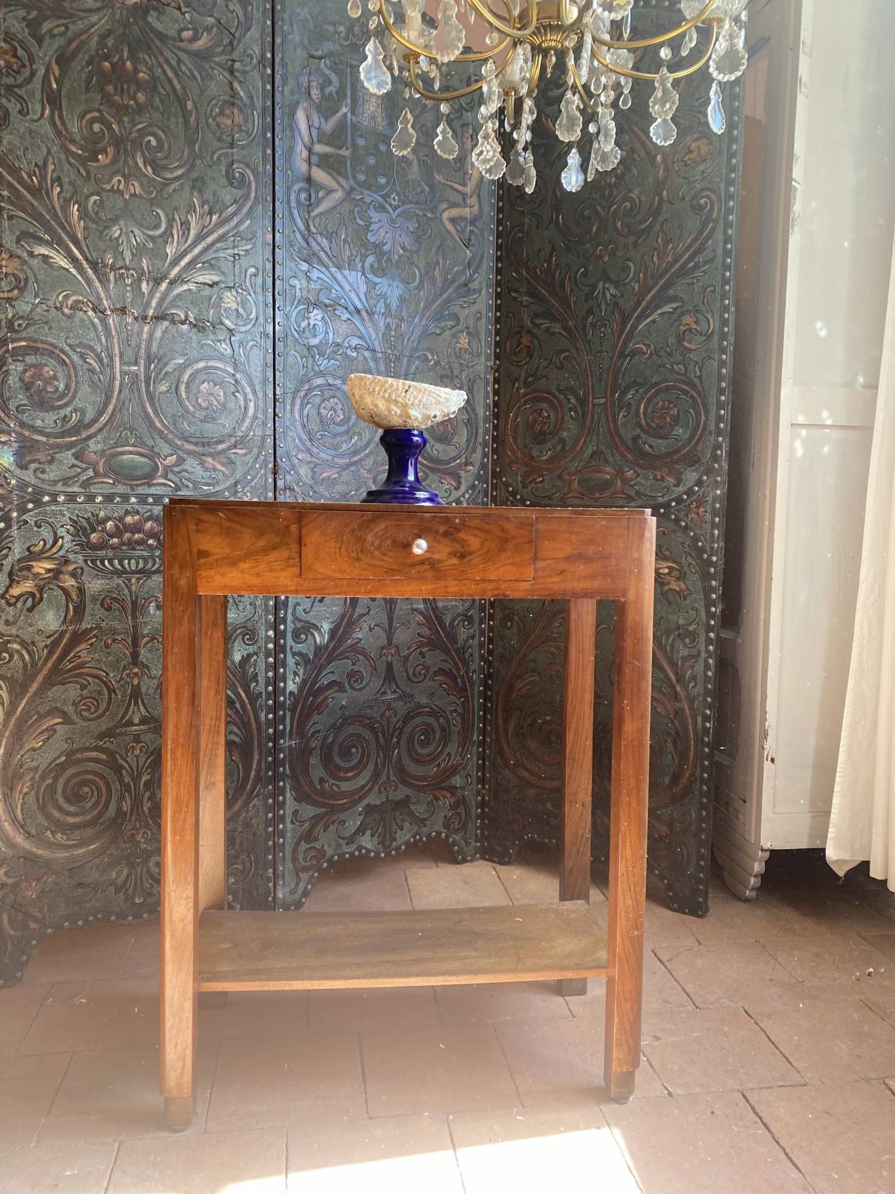 Avec ses lignes élégantes et son bois chaleureux, cette console Art Déco en noyer est une pièce rare qui conjugue à merveille authenticité et fonctionnalité. D’un bel état général, elle a su traverser les décennies sans rien perdre de son allure.