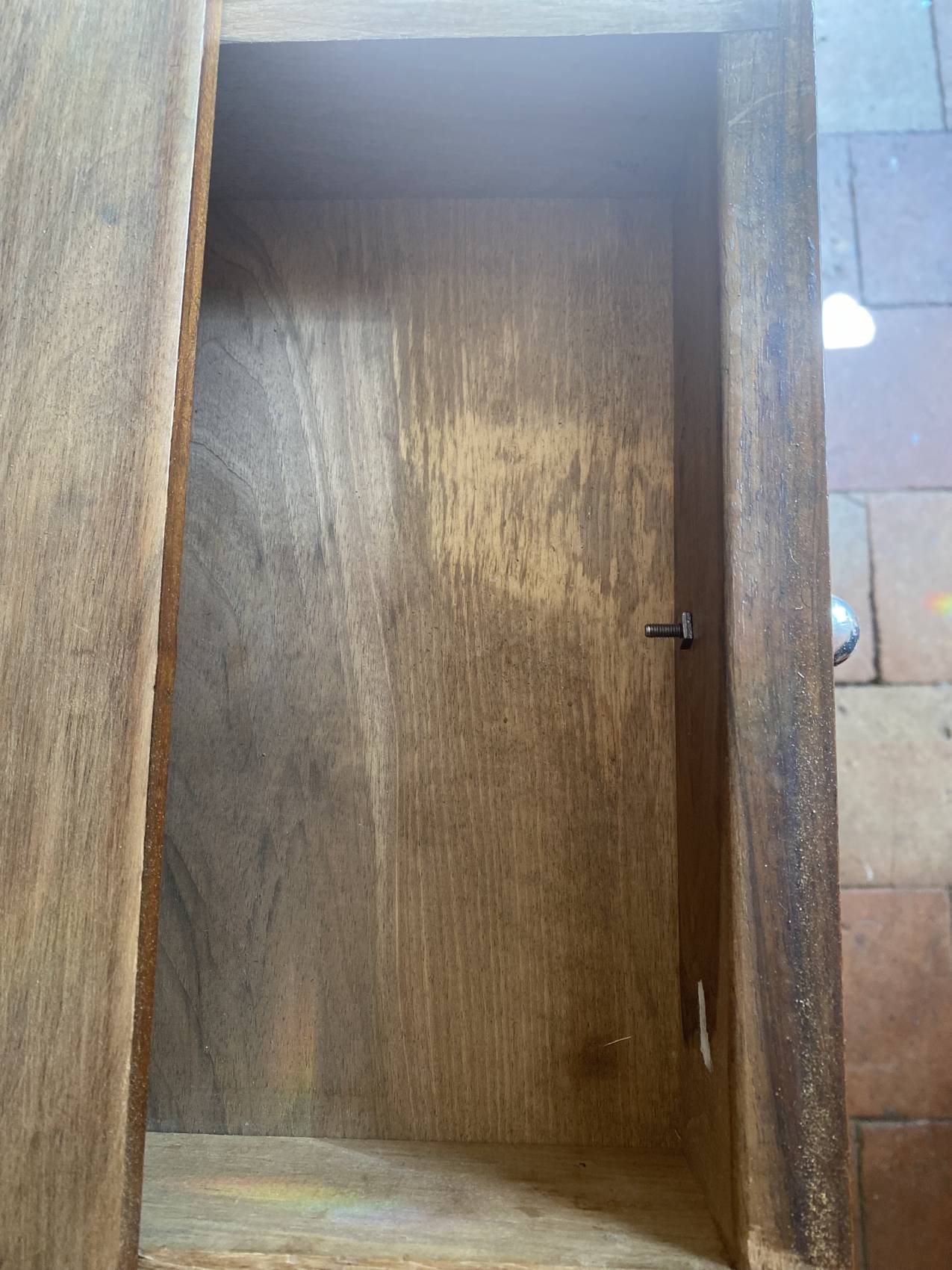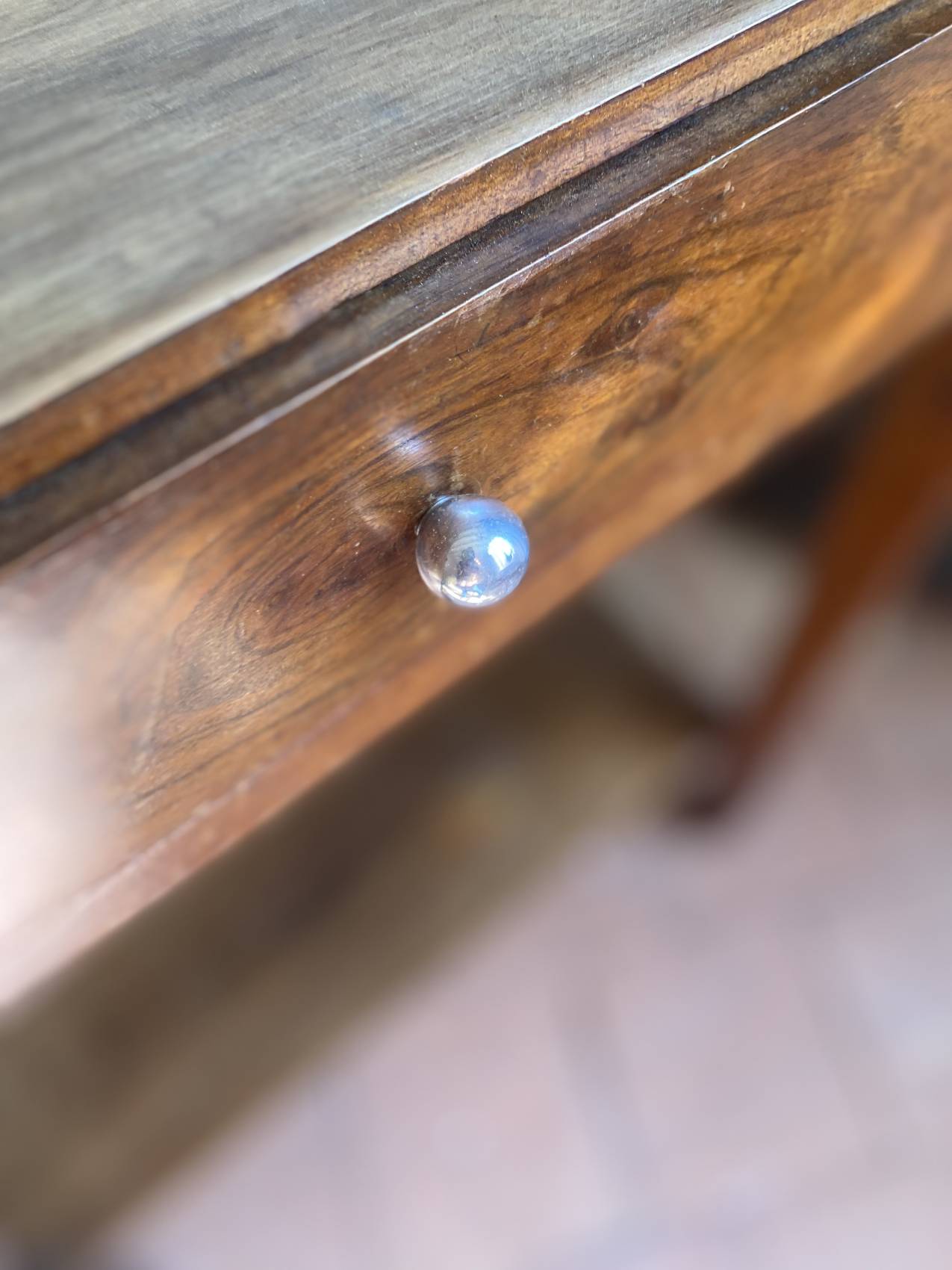 Son petit format en fait un atout charme pour les intérieurs restreints, tout en offrant une touche vintage irrésistible. J’aime particulièrement la patine du noyer, qui donne à cette console une vraie personnalité.