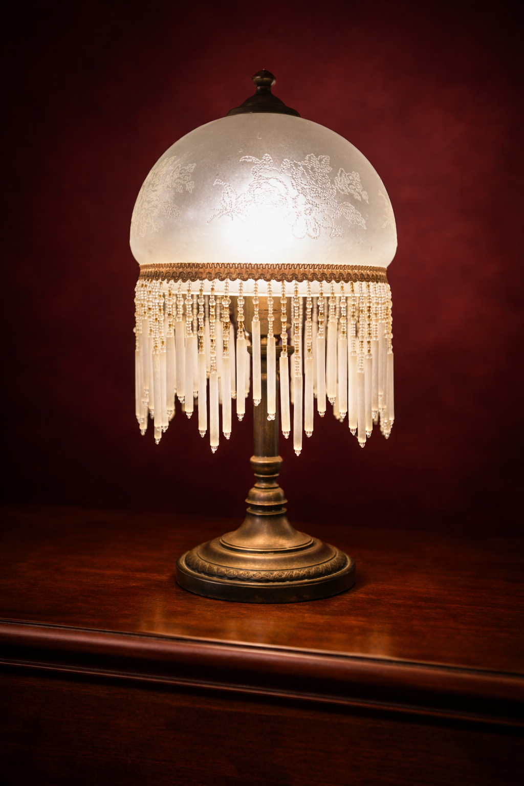 Petite lampe charleston ancienne en verre et perles